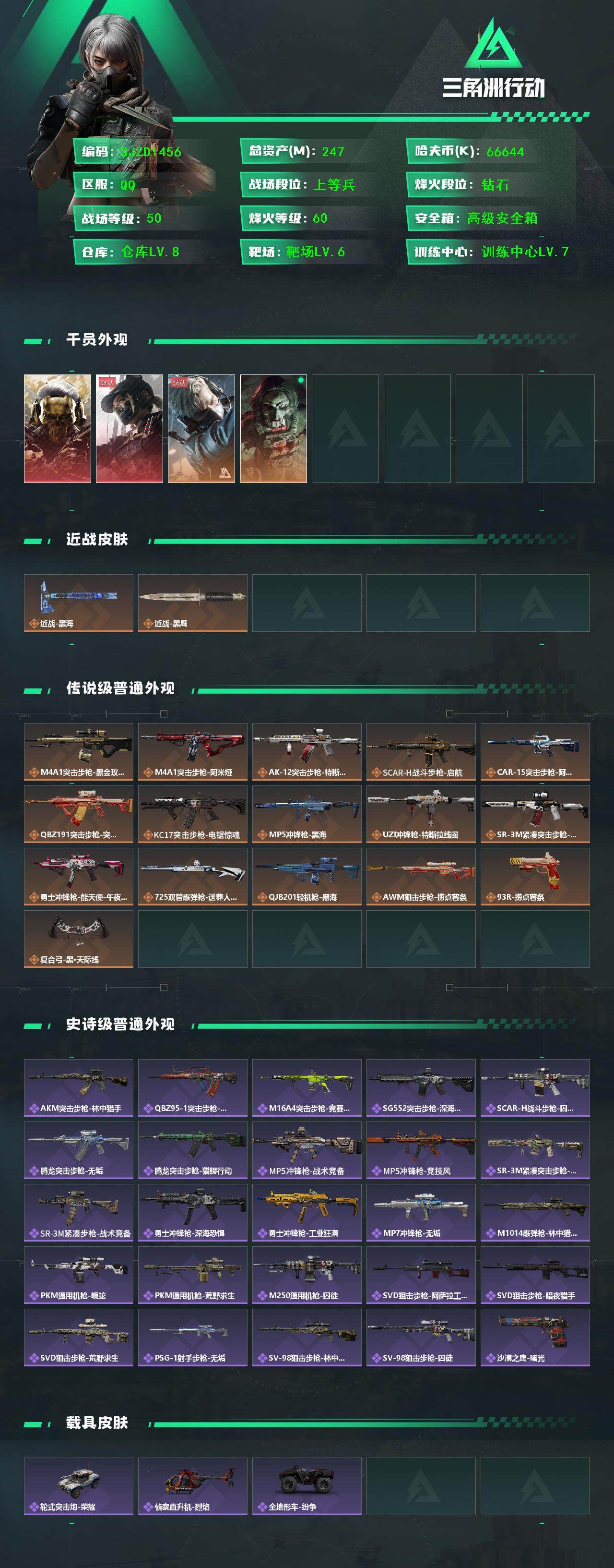 总资产(M):247M/哈夫币(K):66644K/哈夫币(K):66644K/全面战场等级:50_