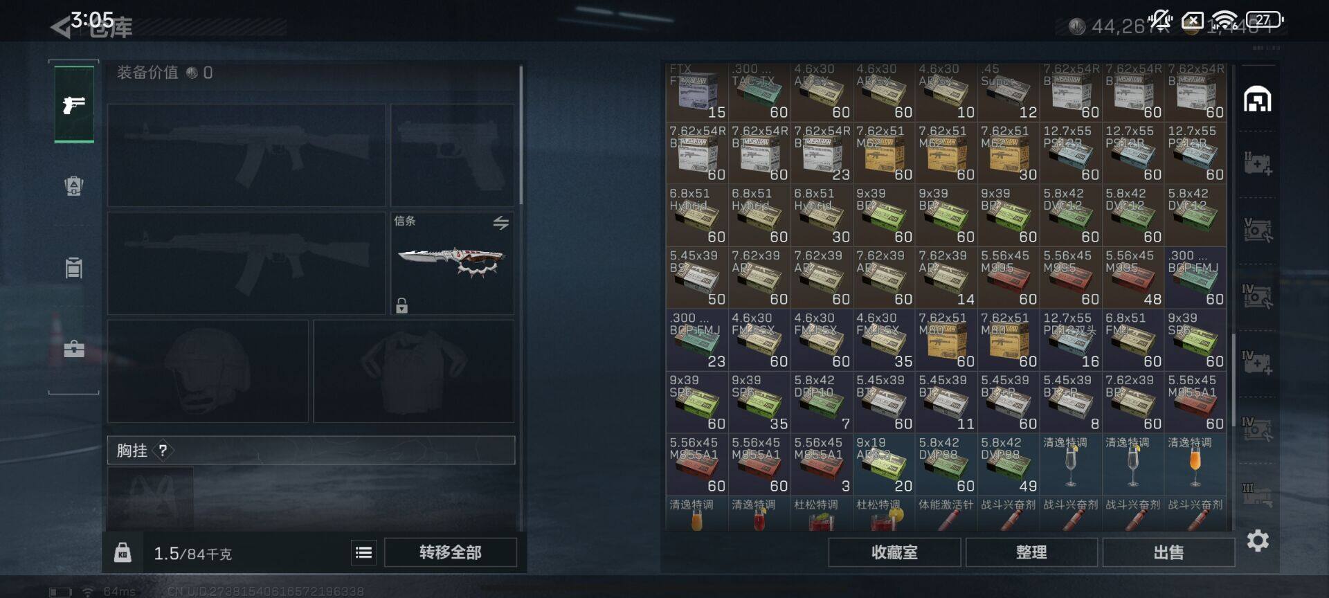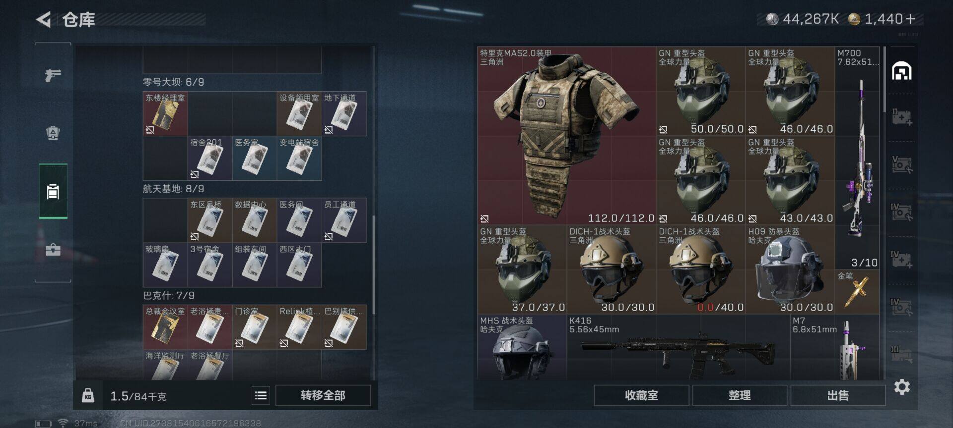 总资产(M):170M/哈夫币(K):44267K/哈夫币(K):44267K/传说枪皮数:7/全面