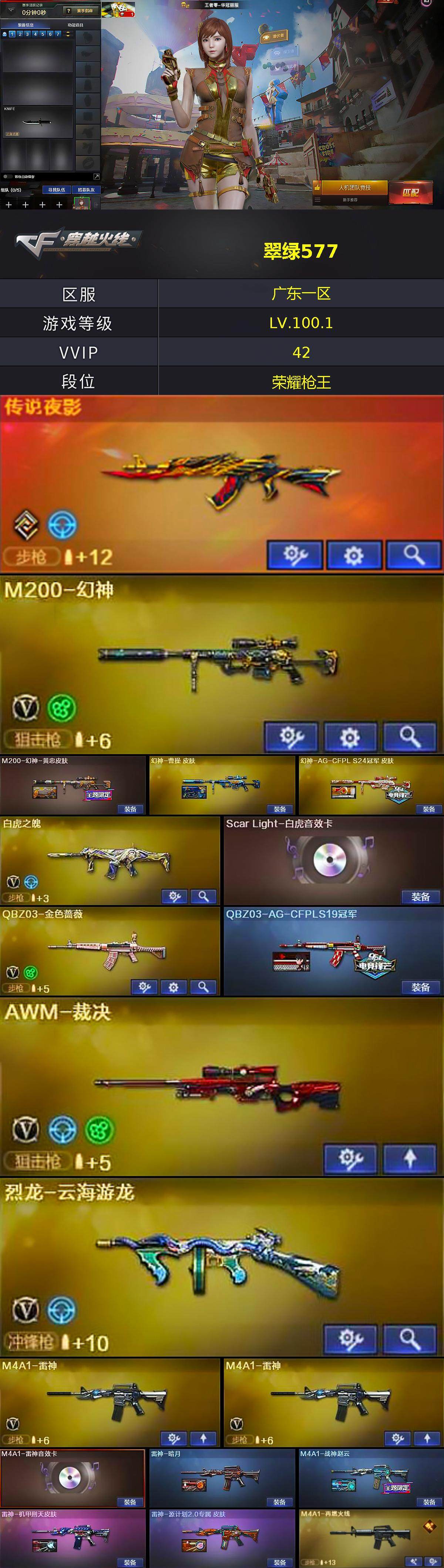 【C2456】【双全号 传说夜影,QBZ03-金色蔷薇,M200-幻神,修罗-古蛇迷踪,QBZ03-街机,炼狱-迷你小钢,M4A1-黑骑士,加特林-炼狱,沙鹰-修罗,金刚伞】广东一区-37V-13王者-1炫金