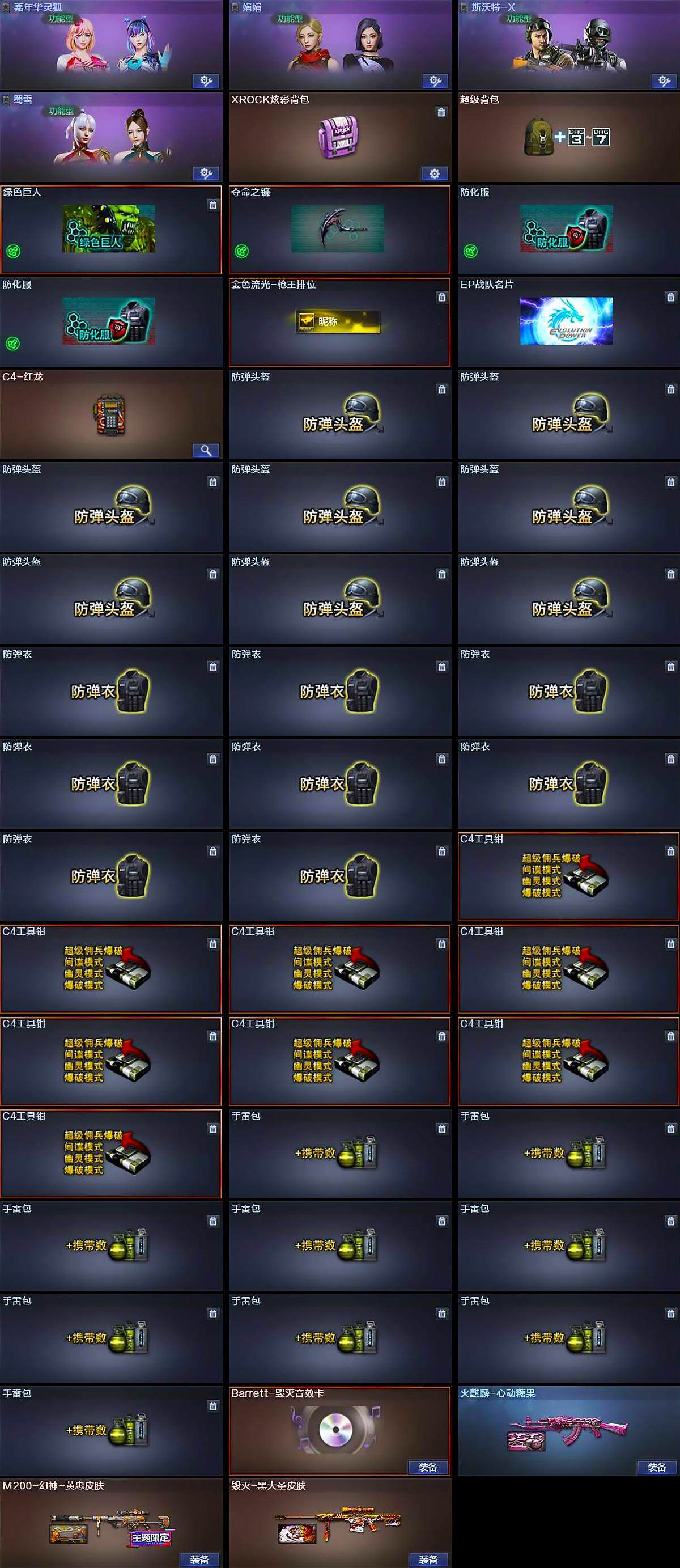 【皮肤】:M200-幻神-黄忠皮肤,火麒麟-心动糖果,毁灭-黑大圣皮肤,AK47-B-常胜将军-曹操*2,AK47-B-常胜将军-刘备*2,AK47-B-常胜将军-孙权*2