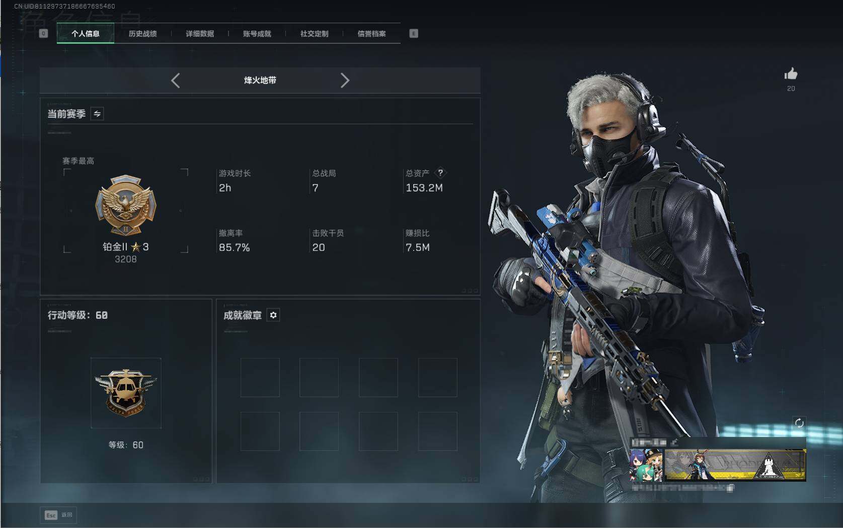 总资产(M):153M/哈夫币(K):33408K 蜂医-送葬人
