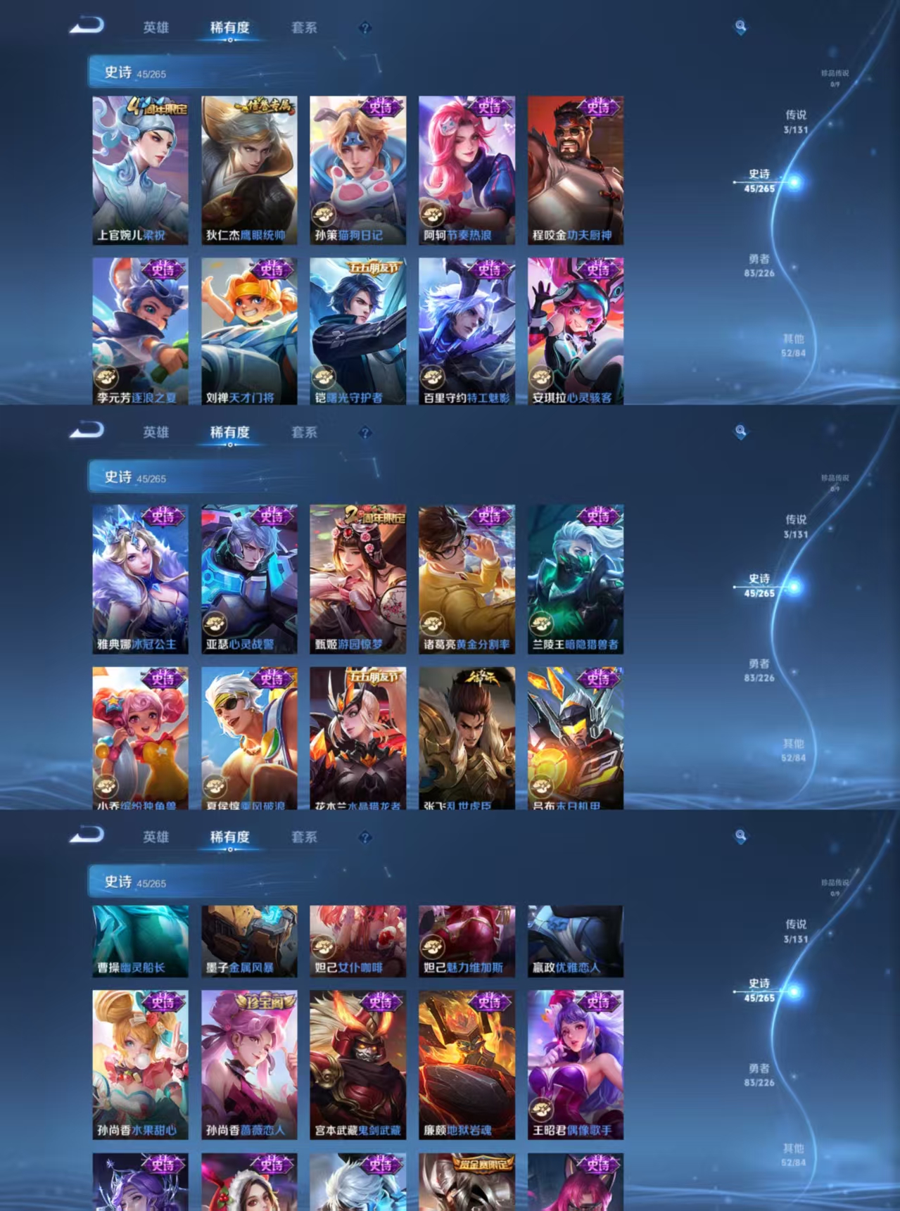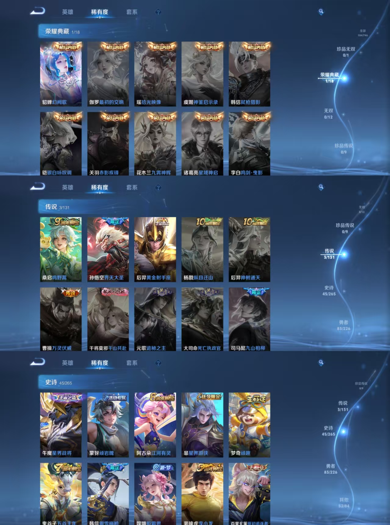 贵族4 钻石三 126英雄(敖隐)184皮 1典藏 3传说