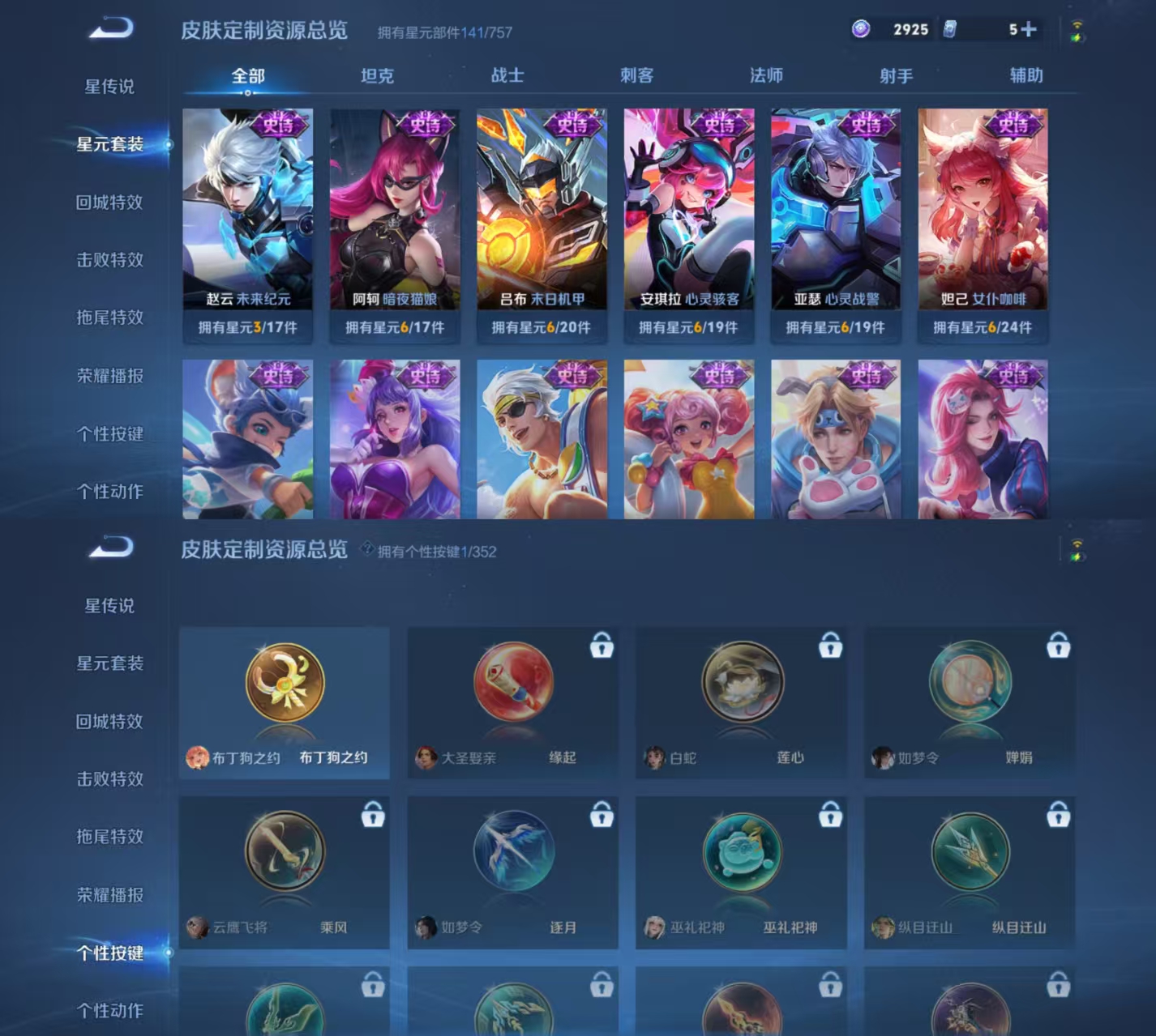 【史诗皮肤】 星界战将 傲雪梅枪 西部游侠 劲辣红锅 威尼斯狂欢 江河有灵 顽岩魄 星界游侠 顽趣 幽灵船长 拒霜思 功夫厨神 女仆咖啡 魅力维加斯 鹰眼统帅 圣诞恋歌 鬼剑武藏 水晶猎龙者 曙光守护者 暗隐猎兽者 逐浪之夏 地狱岩魂 天才门将 末日机甲 金属风暴 梁祝 李小龙 猫狗日记 水果甜心 蔷薇恋人 偶像歌