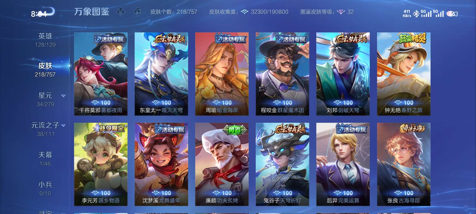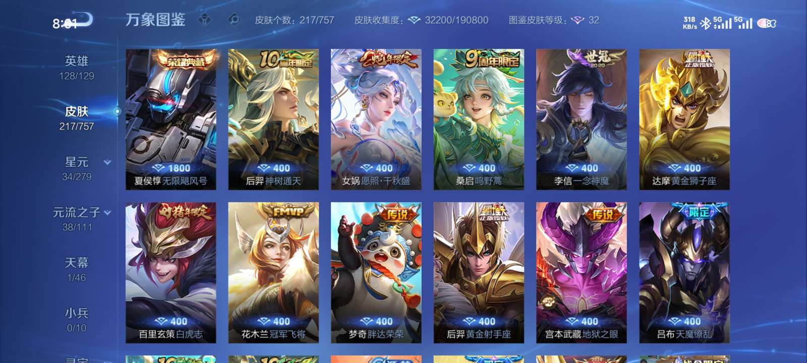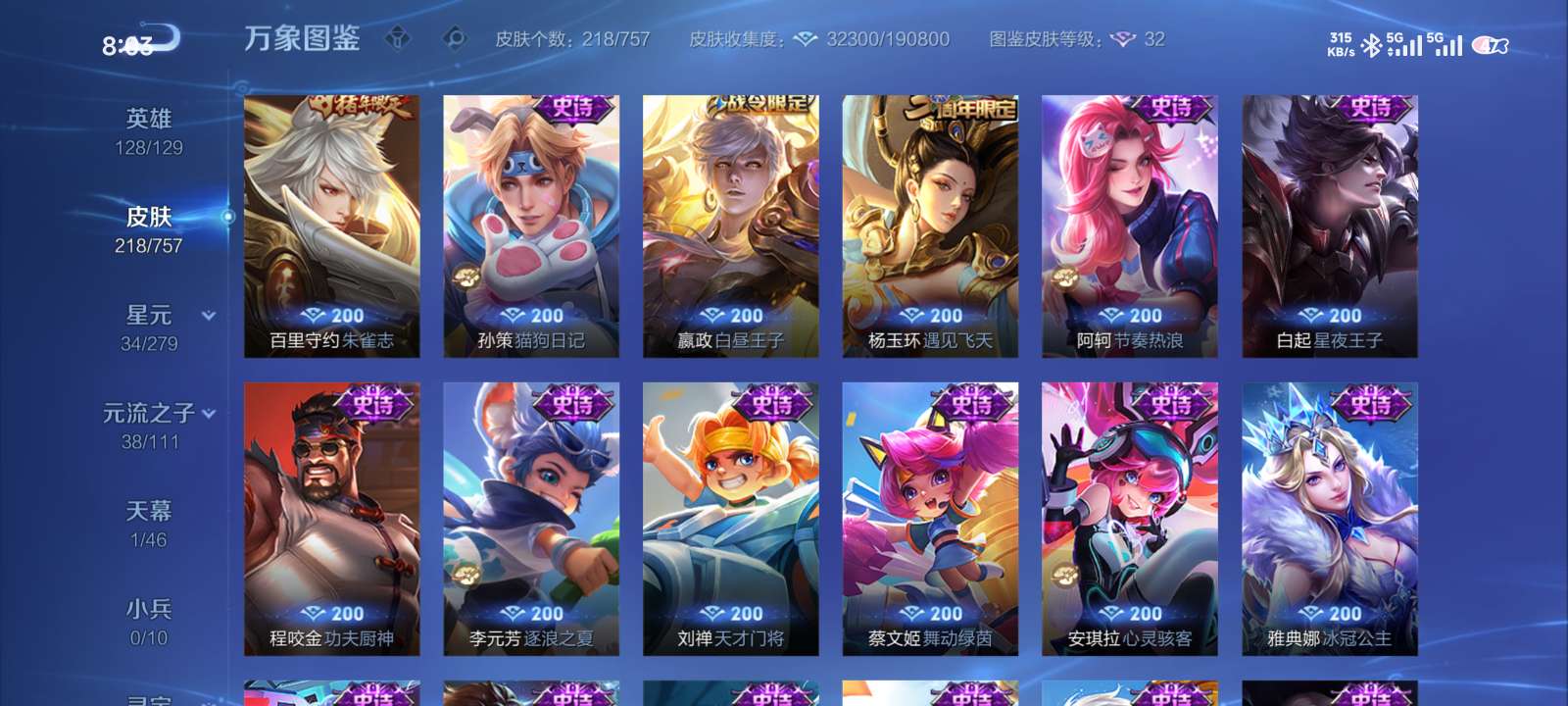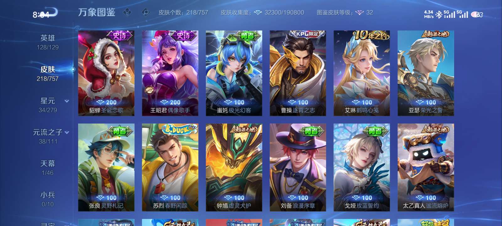 多皮肤账号,荣耀水晶加猪年全满