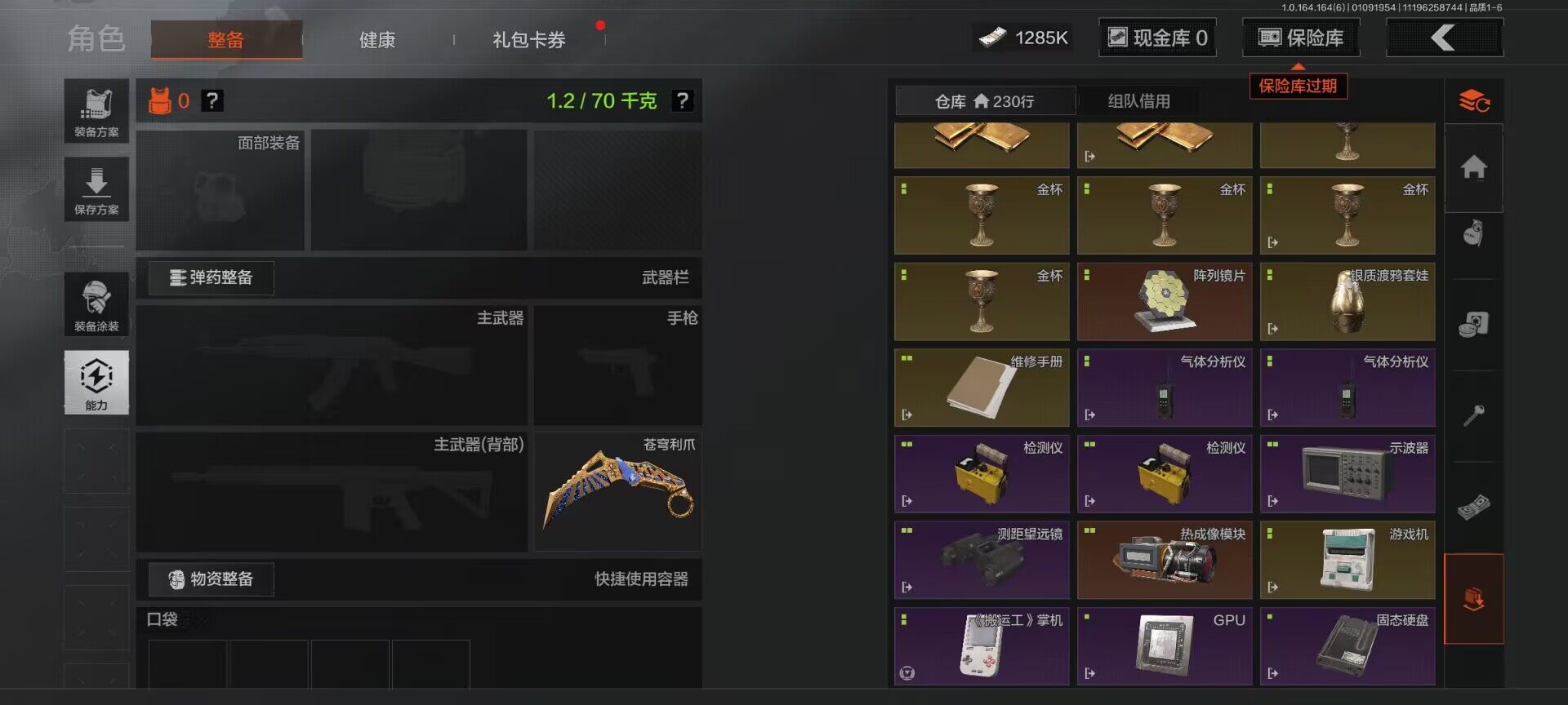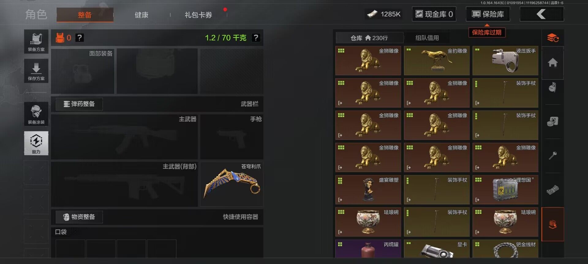 仓库价值(百万):105.7/柯恩币:1285000/苍穹利爪