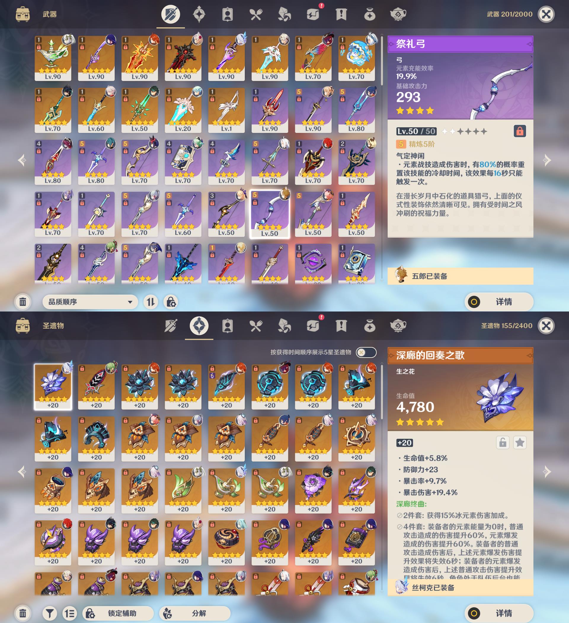 57级/39黄/女主/19个五星角色/13个五星武器/2命玛薇卡