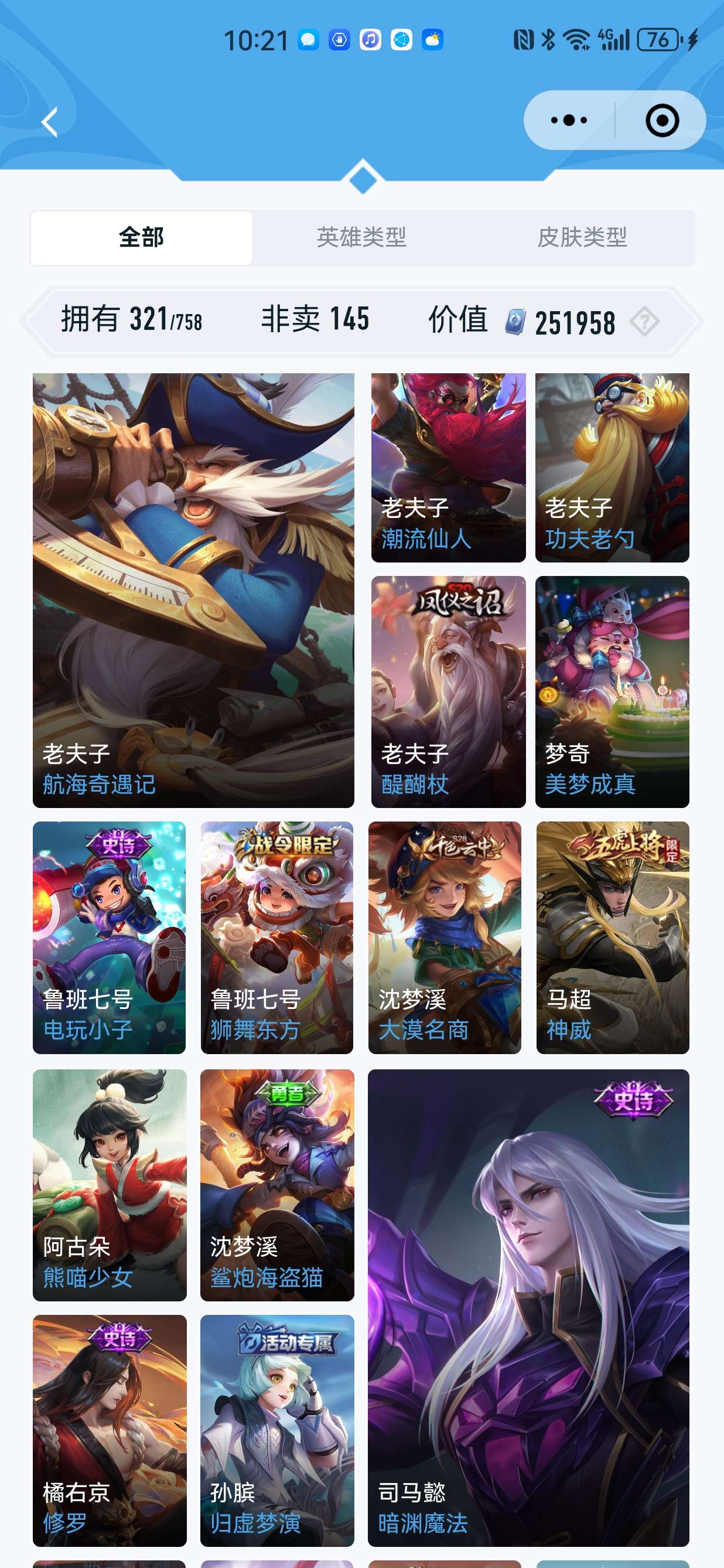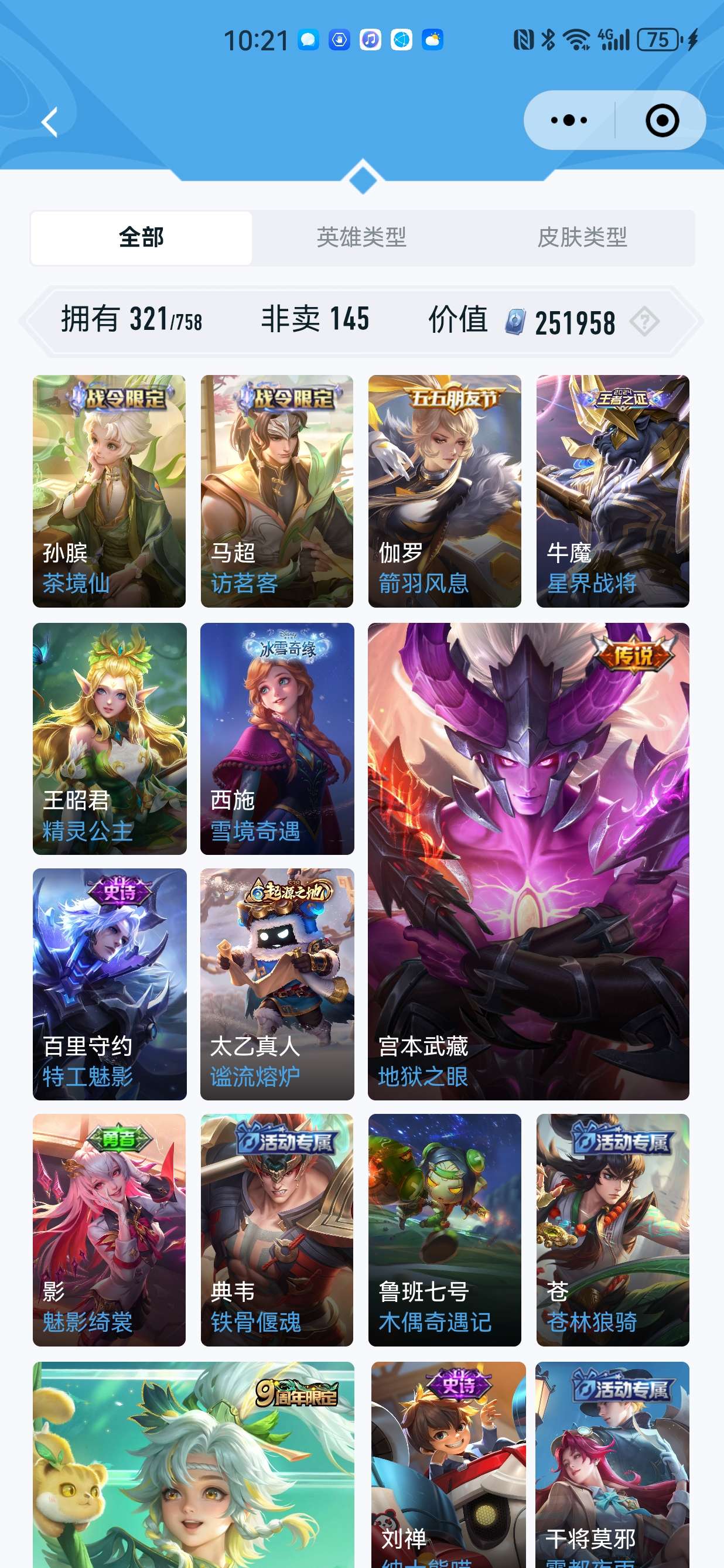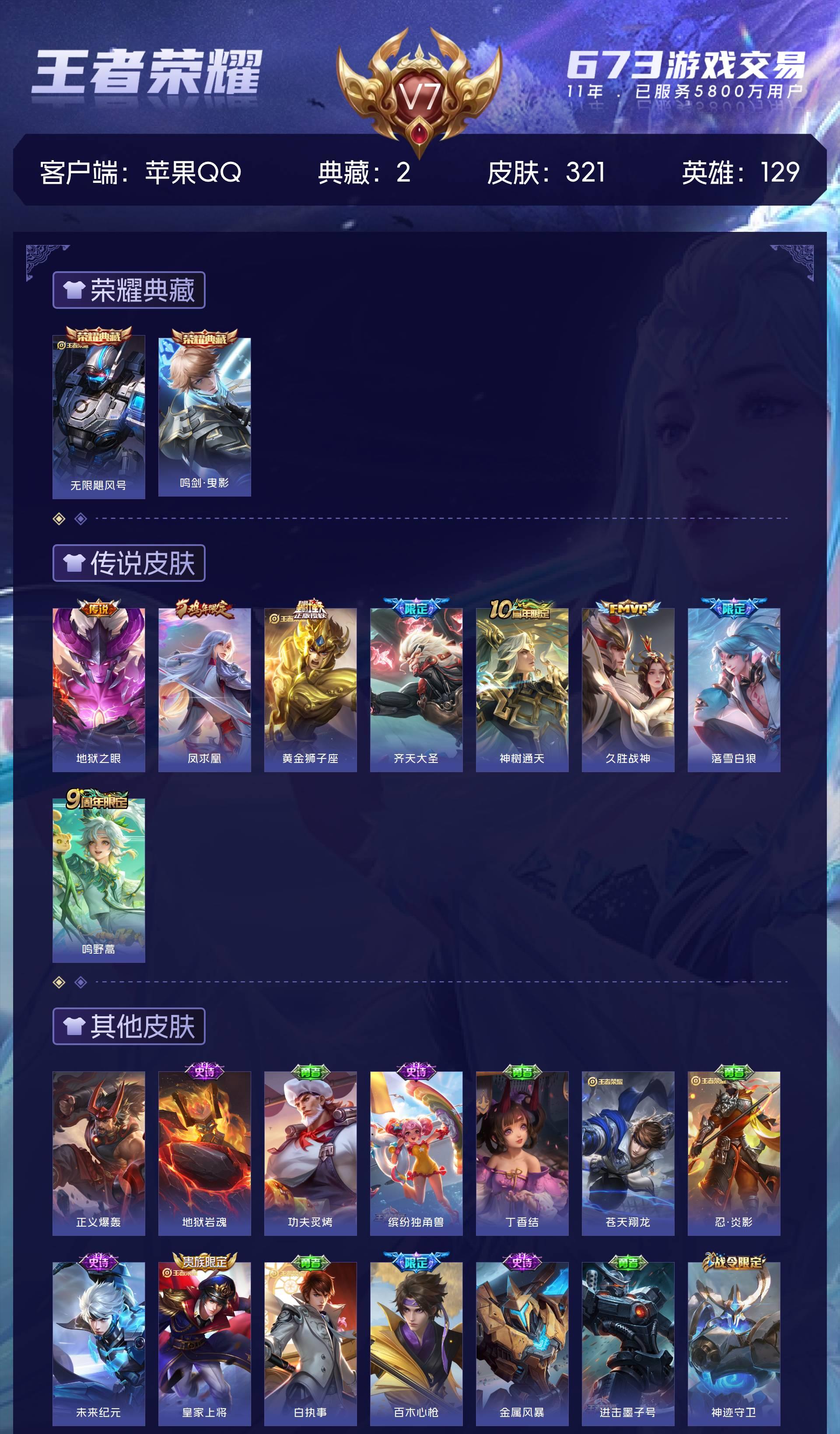 V7 皮肤321 英雄129 荣耀王者 荣耀典藏2 星传说2 传说8 其他皮肤318