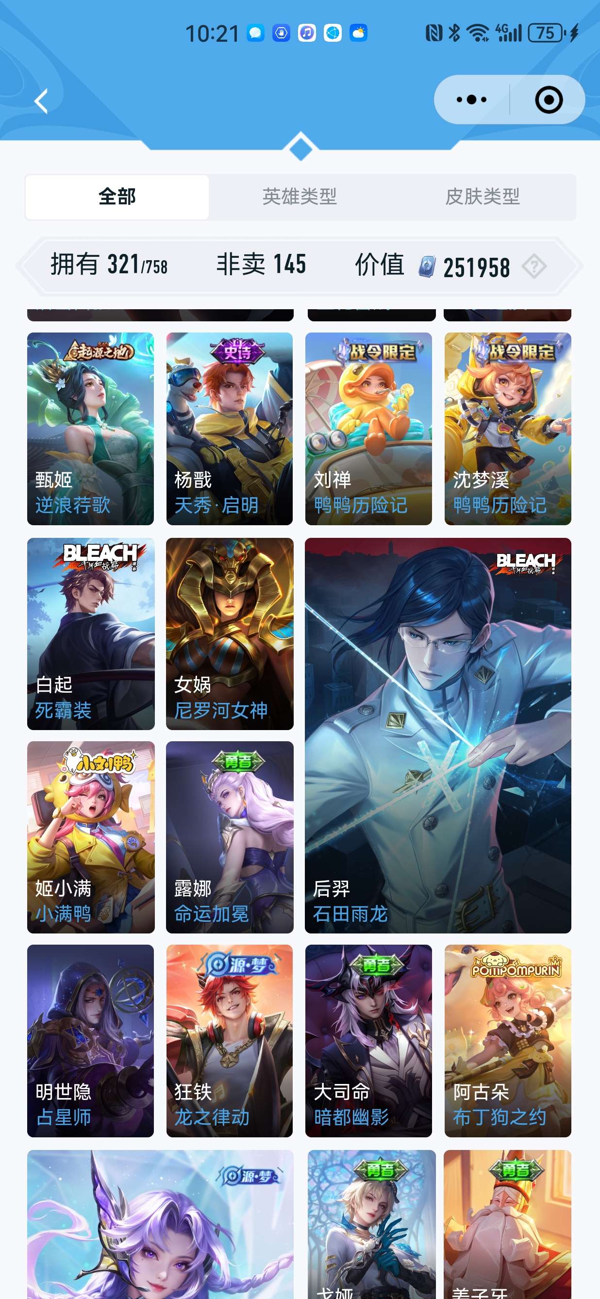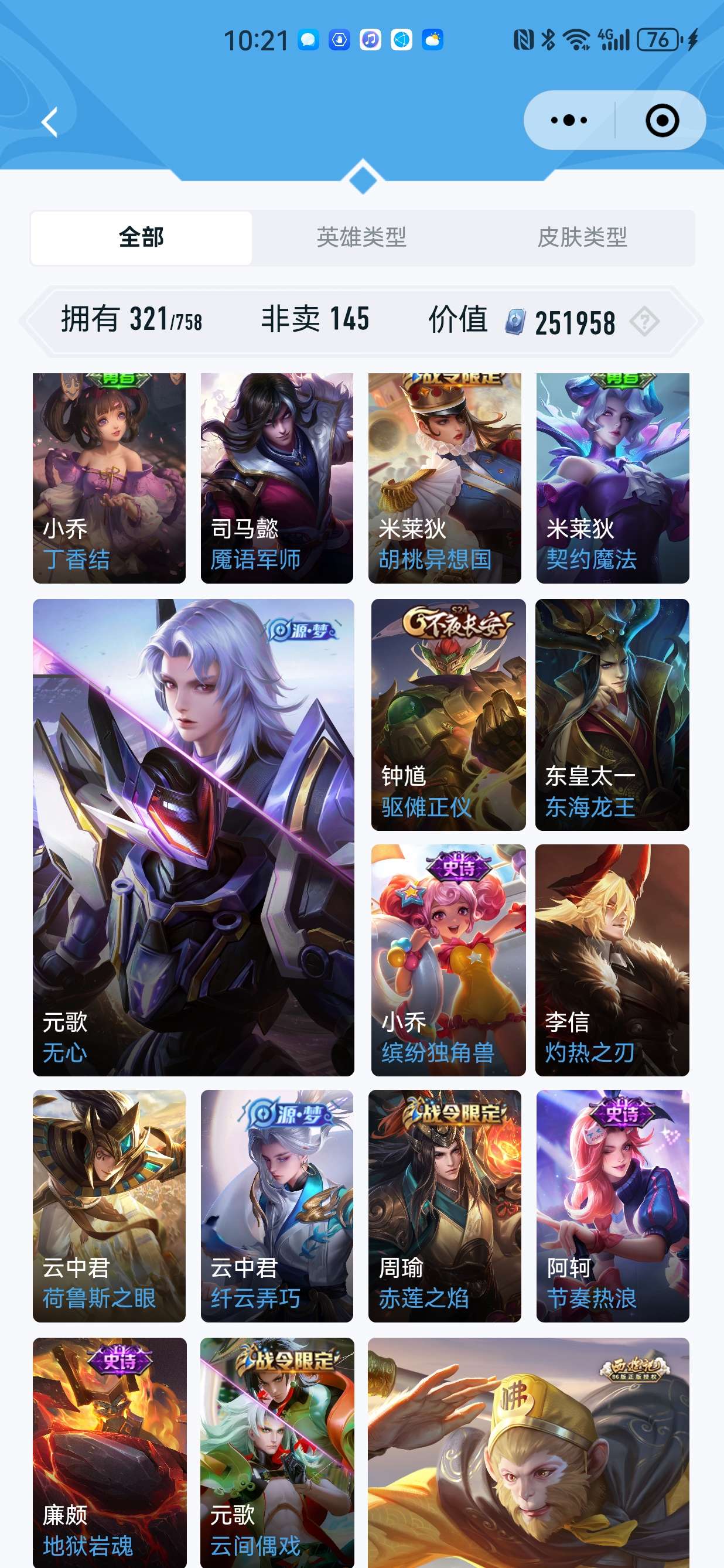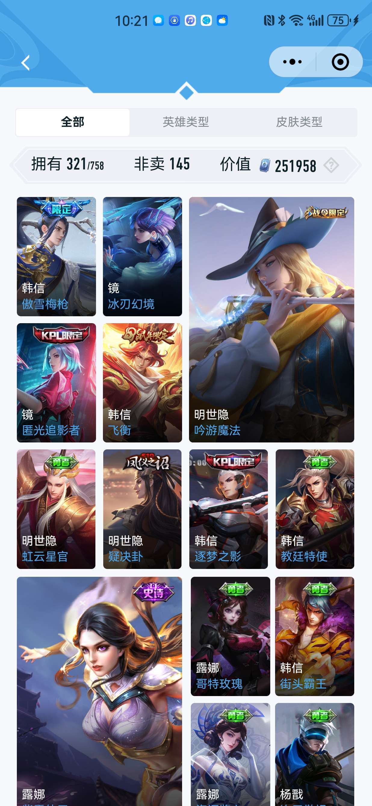 V7 皮肤321 英雄129 荣耀王者 荣耀典藏2 星传说2 传说8 其他皮肤318