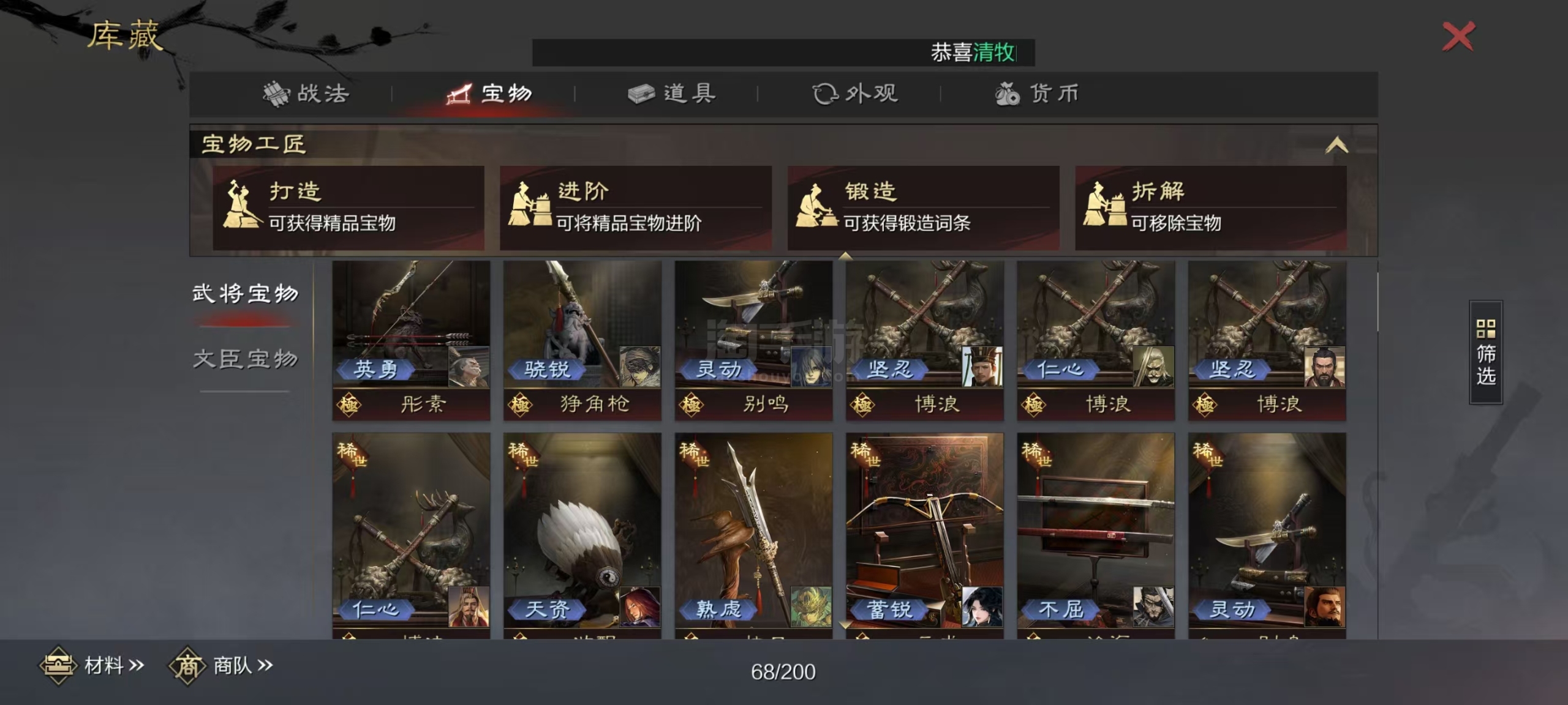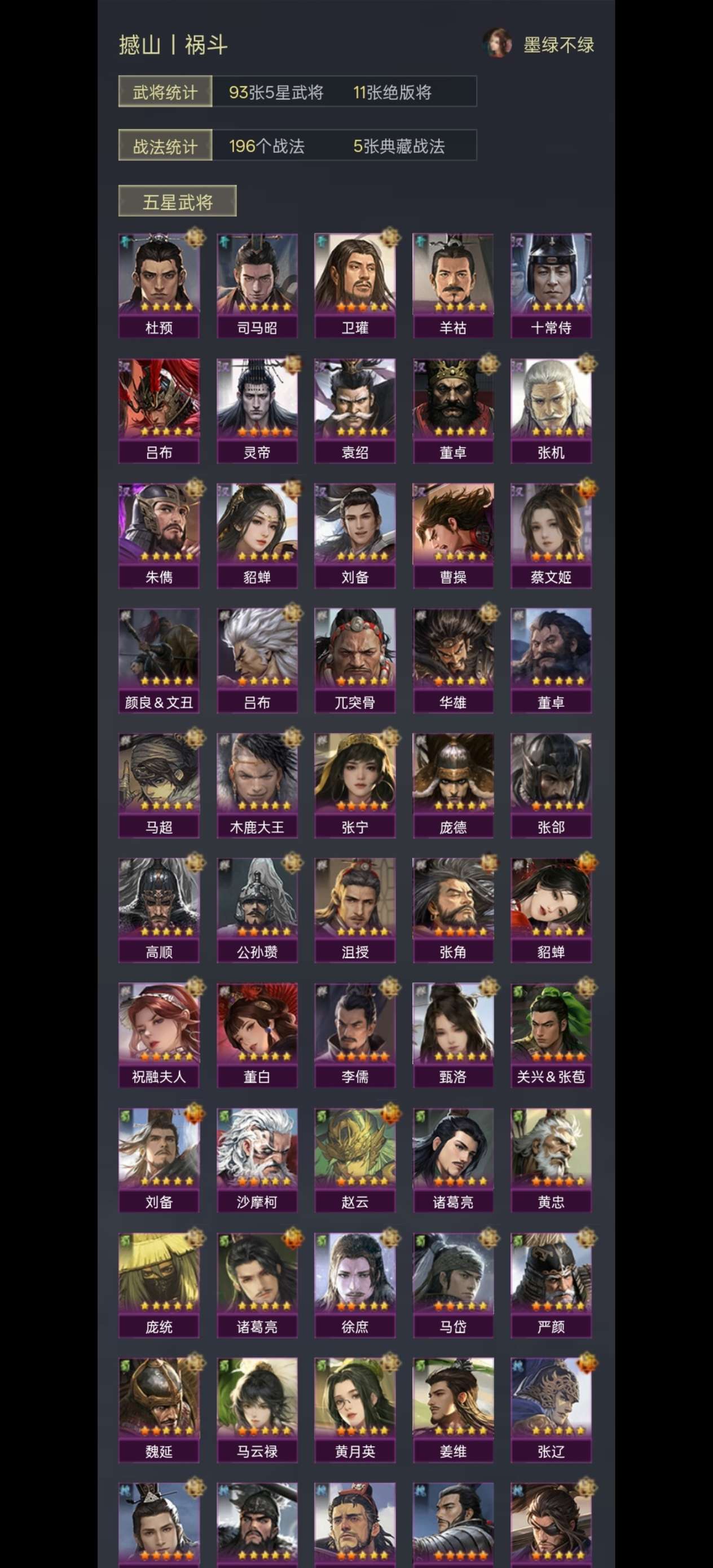 武将,典藏战法,很齐全!值得考虑入手体验!曹操,刘备,司马炎,孙权四黄齐全!核心战法都有!