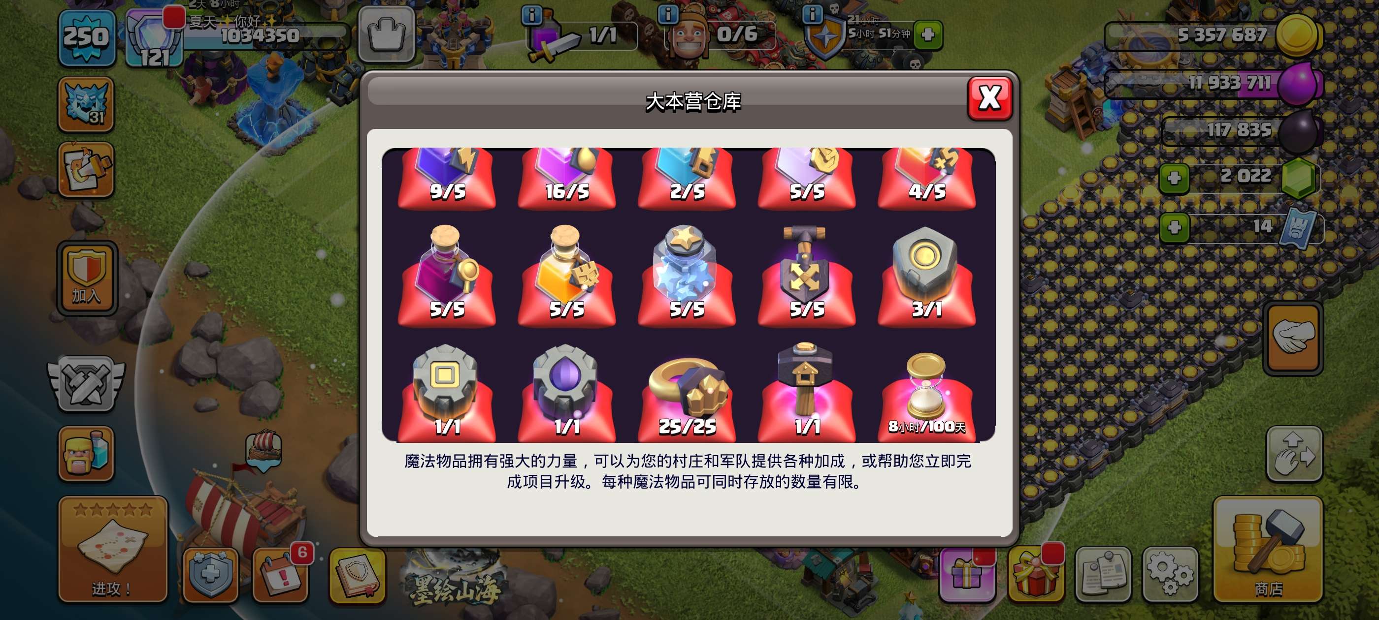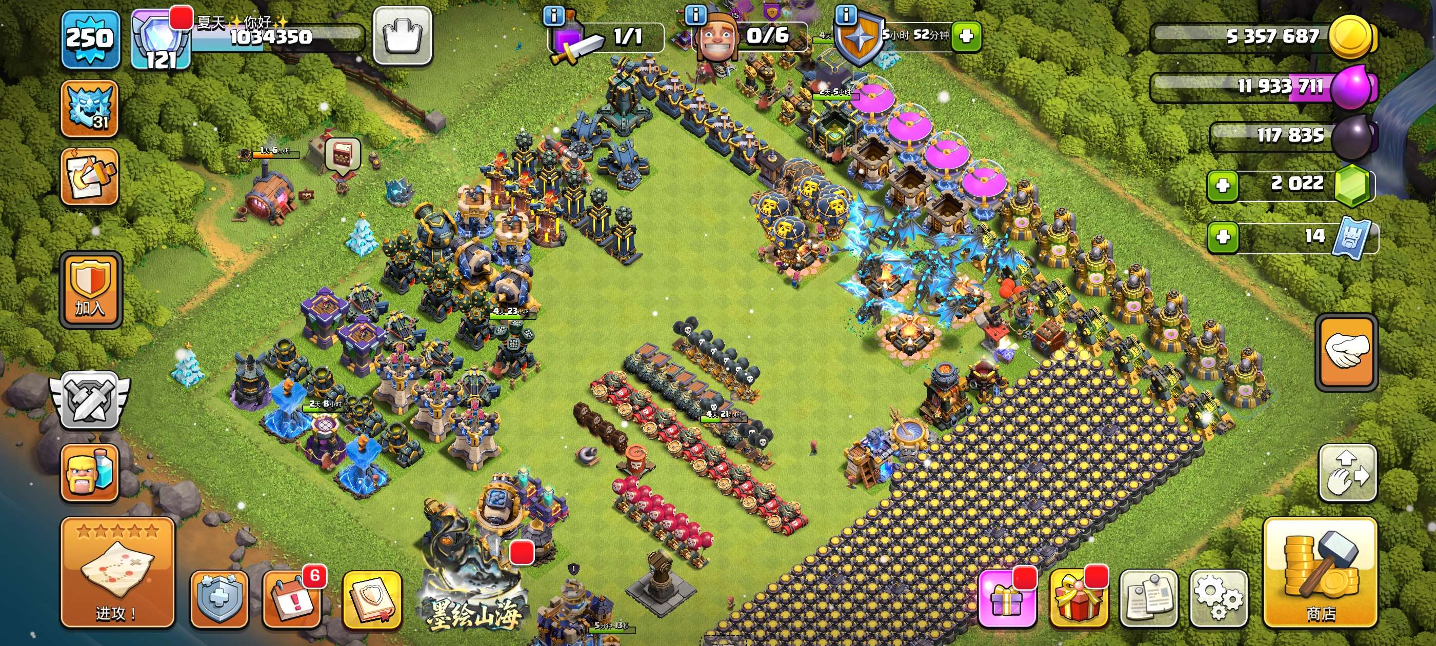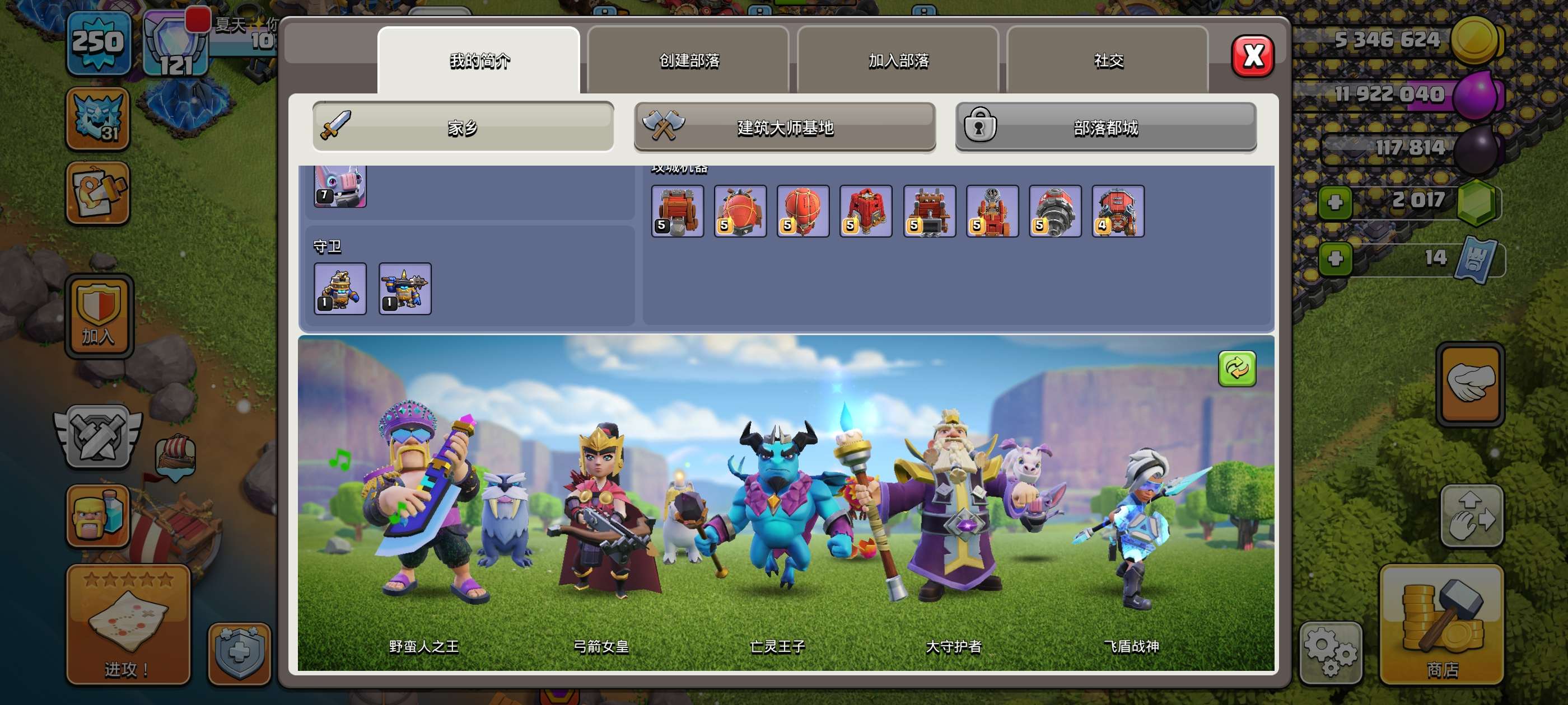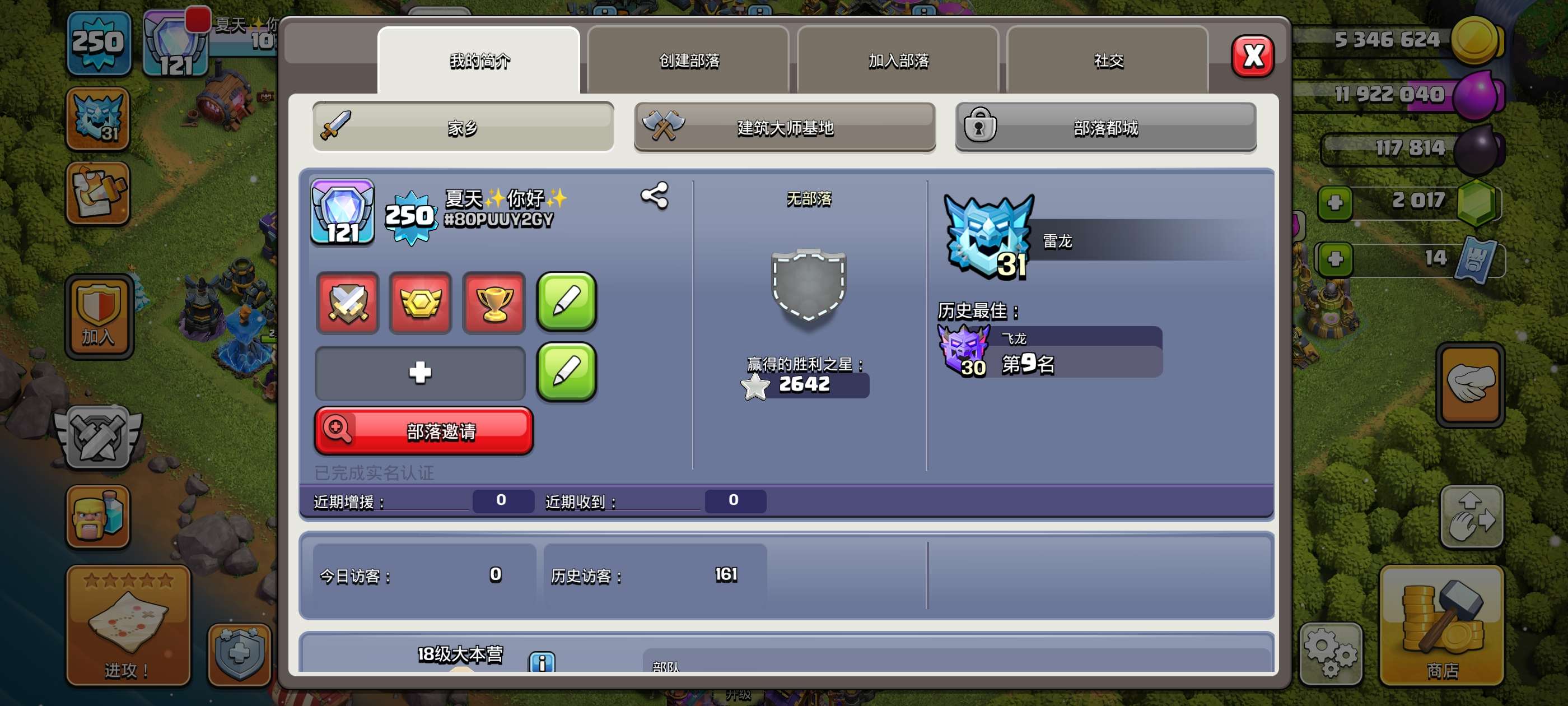 250级,121繁荣,18本,夜世界38级防御科技全满只差城墙,主世界5王高等级