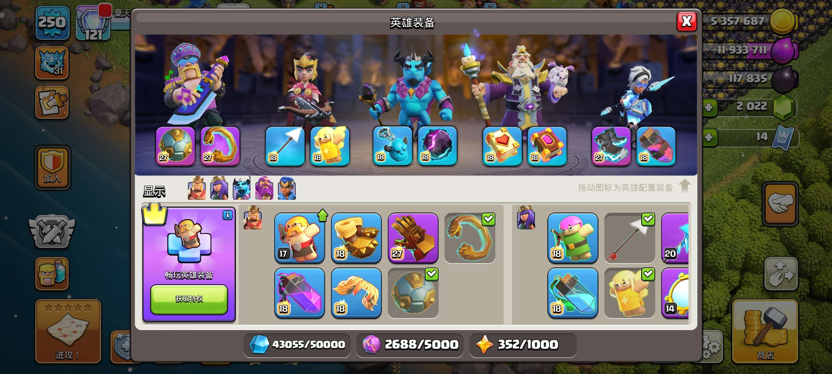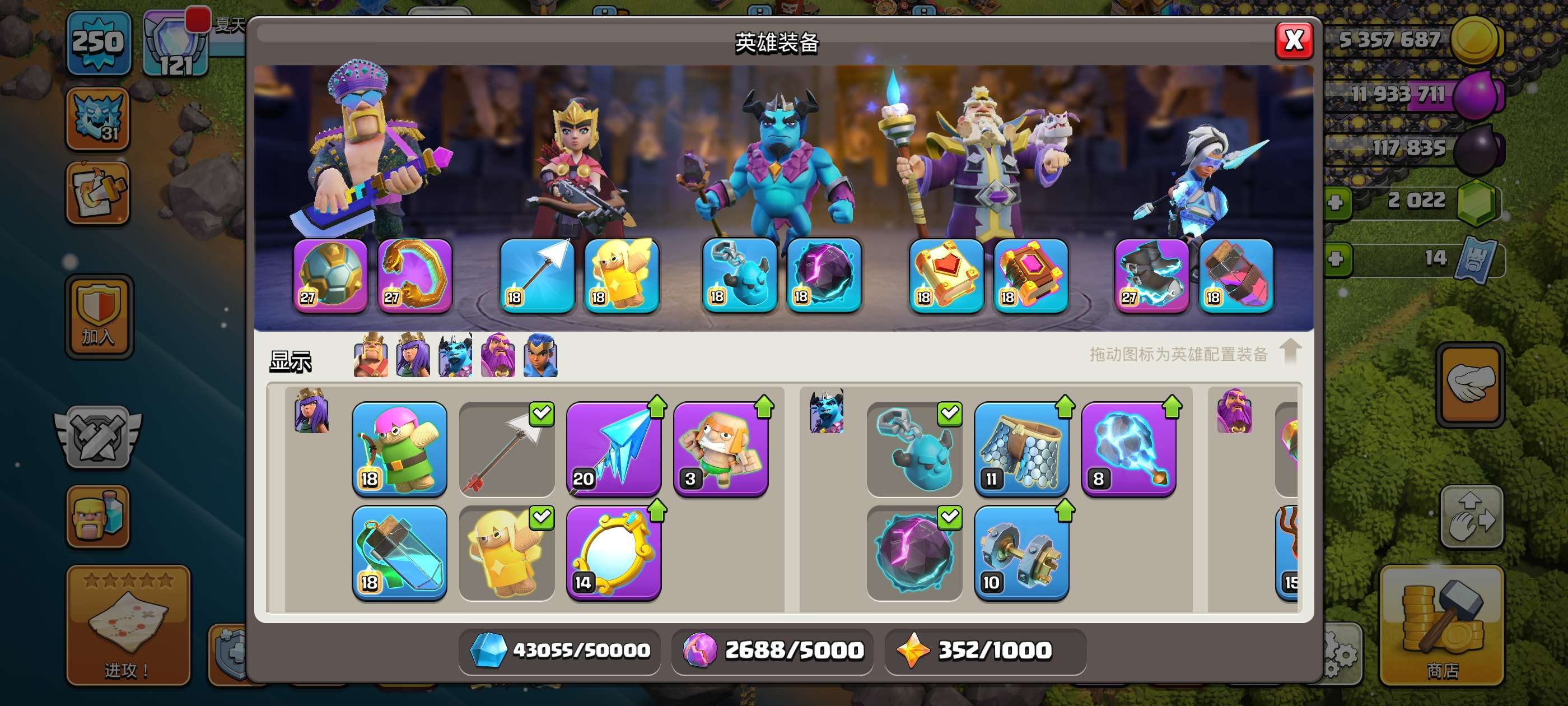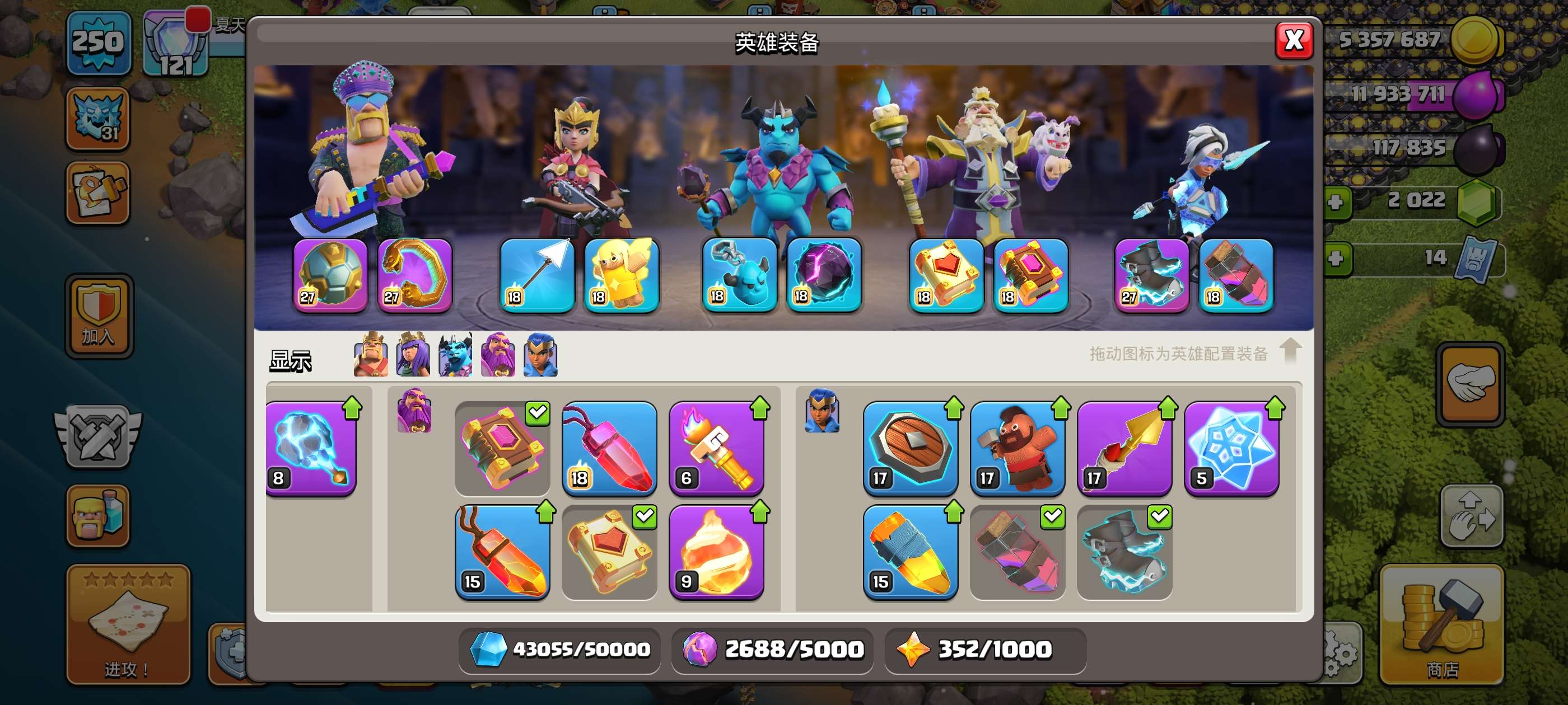 雷龙31每天拿两个黄矿,黄矿还剩了352个,想玩什么装备自己升,都在图里了,有别的问题可以直接问我