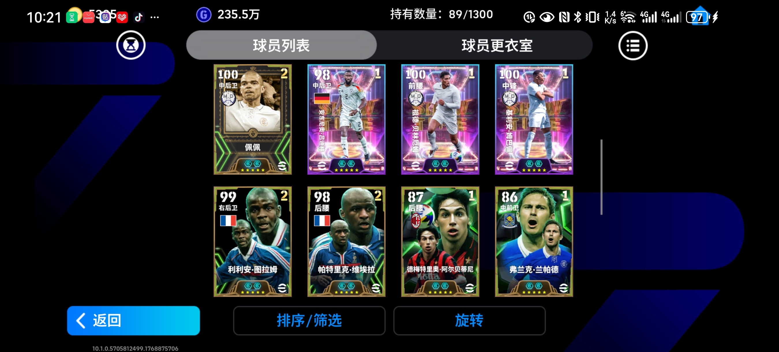 超毕业阵容,多神兽和绝版卡,多二闪球员,一级战队,有皇马队套,三卡,心仪1452,账号安全,支持换绑