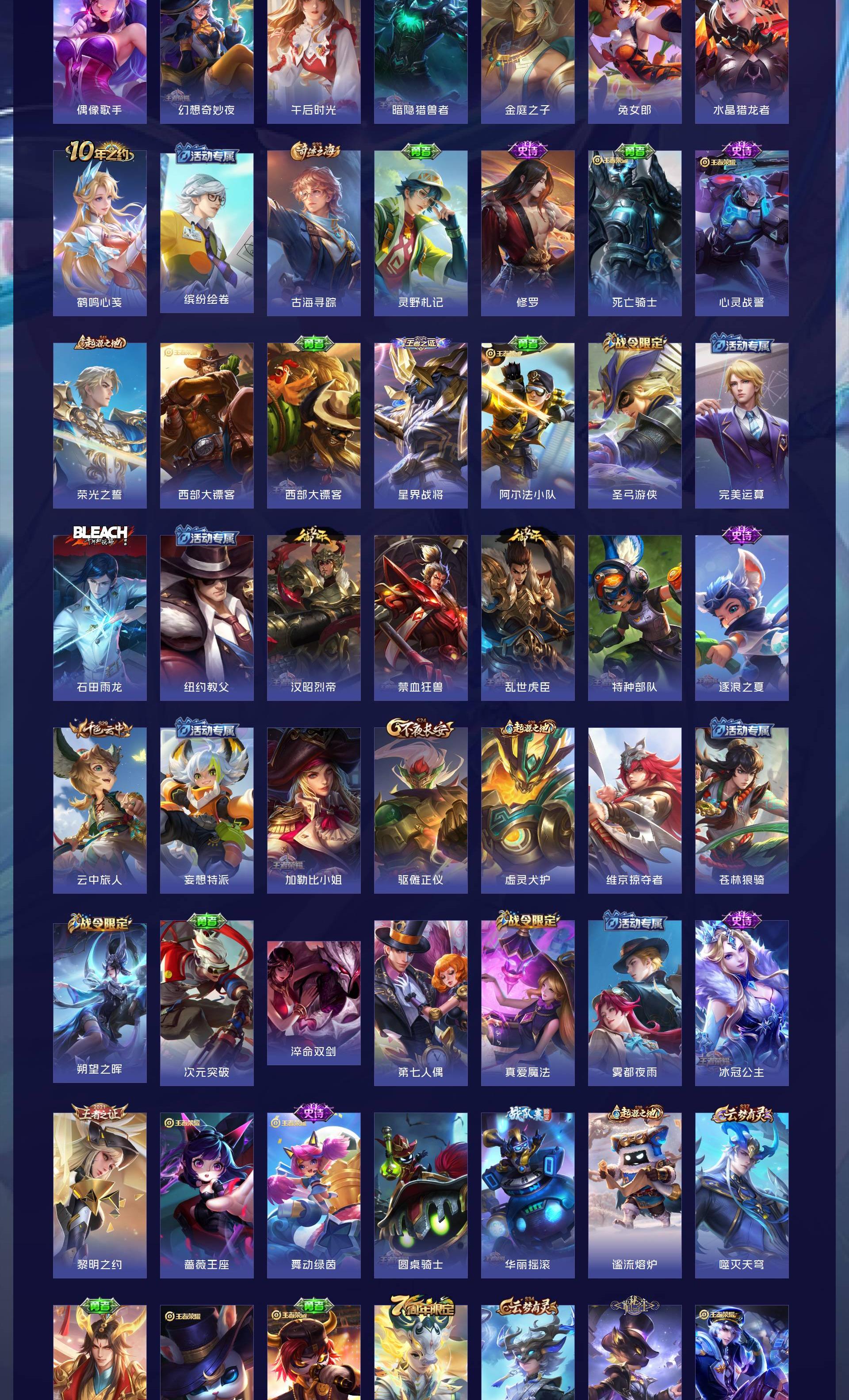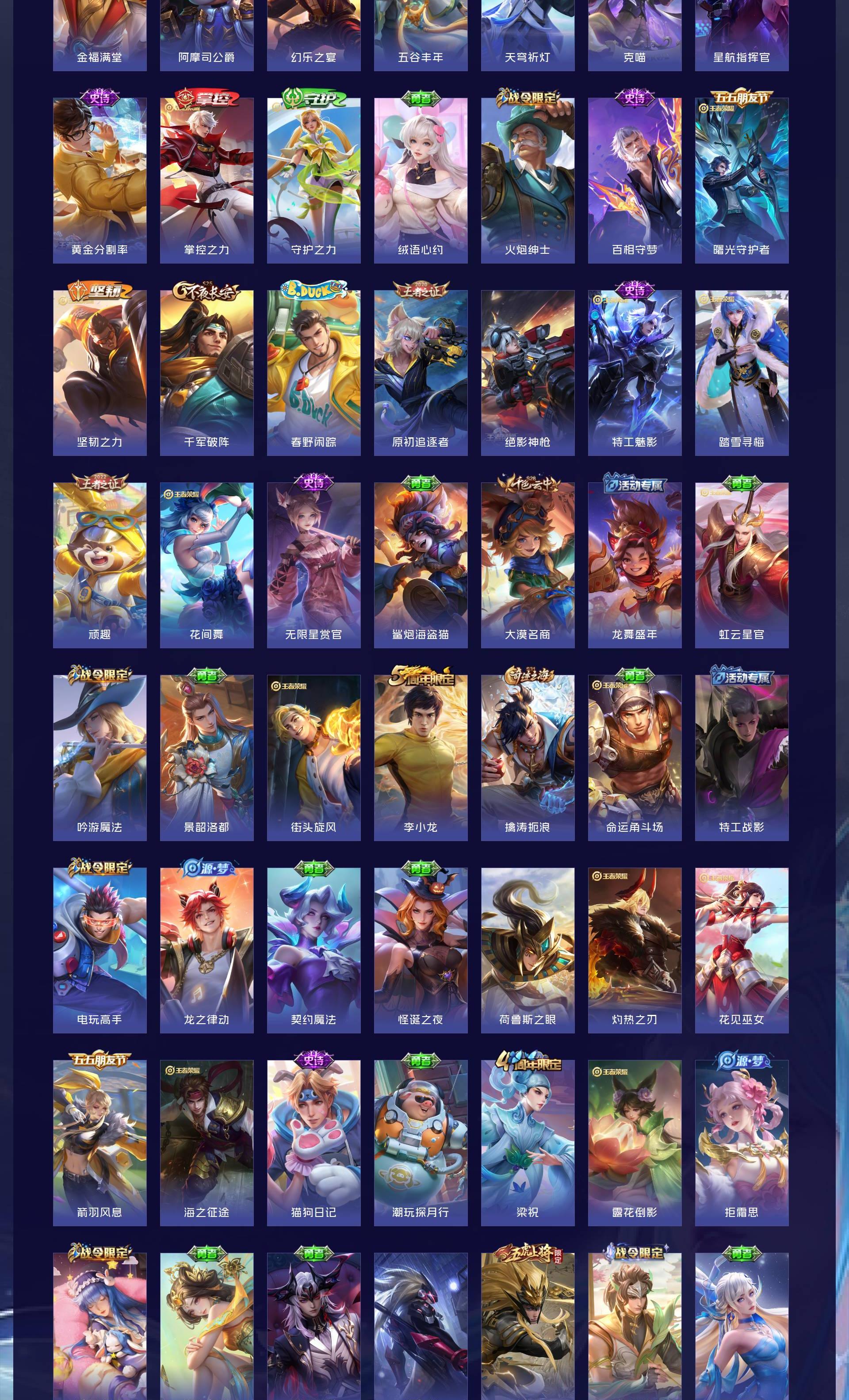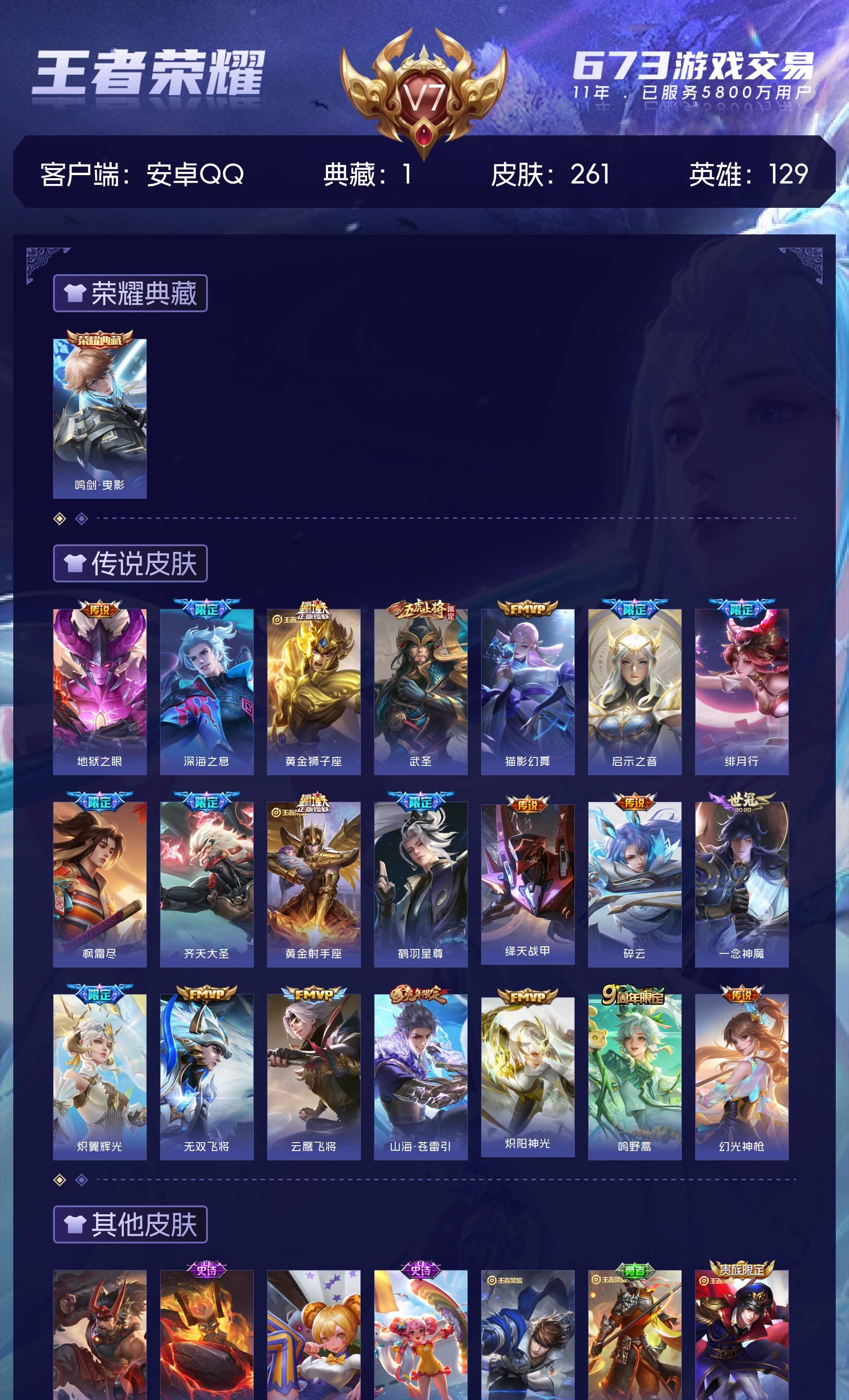 V7 皮肤261 英雄129 永恒钻石 荣耀典藏1 星传说1 传说21 其他皮肤246