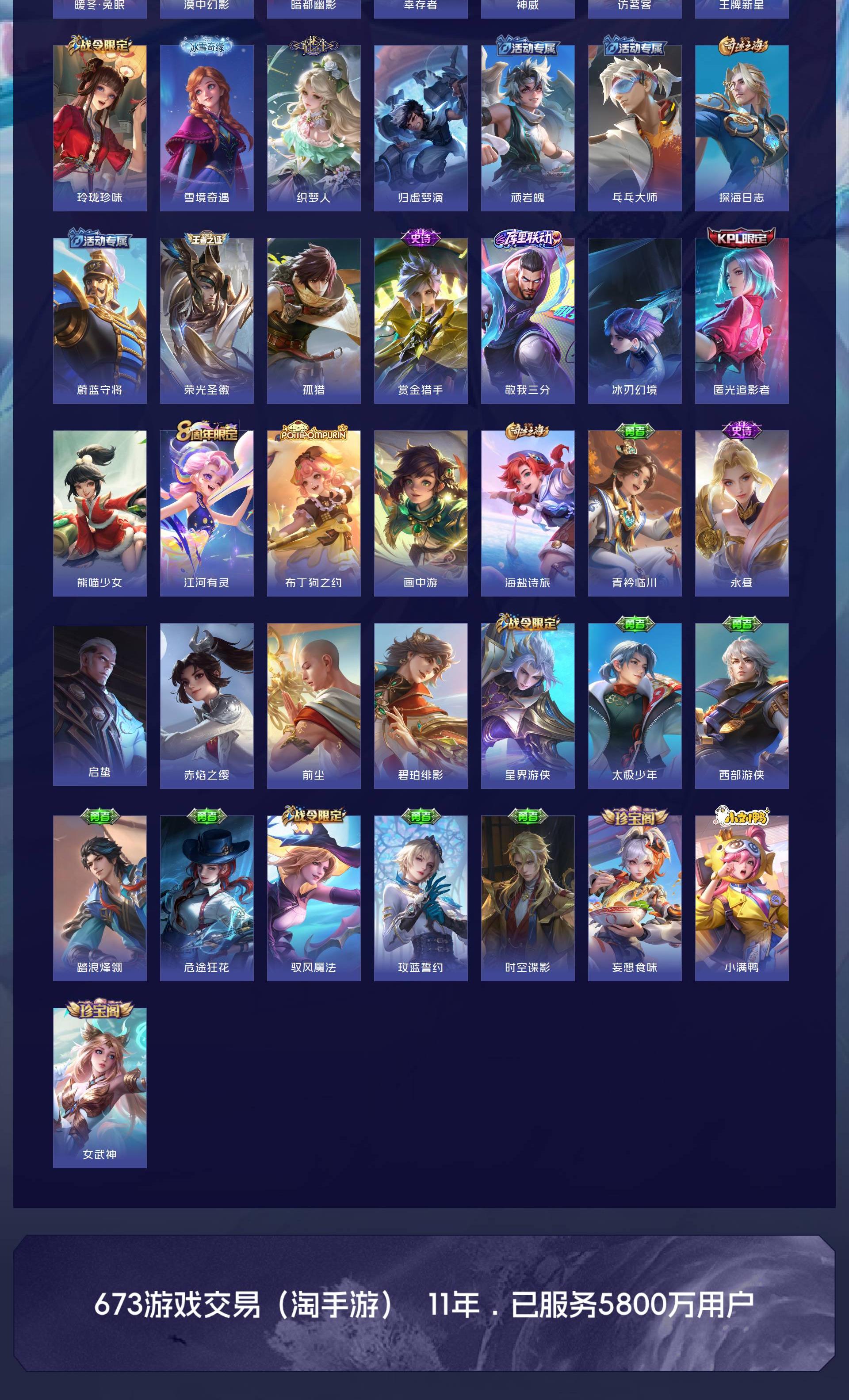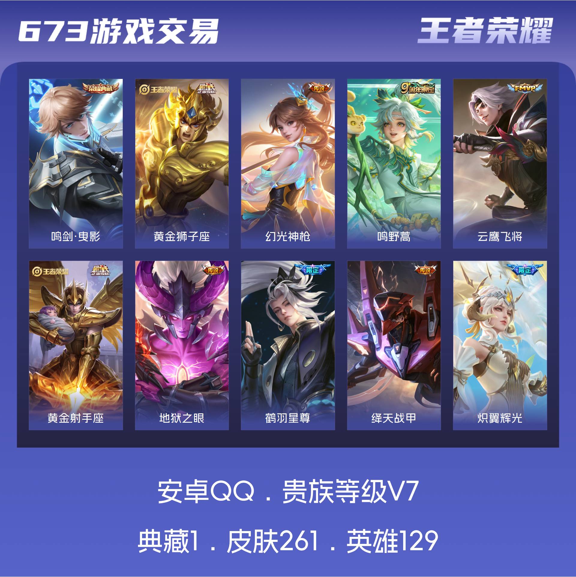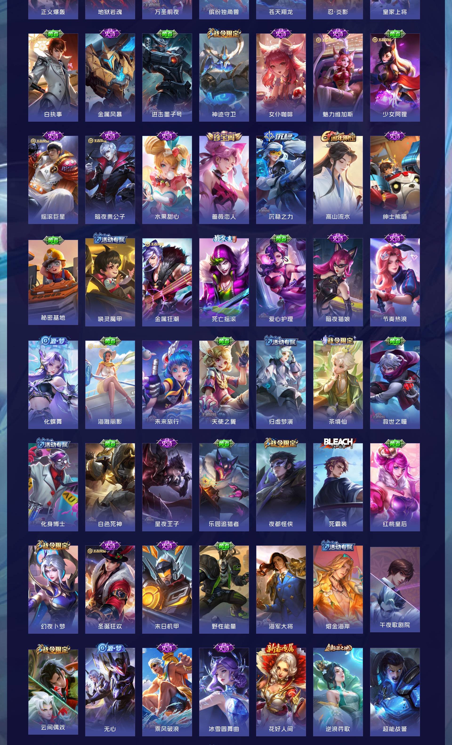 V7 皮肤261 英雄129 永恒钻石 荣耀典藏1 星传说1 传说21 其他皮肤246