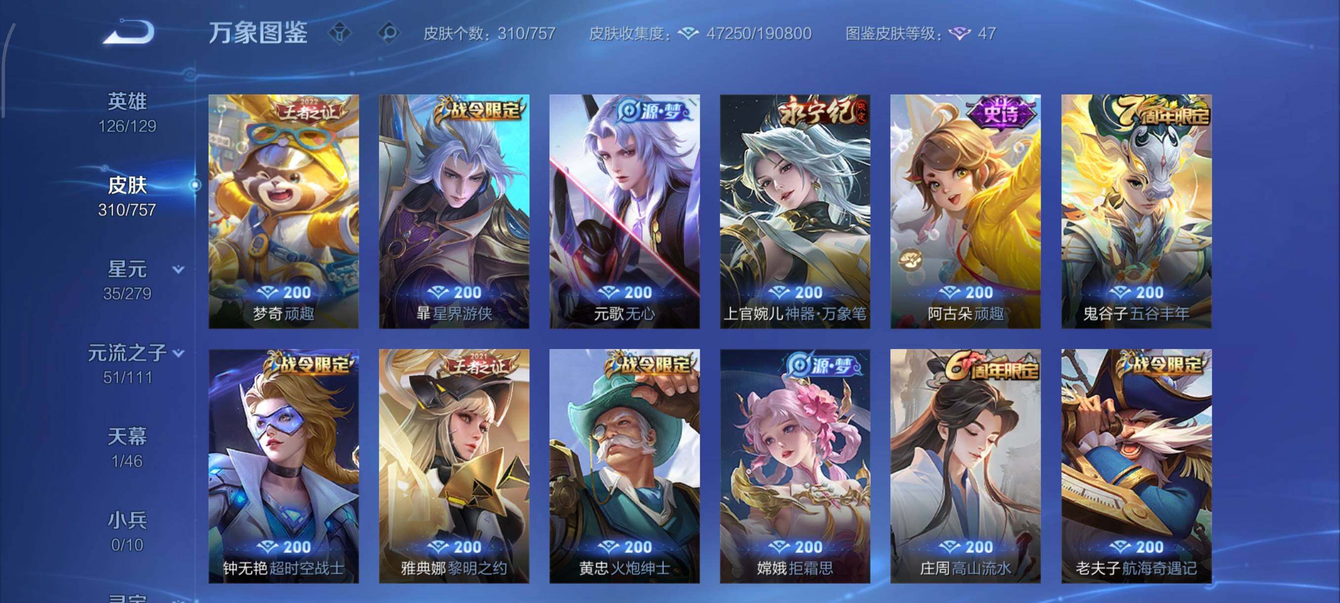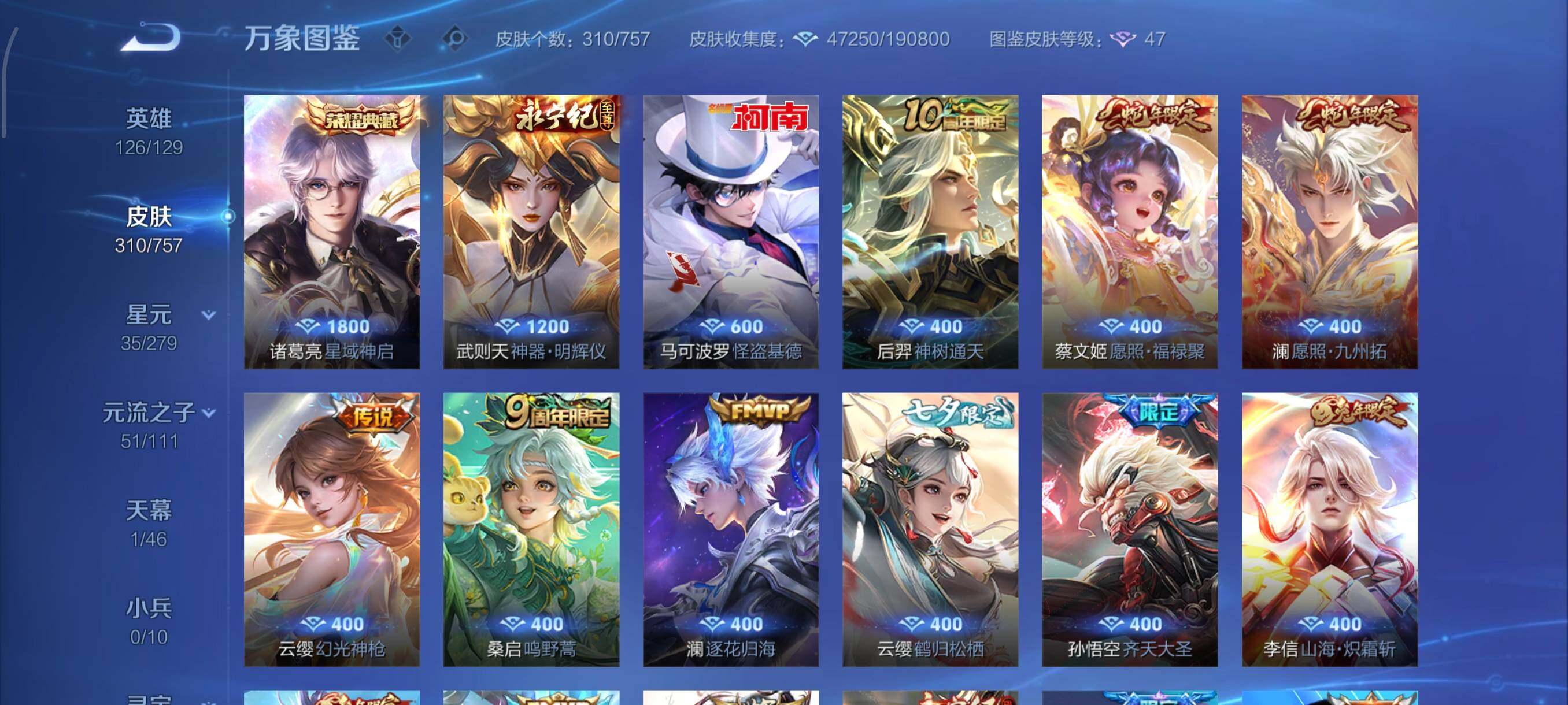 【高性价比·星域神启·神器明辉仪·马可怪盗基德·Hello Kitty天幕·澜愿照九州拓·愿照福禄聚·澜逐花归海·鹤归松栖·齐天大圣·曜山海苍雷引·山海炽霜斩·诗剑行·神器狴犴令·深海之息·可二次】YXw10848-安卓Q-126英雄-310皮肤-14王者印记-300铭文-贵族积分8W【贵族8】【1典藏·1无双·1珍品·2星传说·25传说·1天幕·3签名·12按键