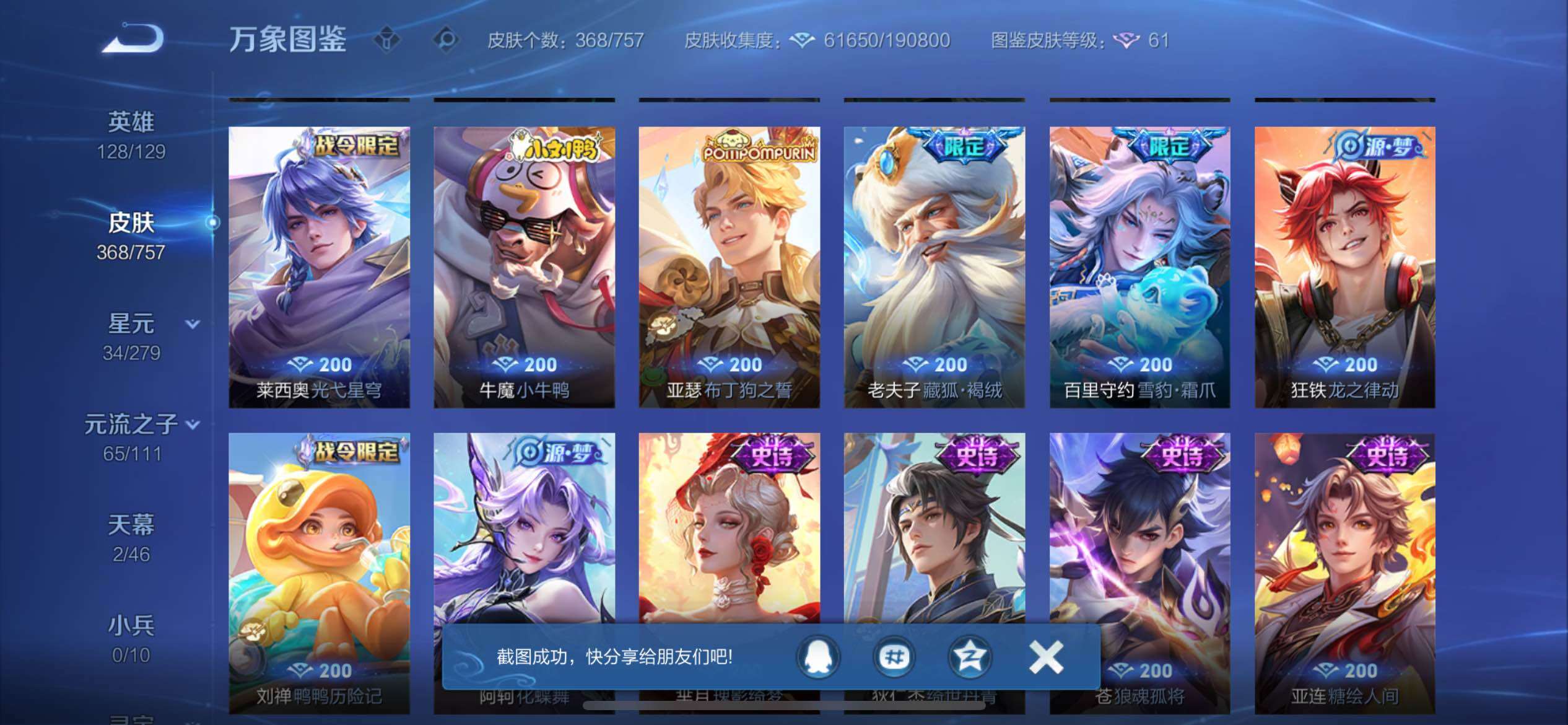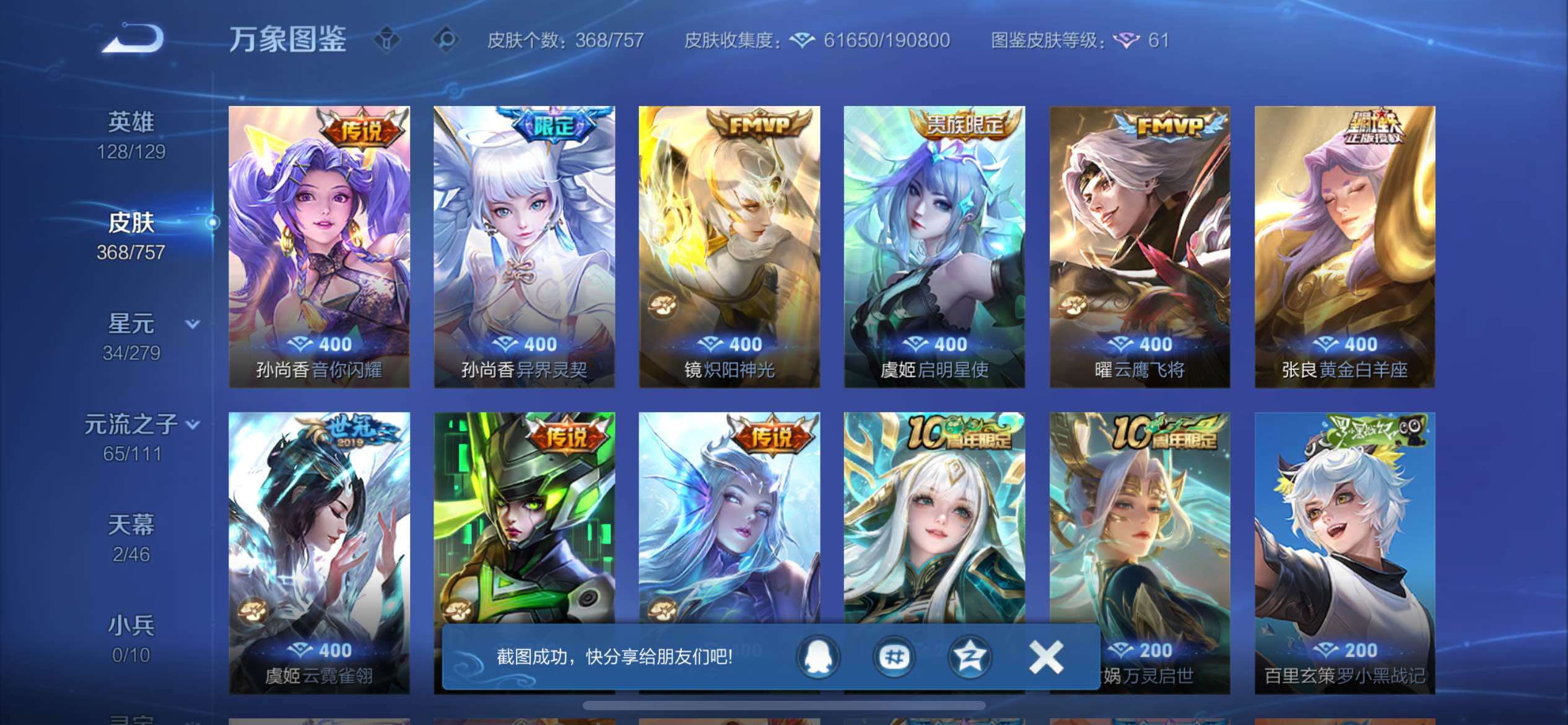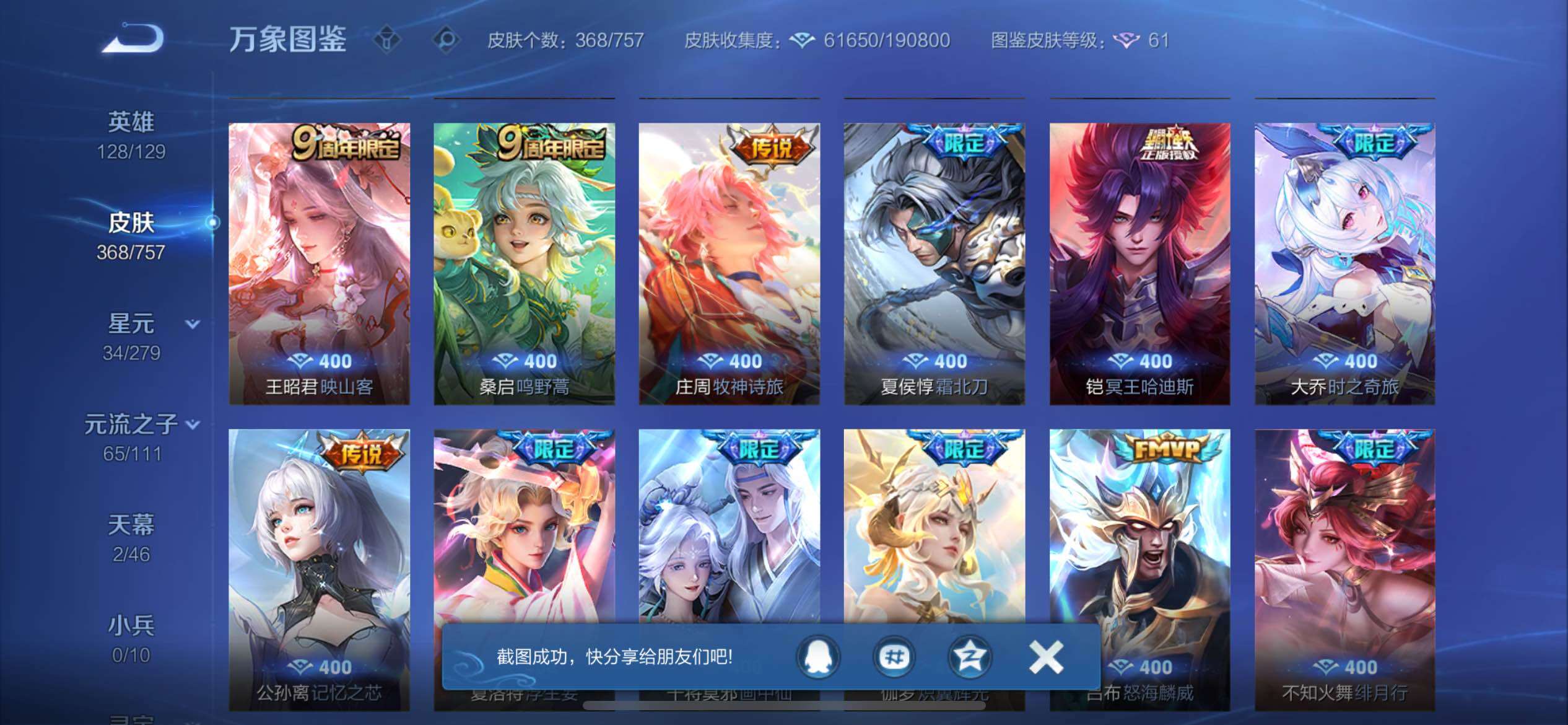 【店铺主推女号·2典藏·3无双·7珍品·42按键·怪盗基德天幕·杀手不太冷·武则天·瑶真我赫兹·甄姬雪境奇遇·金标万战火舞·酷洛米之心·瑶大耳狗之梦·兔狲蓬尾·器灵落星盏·江户川柯南·马可怪盗基德·续相思·满蛇年限定·可二次】YXw10855-苹果Q-128英雄-368皮肤-9王者印记-200铭文-贵族积分12W【贵族9】【2典藏·3无双·7珍品·2星传说·34传