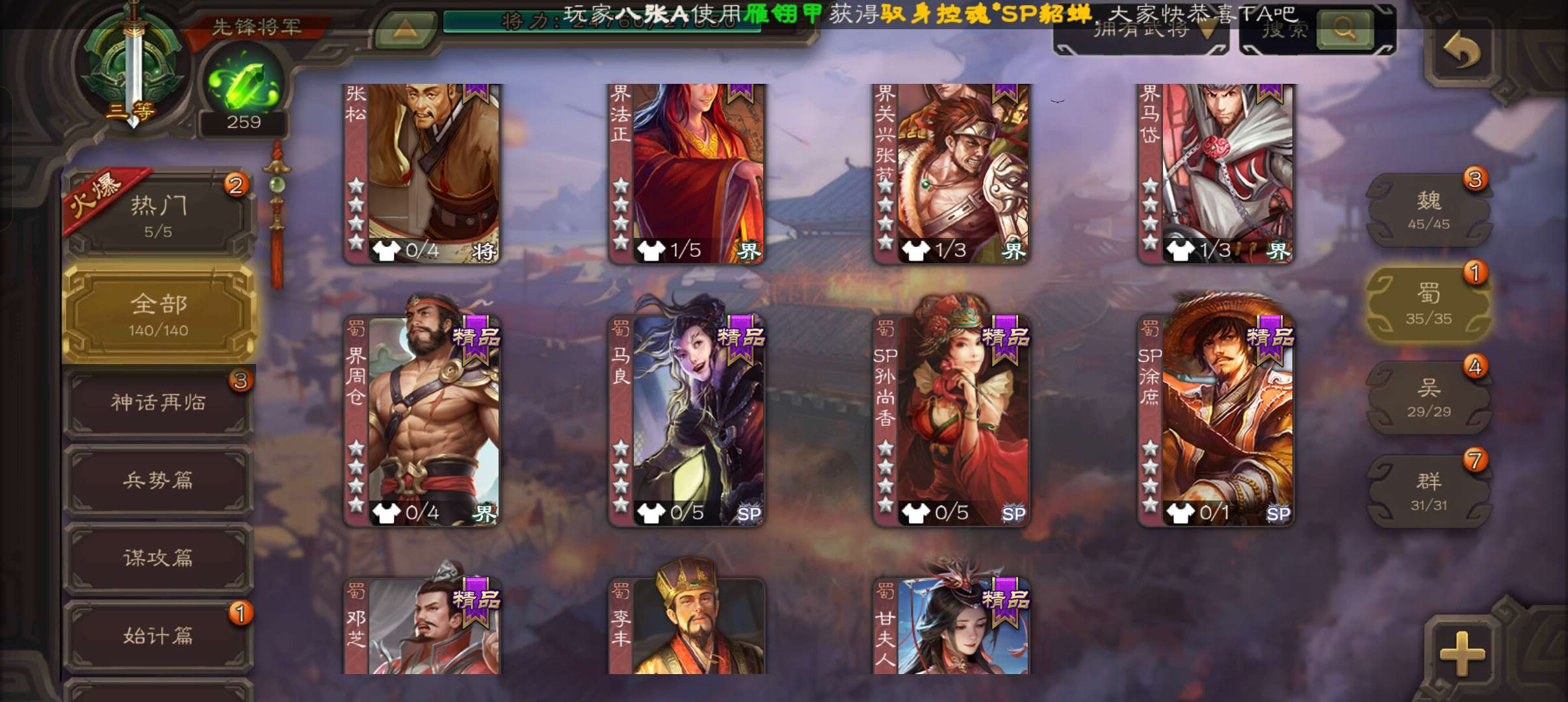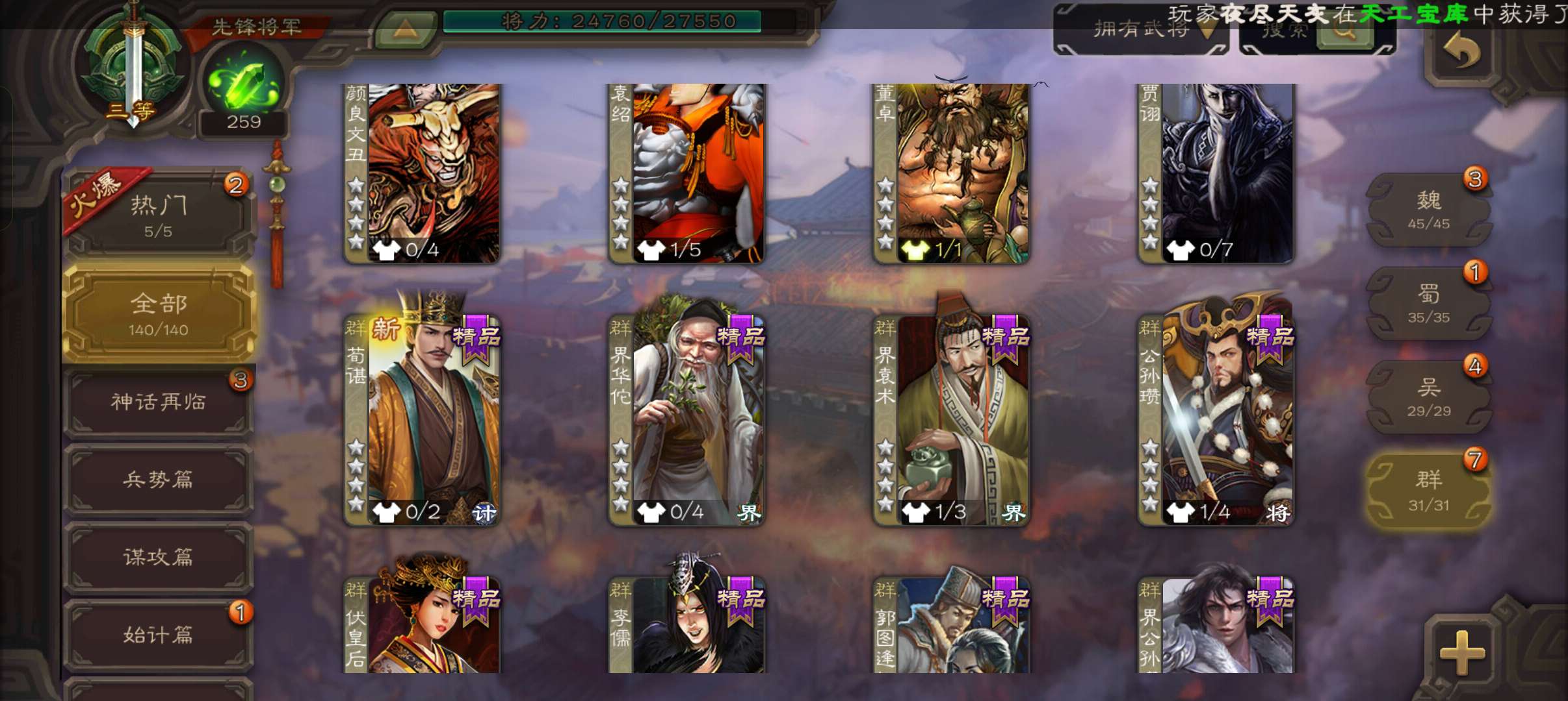 史诗武将数量: