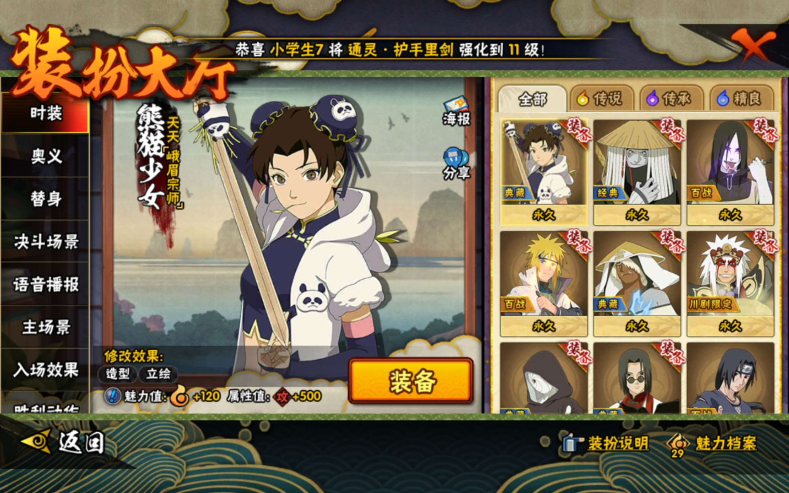 【S级忍者】宇智波带土「忍界大战」(3星),宇智波斑「秽土转生·解」(3星),宇智波斑「秽土转生」(3星),自来也「舞之豪杰」(3星),宇智波鼬「须佐能乎」(3星),波风水门(3星),大蛇丸(3星),