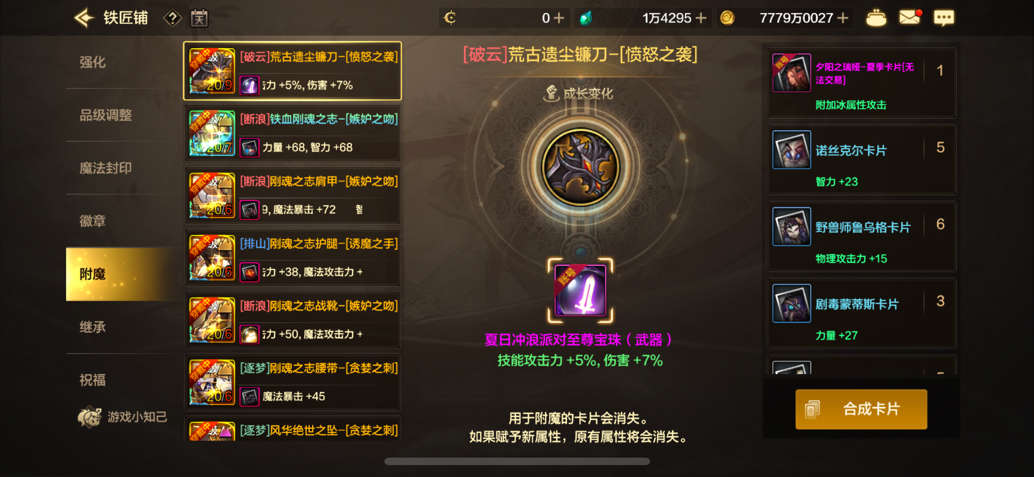 天空套荒古毕业,顶配附魔心脏卡 光剑洛克卡,节日勋章,超高打造!赠送包赔!安全无忧!