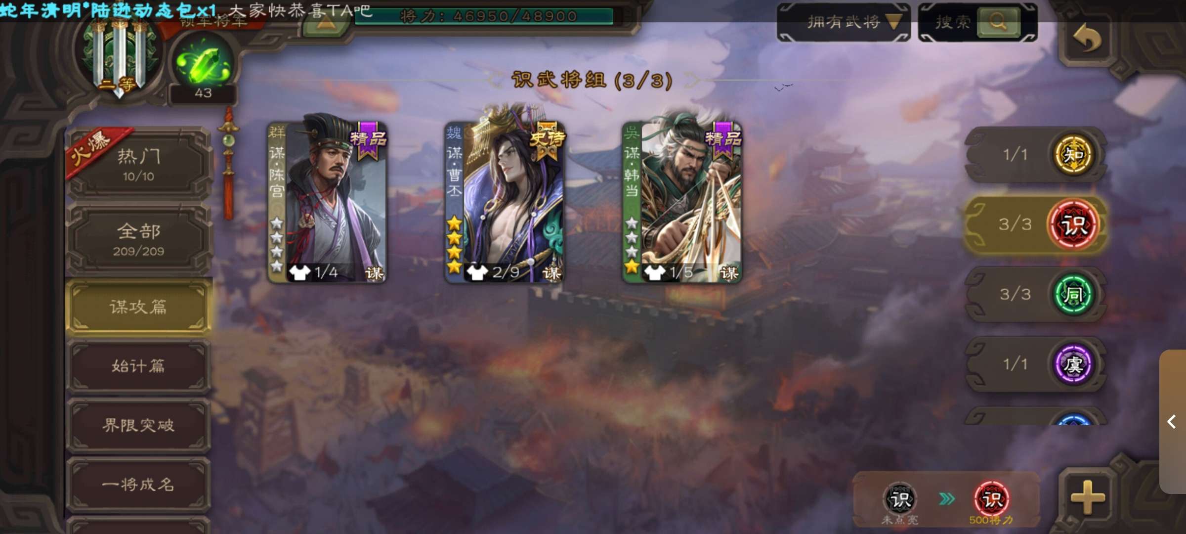 领军鲍三娘,动皮谋曹丕,9史诗,5动皮,5谋武将