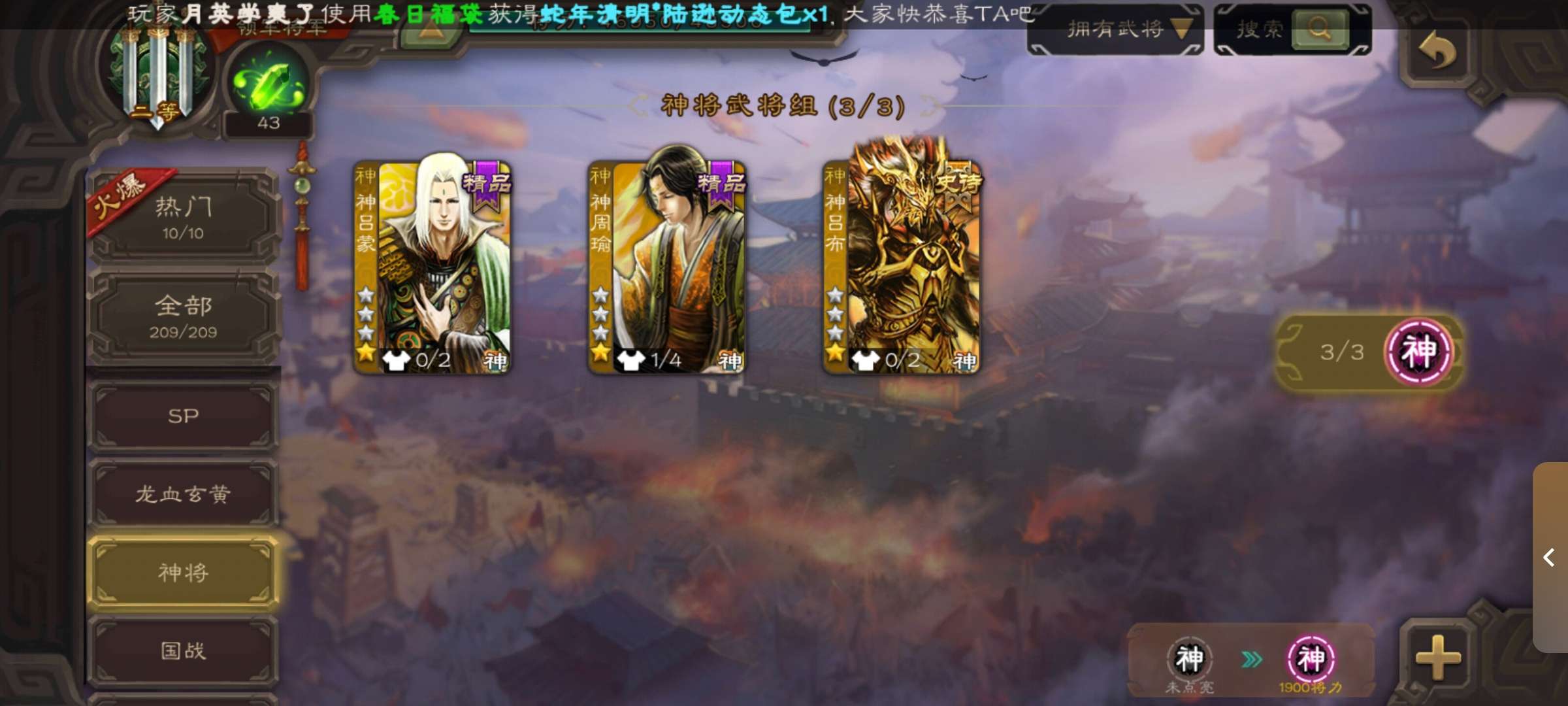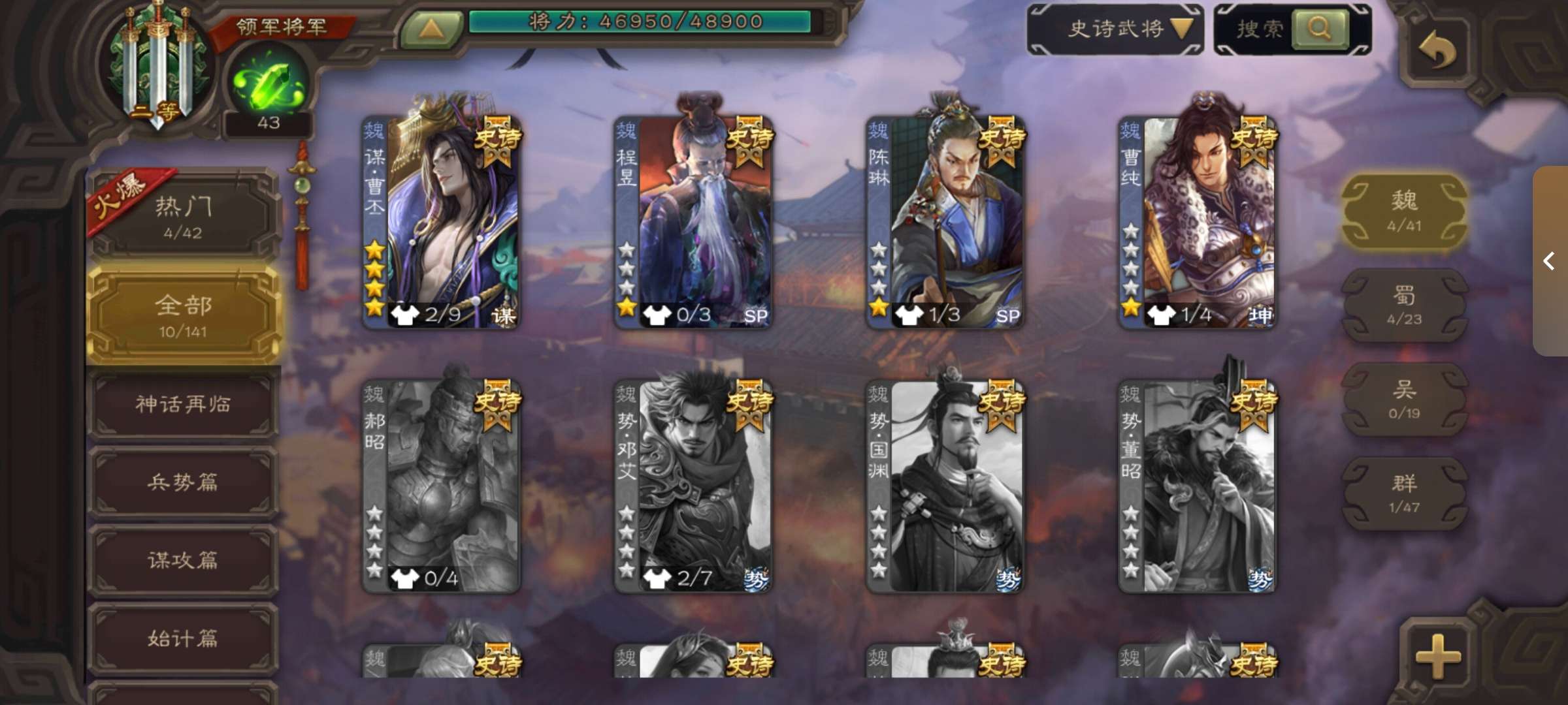 史诗武将数量: