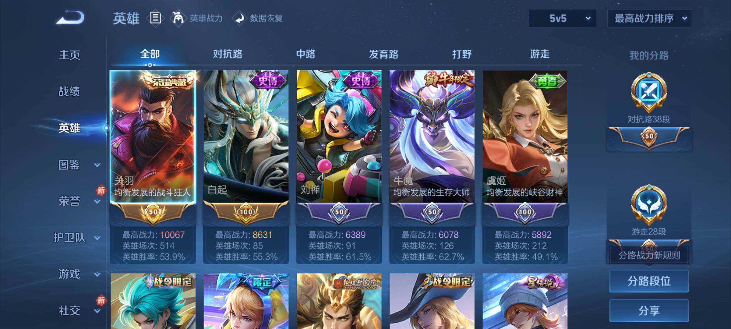 可换绑【V9精品打野战士号 金标万战关羽 金标白起 双典藏 孙悟空无双 七夕云