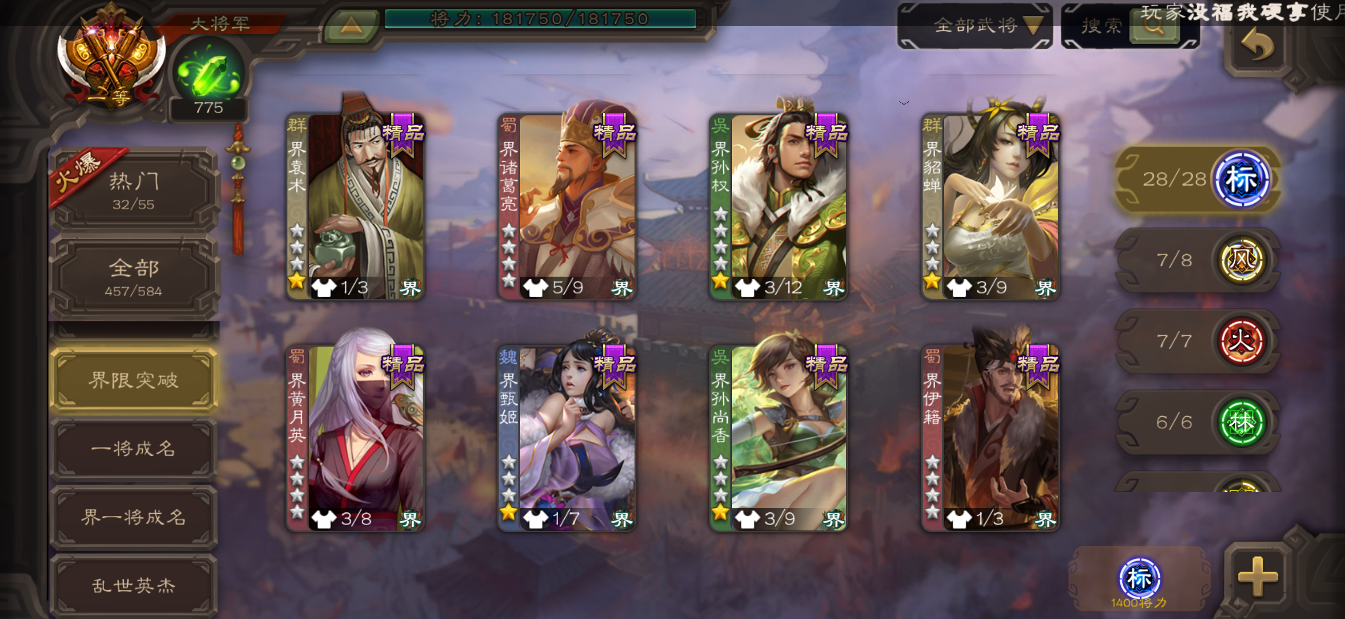 账号里还有23珠子和6000元宝鲍三娘 曹婴 王元姬 谋曹丕 曹髦 崔芙 张奋 势太史慈 谋关羽 谋张飞谋黄忠 谋孙策 神司马懿 神荀彧 神郭嘉都有,可查看截图或咨询与我