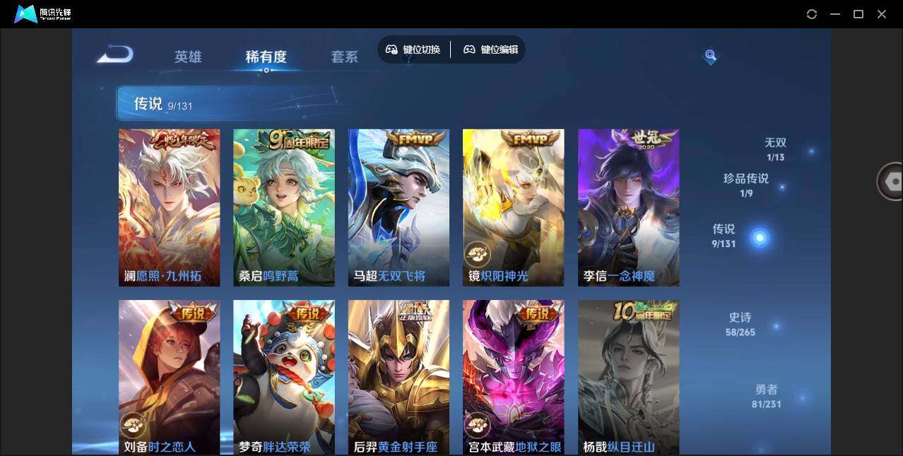 【传说皮肤】:澜愿照九州拓,桑启鸣野蒿,马超无双飞将,镜炽阳神光,李信一念神魔,刘备时之恋人,梦奇胖达荣荣,后羿黄金射手座,宫本武藏地狱之眼