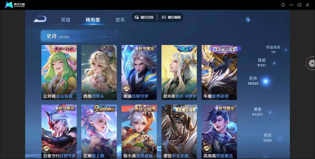 /1928162 王者荣耀账号 安卓Q-V5-至尊星耀V段位-126英雄-187皮肤-1典藏皮肤-1无双-1珍品传说-9传说-59史诗