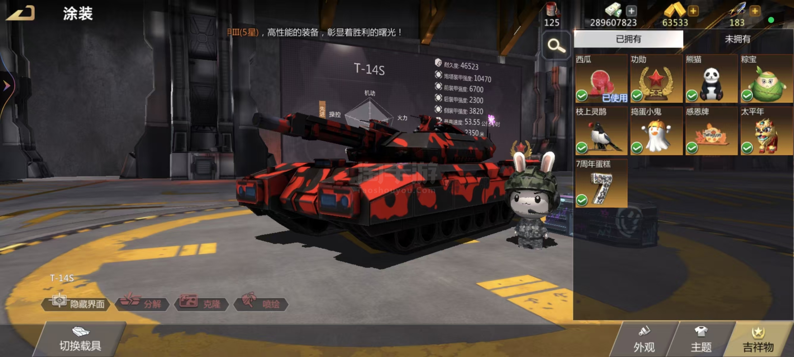 3039安卓vivo-手电通用-凯奶隆朱锁-T14S坦克号-盛世套装-技能满-锻造全开-研修满-部件全红-专属涂装-喷涂好