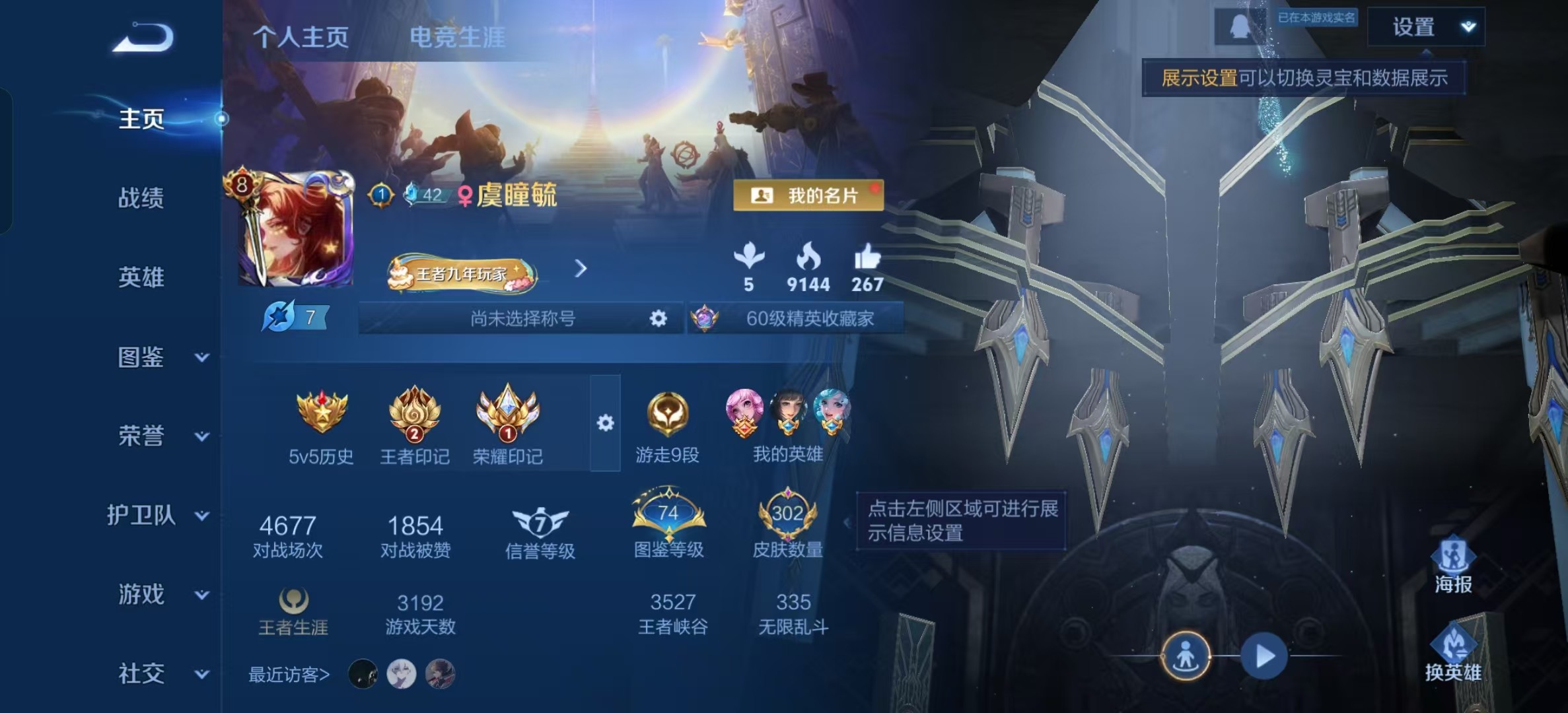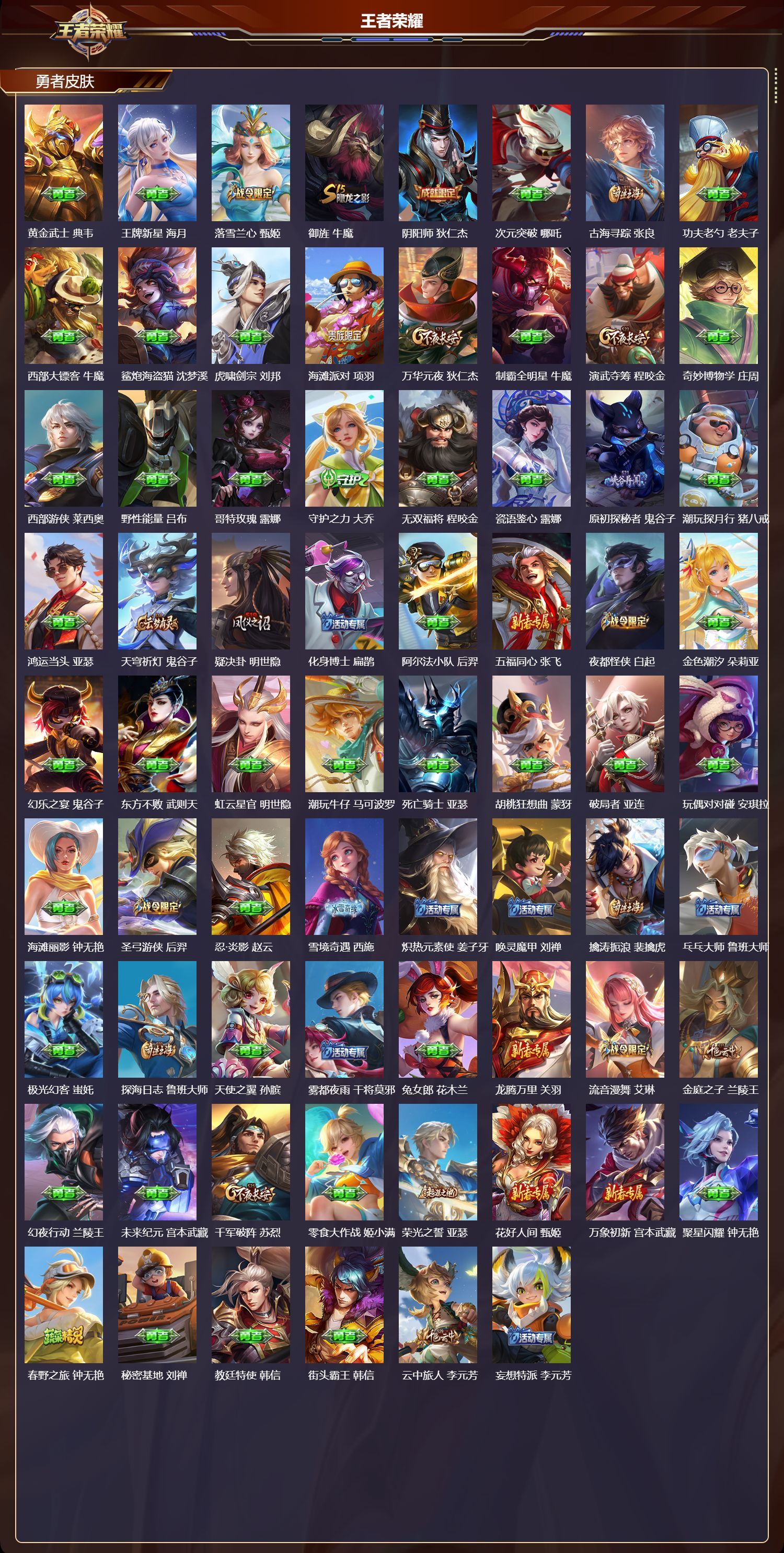 安卓QQ/荣耀黄金/302皮肤/125英雄/3典藏/0珍品无双/0无双/0珍品传说/17传说/94史