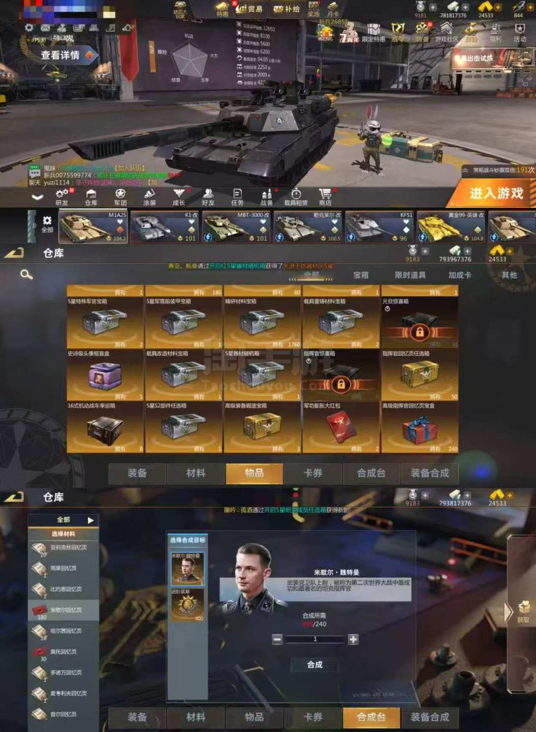 3053安卓oppo-手电通用-A2S 凯朱范隆奶锁古巴8顶指 米歇尔差60张就出 240个顶指宝箱可以强化指挥官 电控22红马上24红 宠物图鉴全开 主武器,机枪,装甲,弹药箱锻造全红 技能都已刷好 四辆车研修满 仓库还有很多东西没开 能抗能打