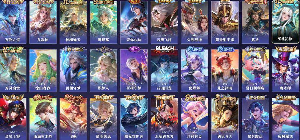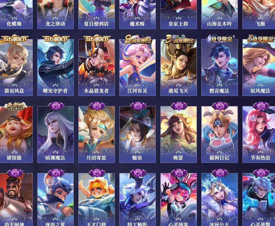 【限定皮肤】:蔡文姬夏日便利店,虞姬夏日便利店,姜子牙天穹之誓,狄仁杰阴阳师,赵云皇家上将,周瑜赤莲之焰,元歌无心,马可波罗山海玄木吟,狄仁杰魔术师,达摩沙漠行僧