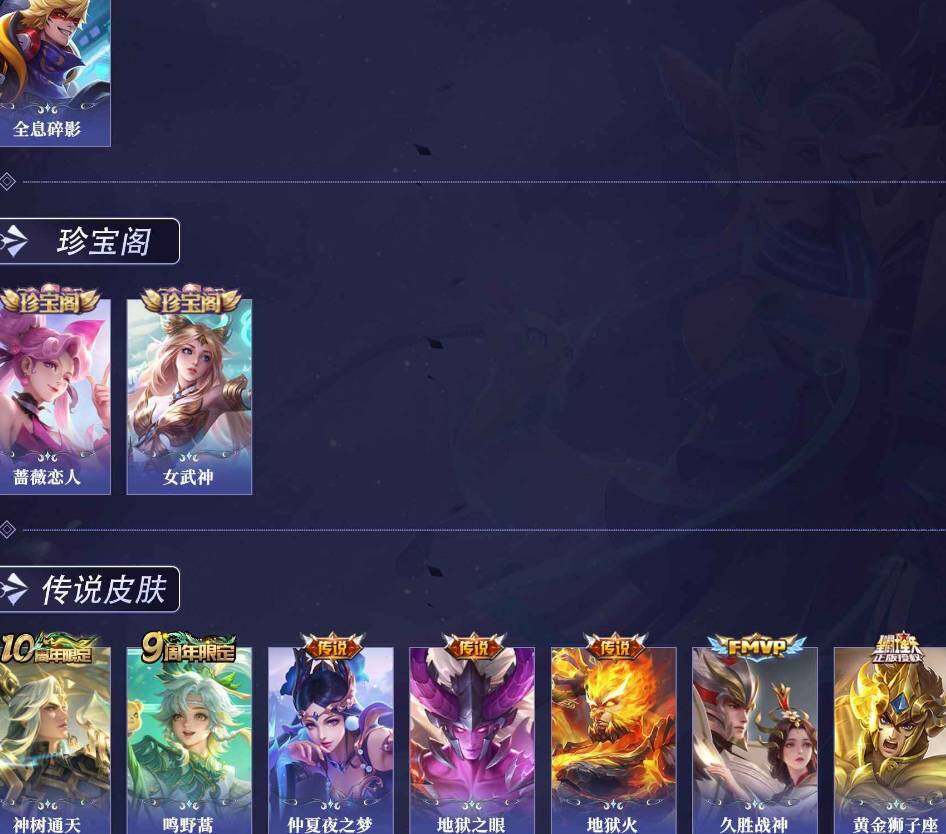 安卓Q-V4-永恒钻石V段位-126英雄-248皮肤-1典藏皮肤-8传说-63史诗