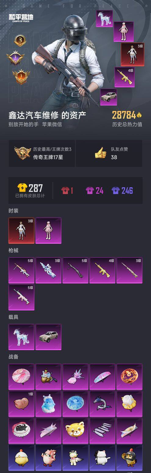 【AZH2197】苹果 微信【三级欧若拉 羊梦糖心 2载具1僚机】1神装-1粉装-6特效枪-2载具-5粉色飞行器-28784热力值-3王牌印记-35套装-71枪皮