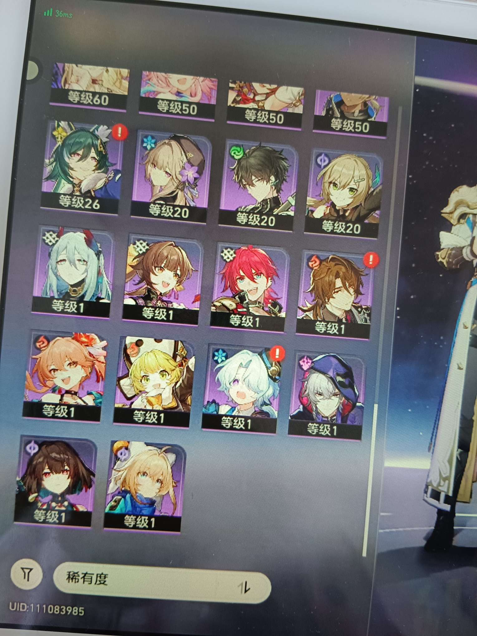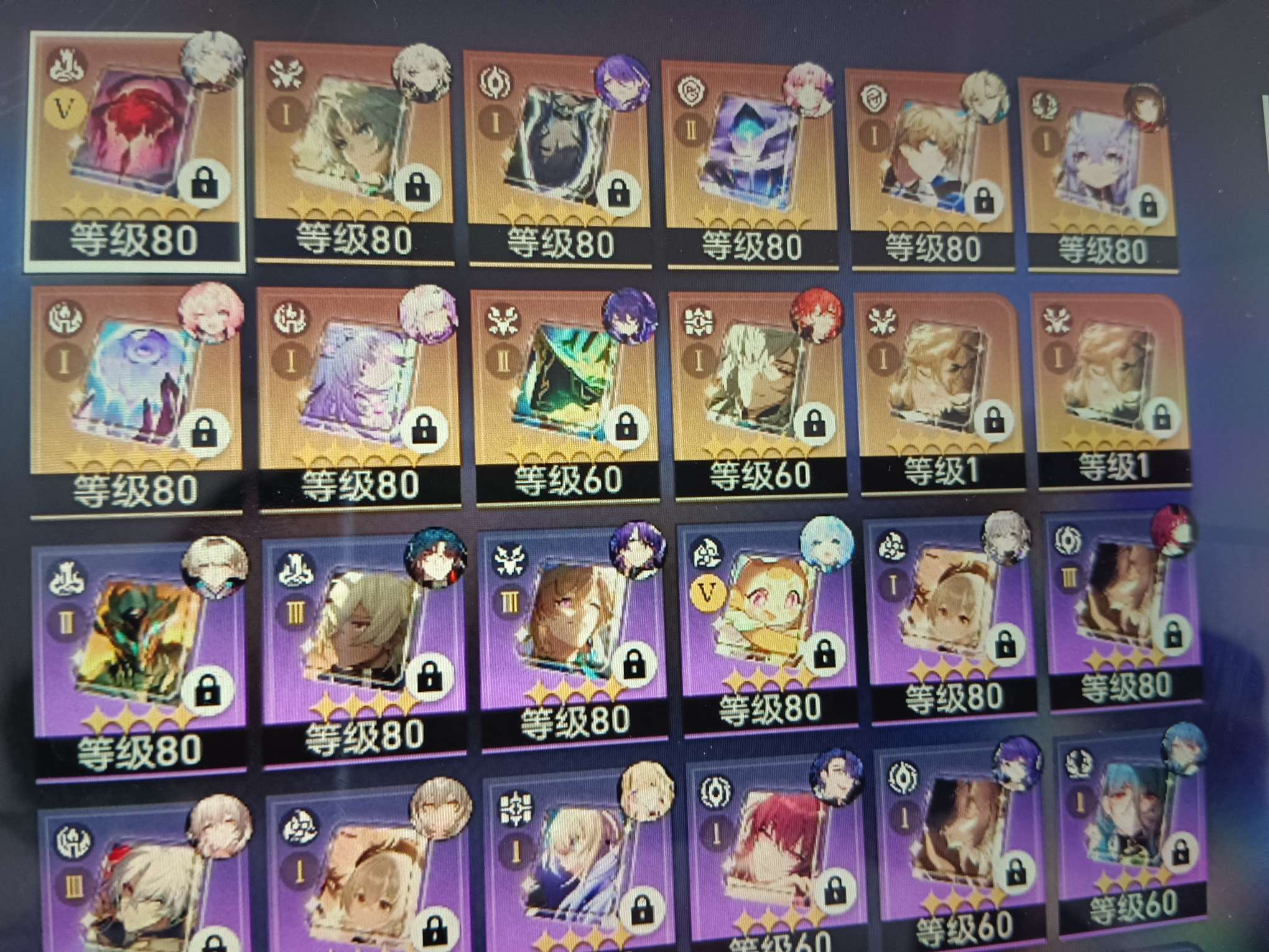 第一张的角色有练度 后面的没养 资源还可以吧 活动没打 光锥没拍全号里还有别的