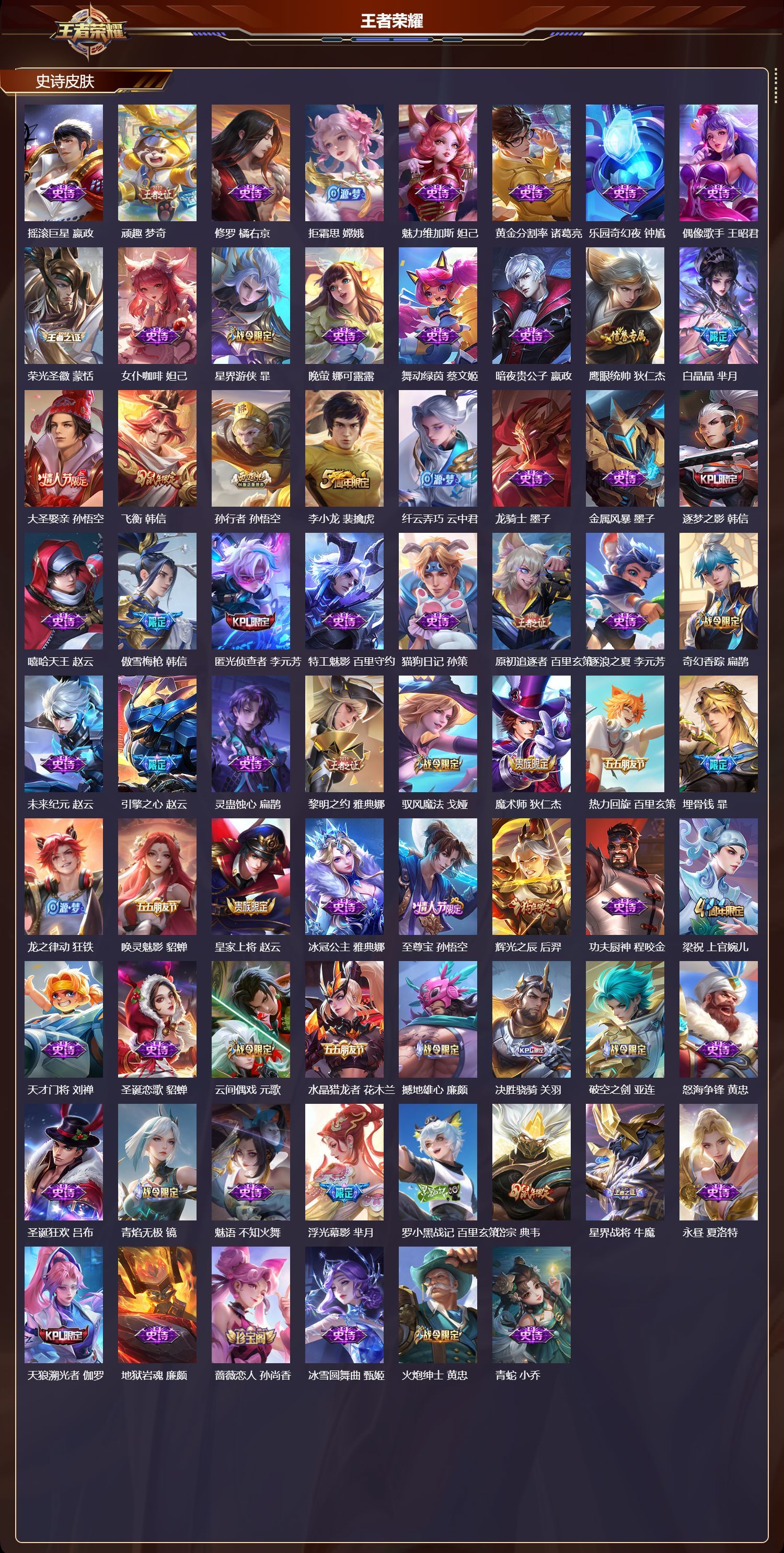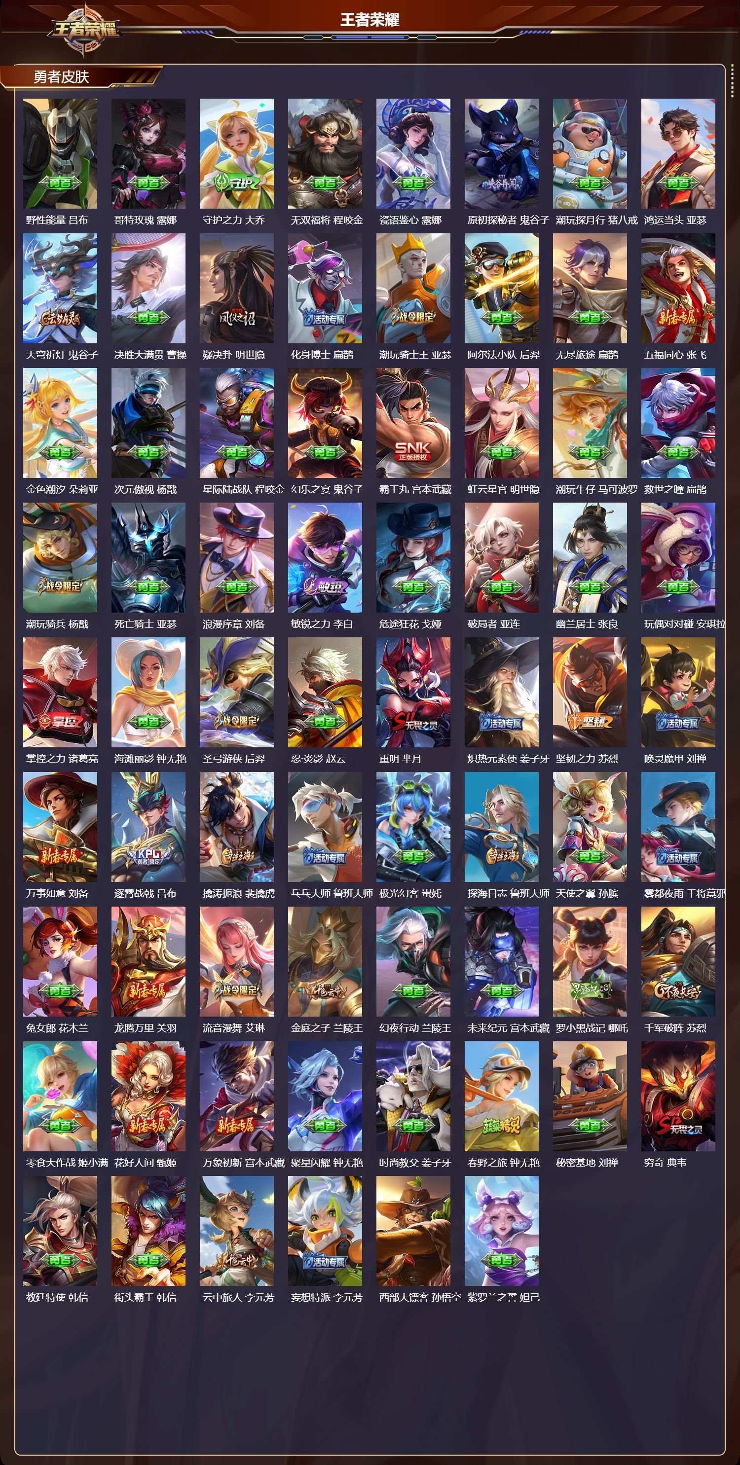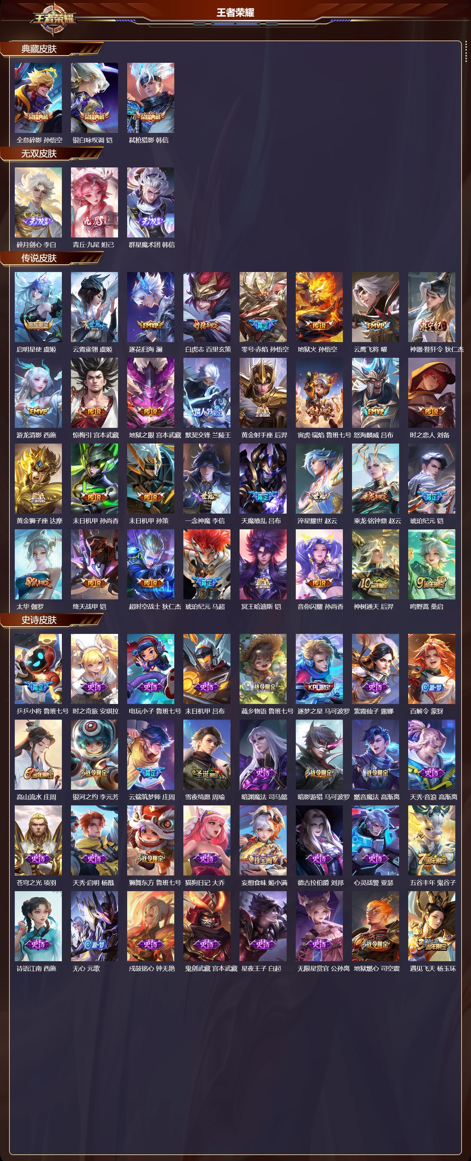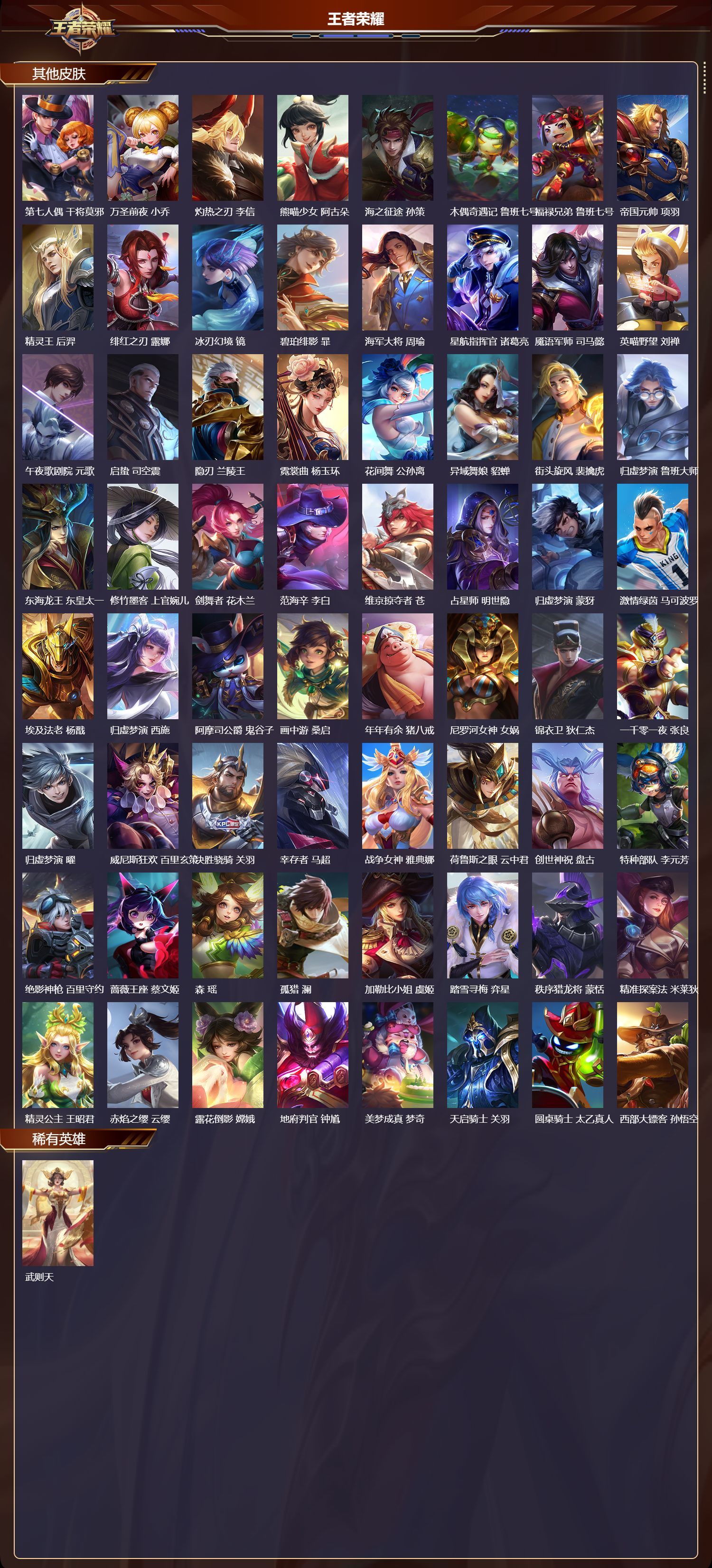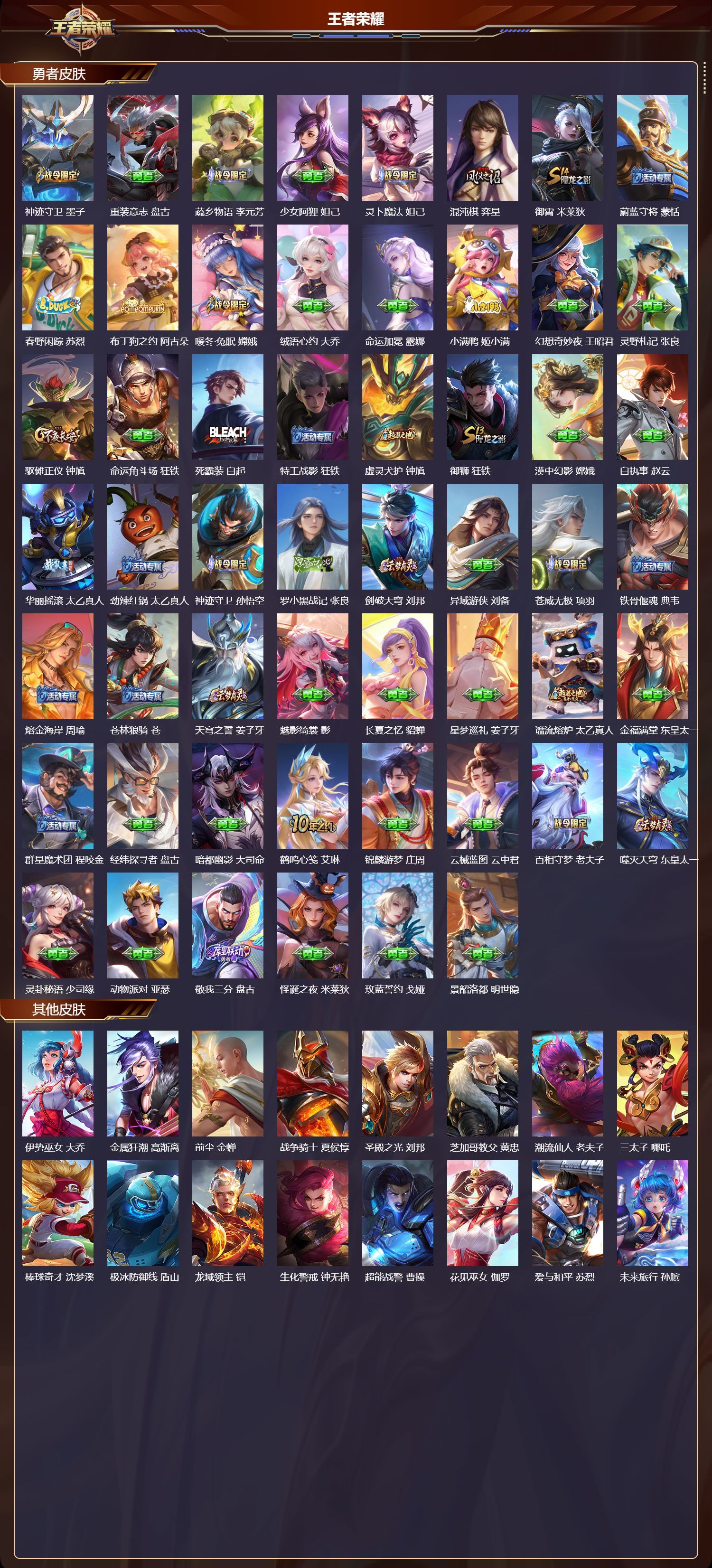 安卓QQ/荣耀王者/413皮肤/128英雄/3典藏/0珍品无双/3无双/0珍品传说/32传说/123