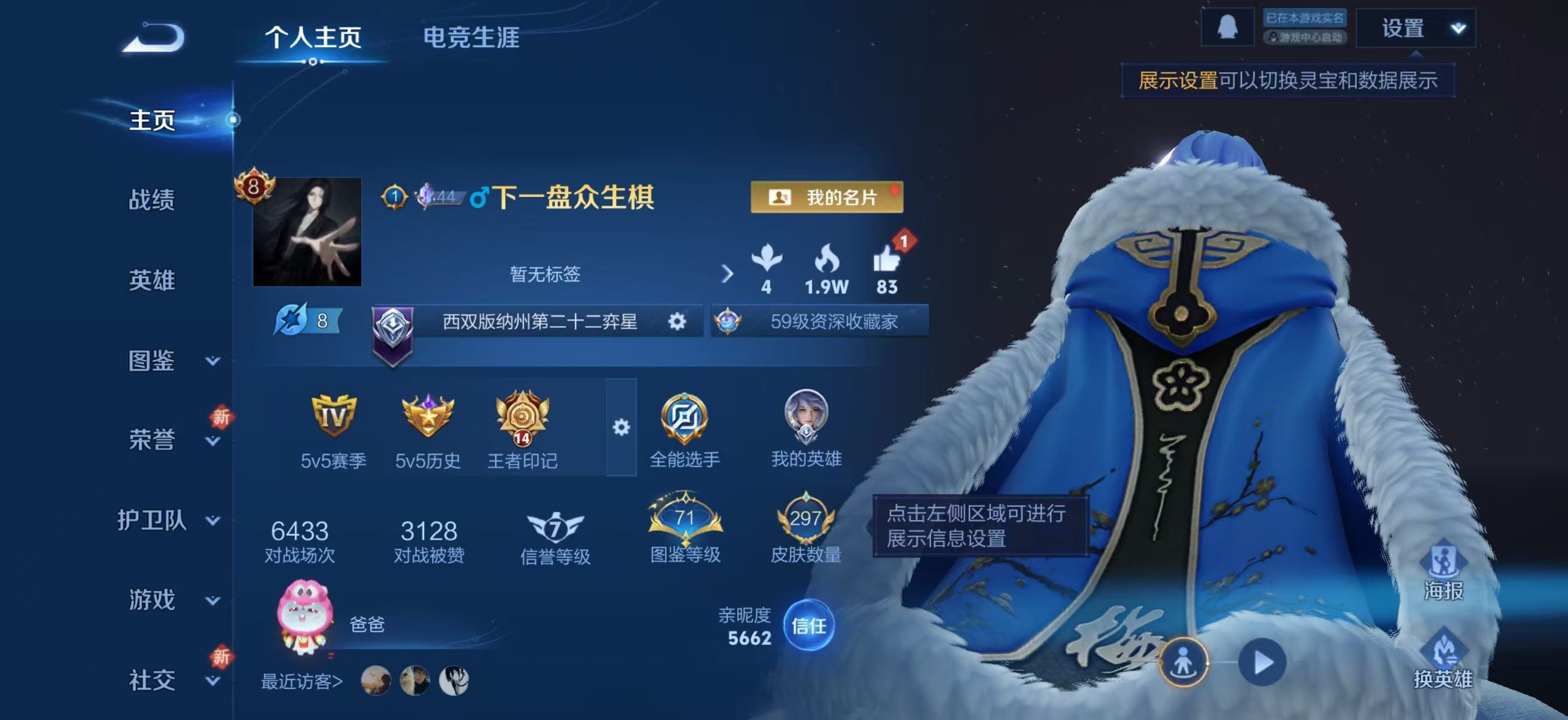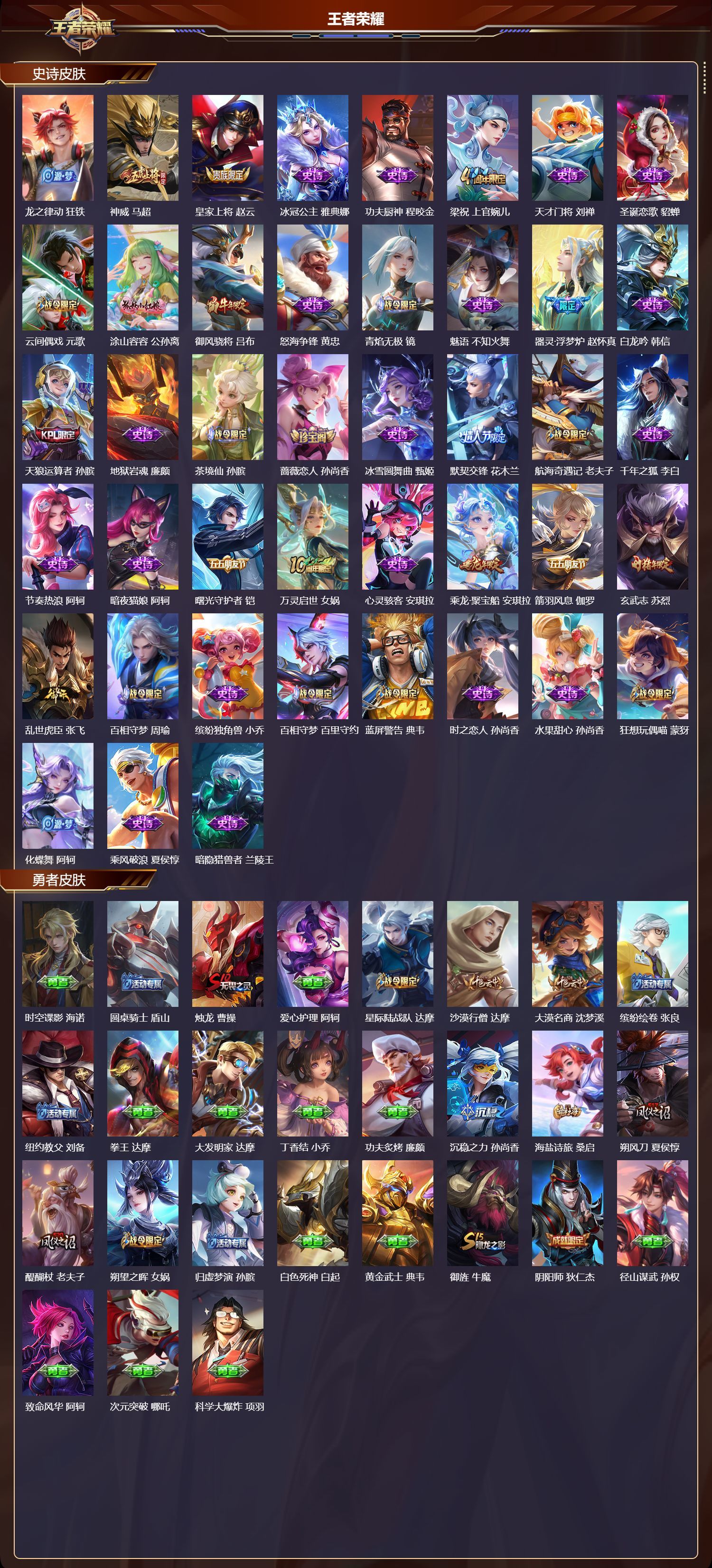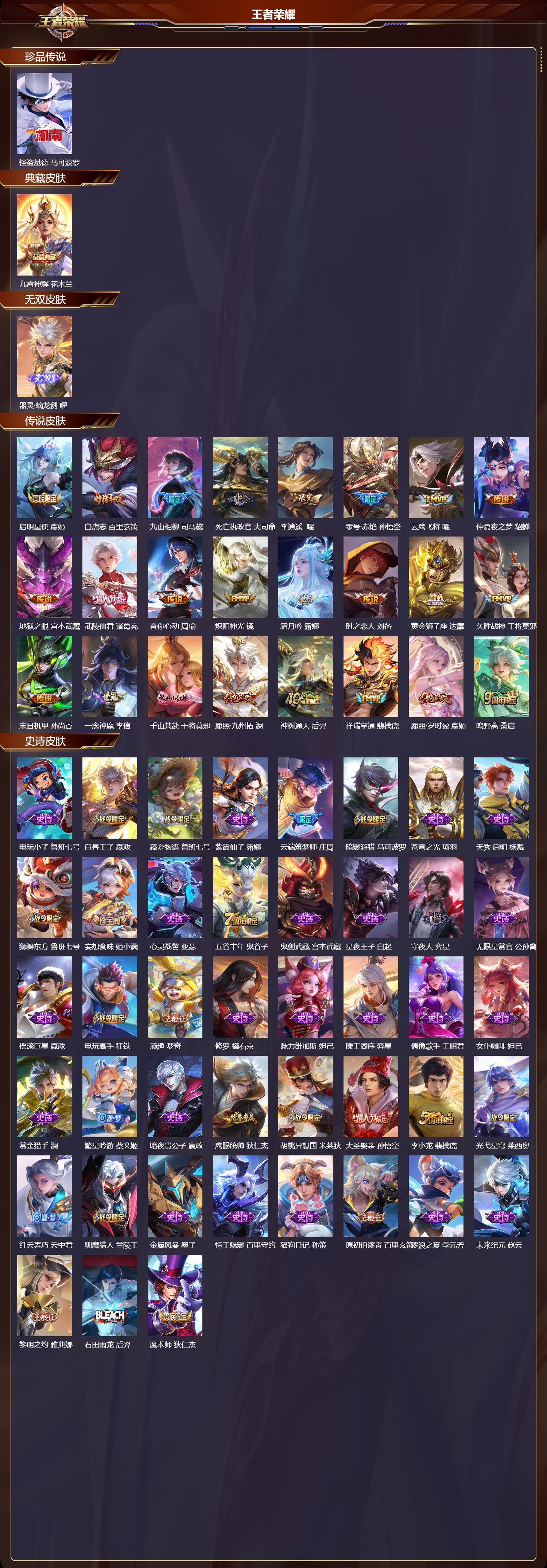 苹果QQ/至尊星耀/297皮肤/127英雄/1典藏/0珍品无双/1无双/1珍品传说/23传说/86史