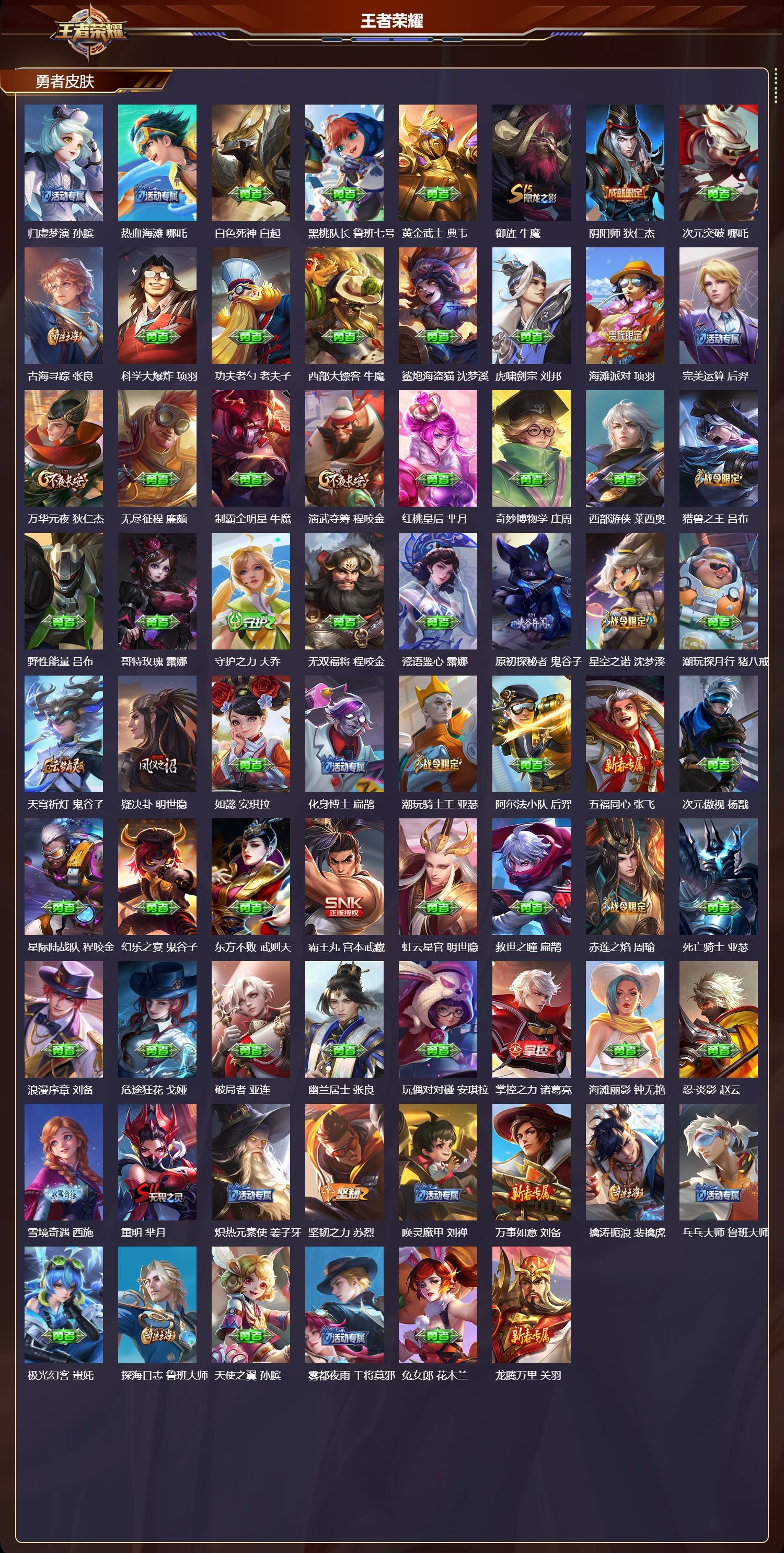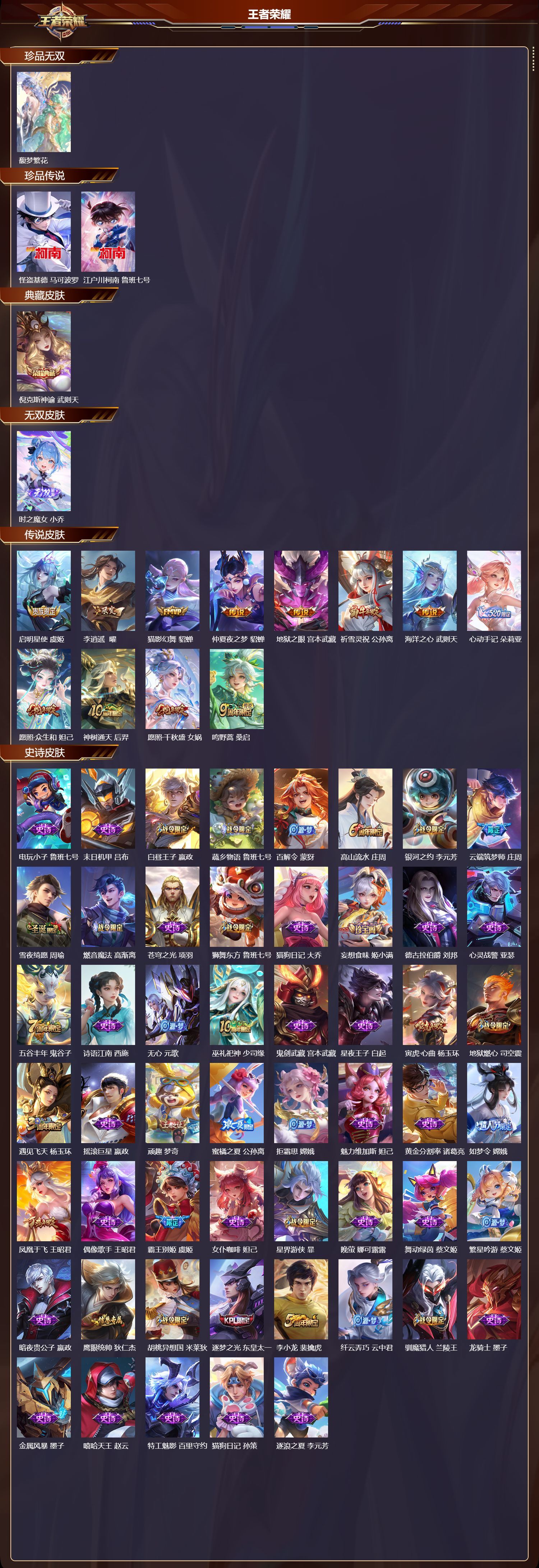 安卓QQ/绝世王者/337皮肤/128英雄/1典藏/1珍品无双/1无双/2珍品传说/12传说/103