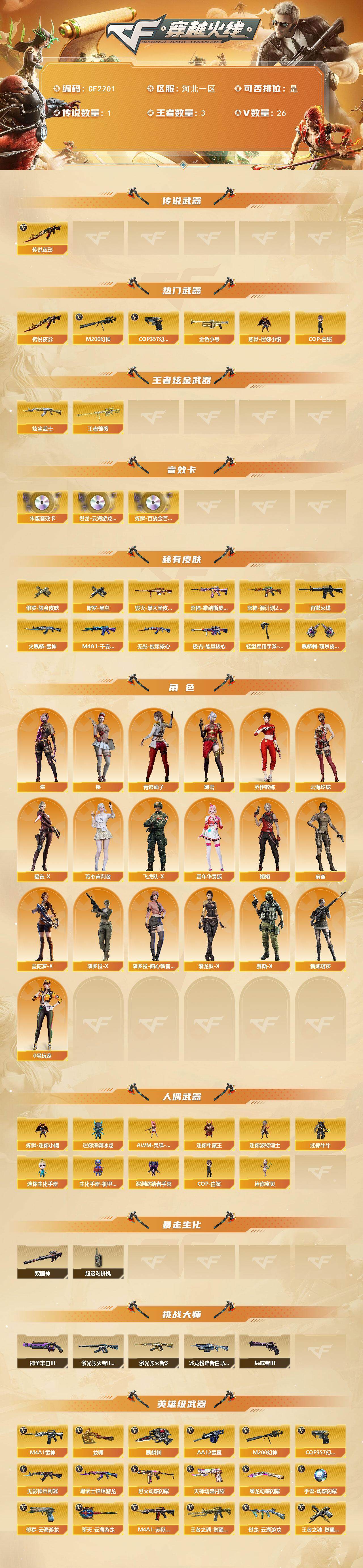 【CF2201】【双全号/传说夜影,M200-幻神,金色小号,炼狱-迷你小钢,COP-白鲨,COP 357-幻灵】河北一区-26V-3王者-1炫金