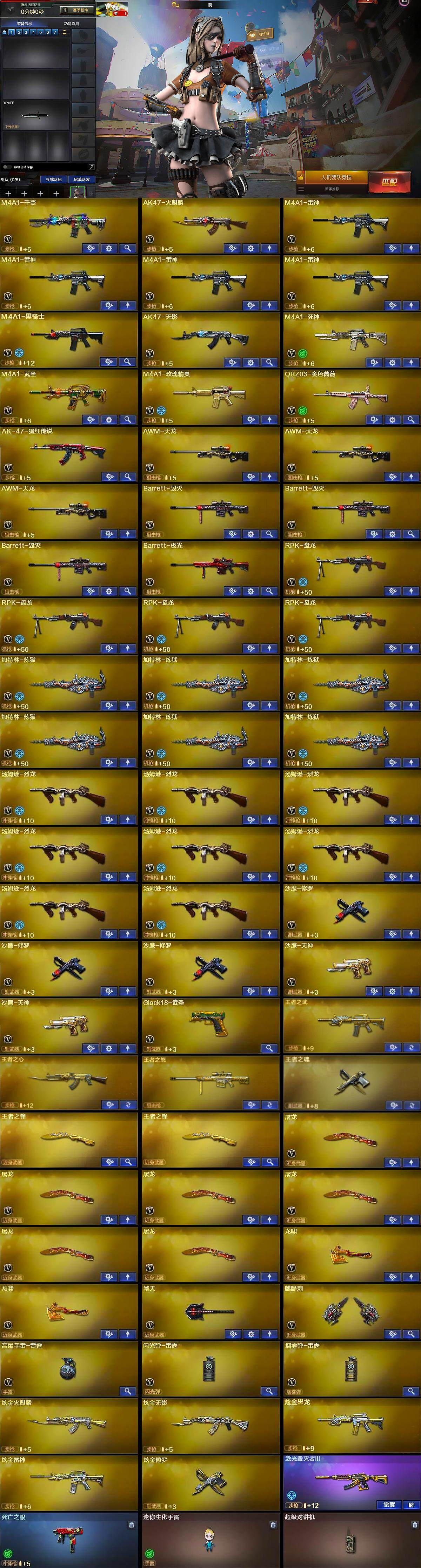 【热门武器】:QBZ03-金色蔷薇,死亡之眼,M4A1-黑骑士,汤姆逊-烈龙*8,RPK-盘龙*4,加特林-炼狱*6,沙鹰-修罗*3