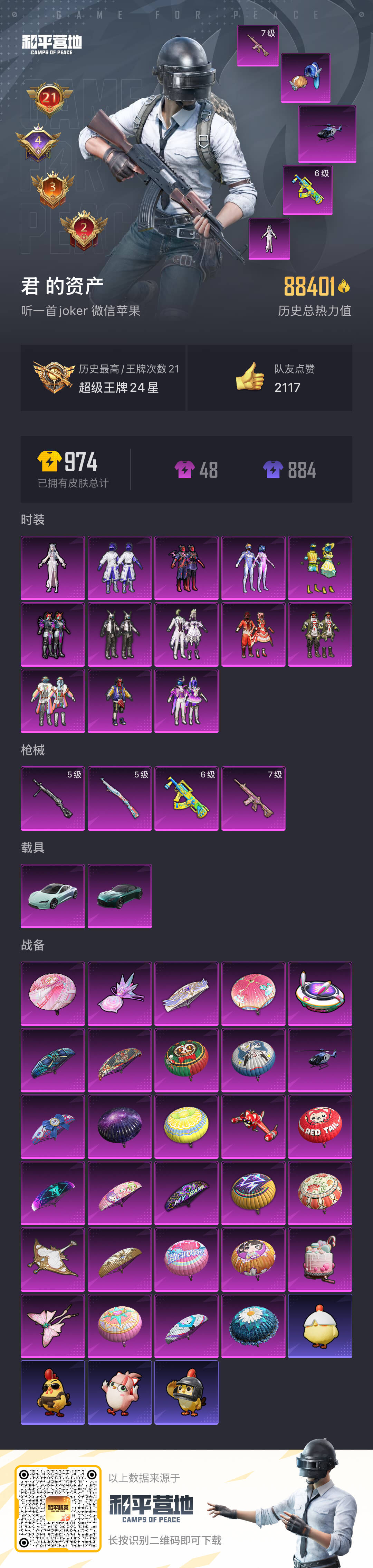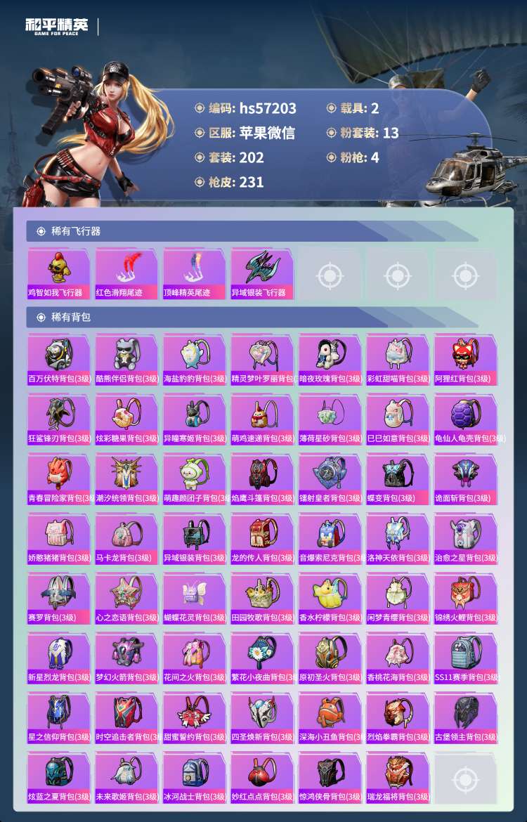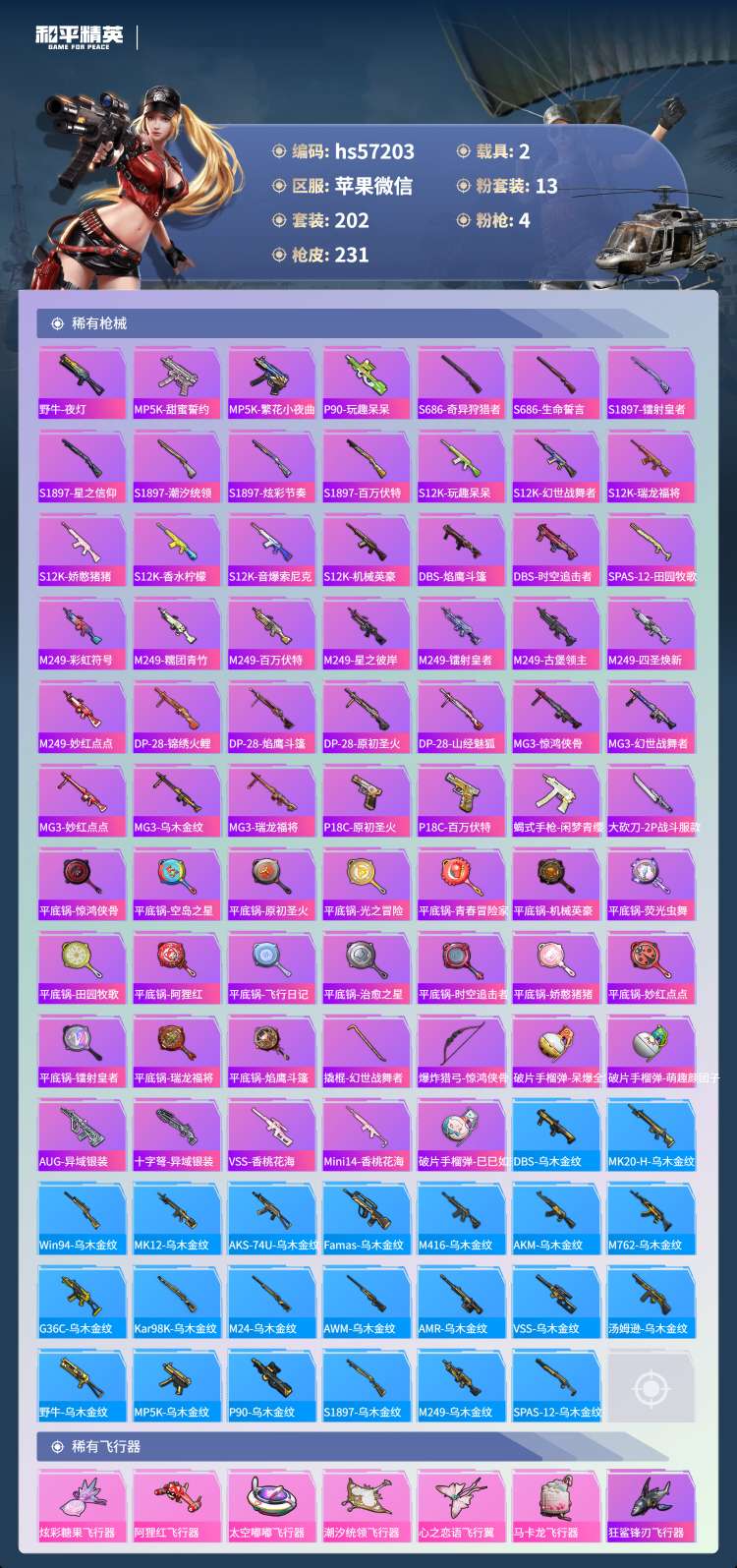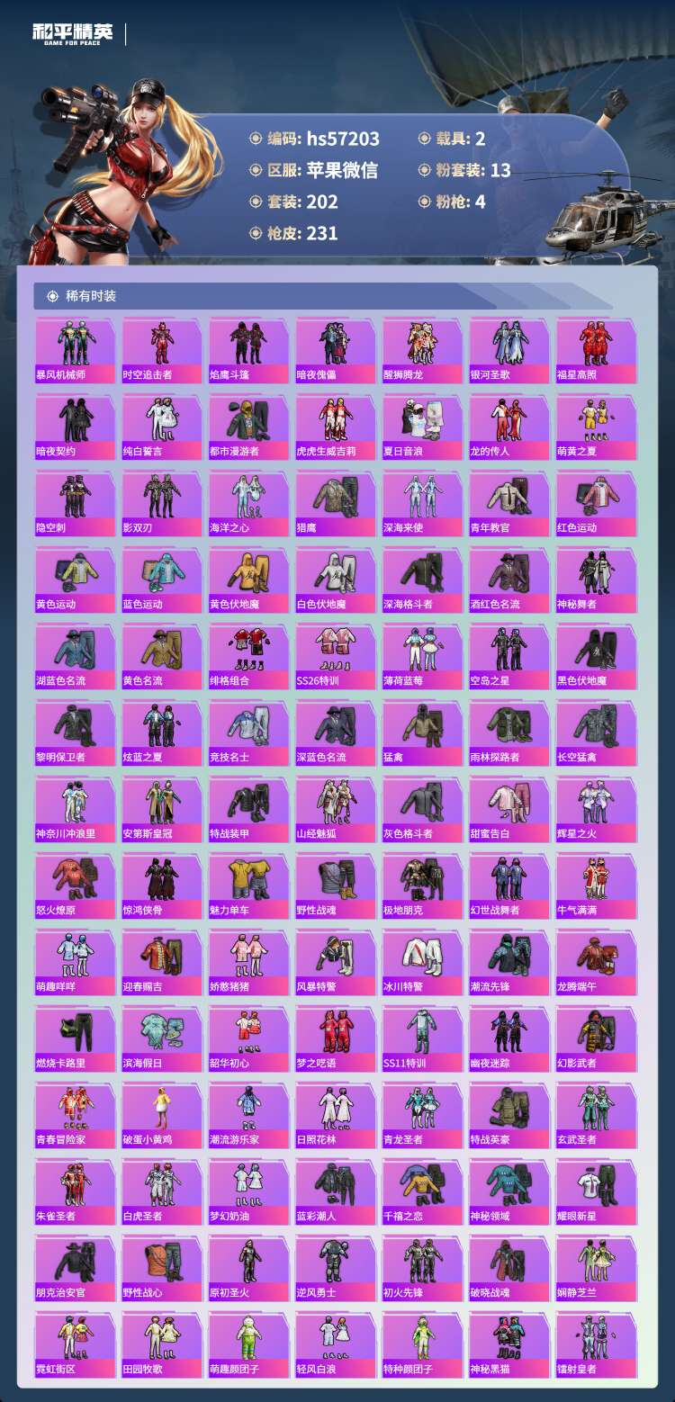 hs57203 苹果微-21王牌印记-13粉装-4特效枪-2载具-88401热力值-202套装-2