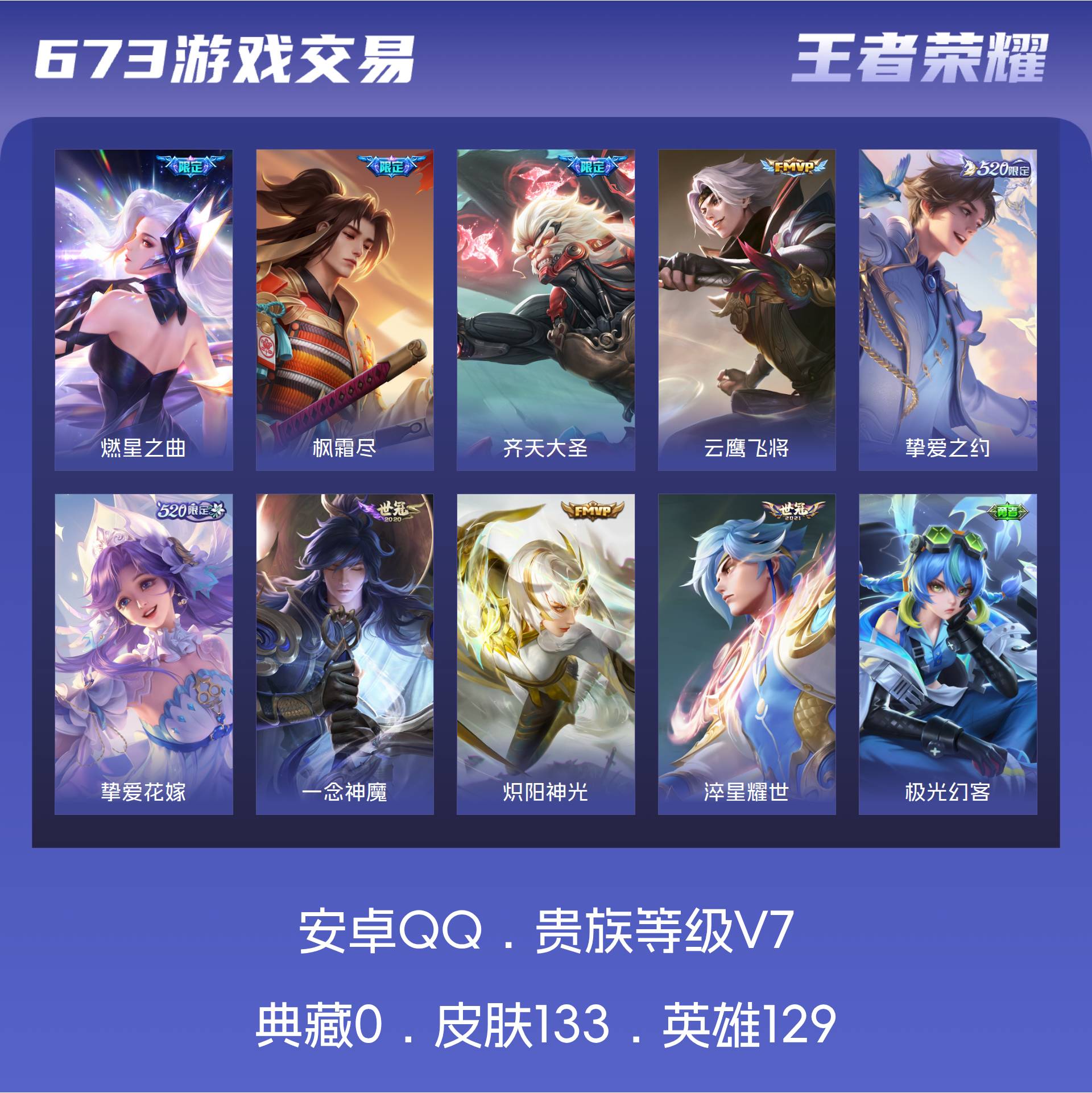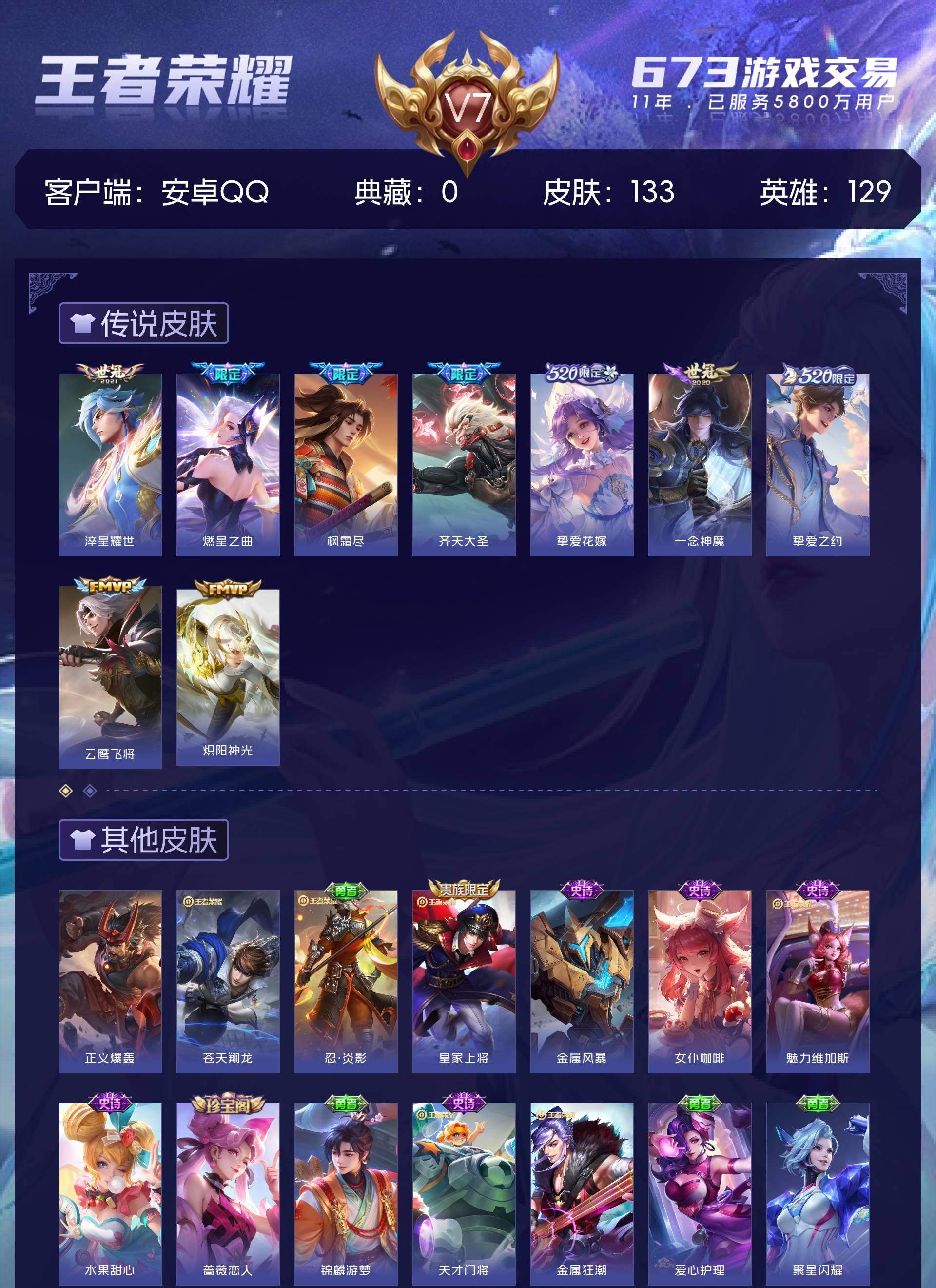 V7 皮肤133 英雄129 荣耀王者 传说9 其他皮肤131