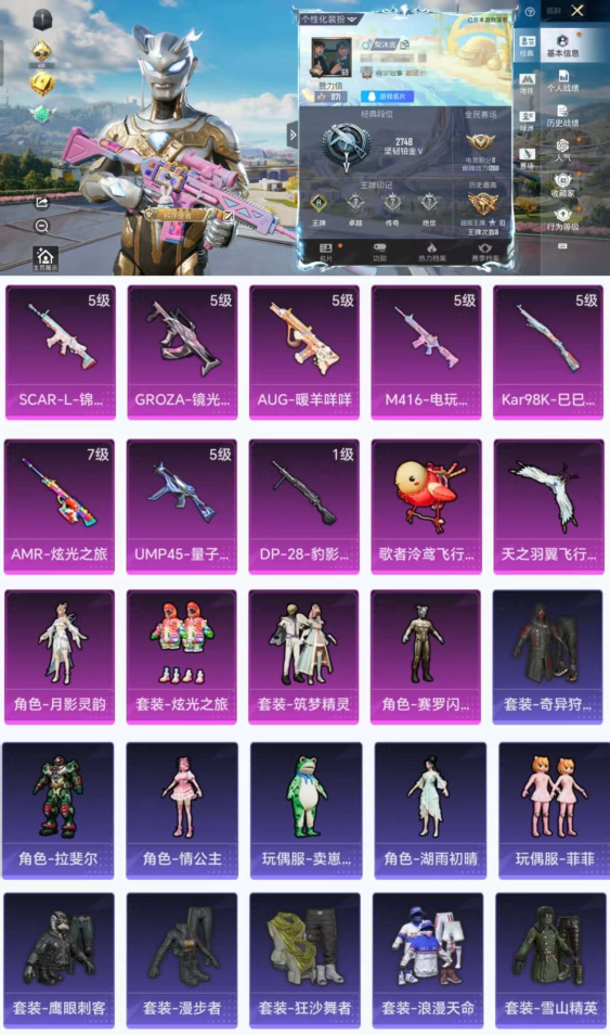 W热力值-身法素材号4粉装8特效枪2飞行器-王者130皮肤3传说一体号-赛罗闪耀型-7级大炮AMR-炫光之旅-奇异狩猎者-8王牌印记】Q等级36(2太阳)吃鸡王者(130皮3传说)连体号可二次安卓Q-3稀有4粉装8特效枪10热门198套装239枪皮 72385热力值 8印记 历史超级王牌10星 【3稀有】 奇异狩猎者 AKM-缤纷海域 浪漫天命 【4粉装】 月影灵韵 炫光之旅