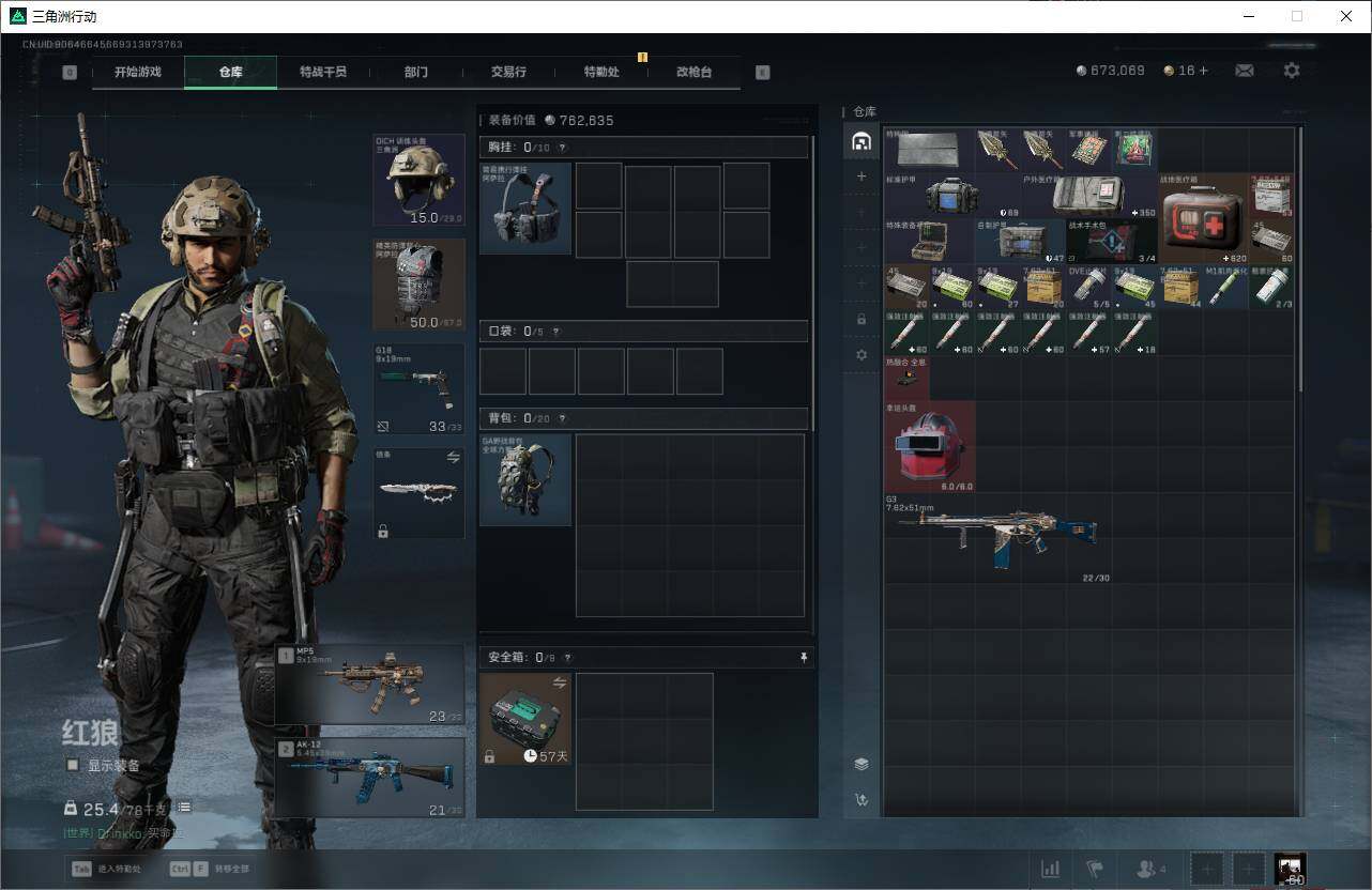 总资产(M):12M/哈夫币(K):673K/哈夫币(K):673K/传说枪皮数:14/全面战场等级