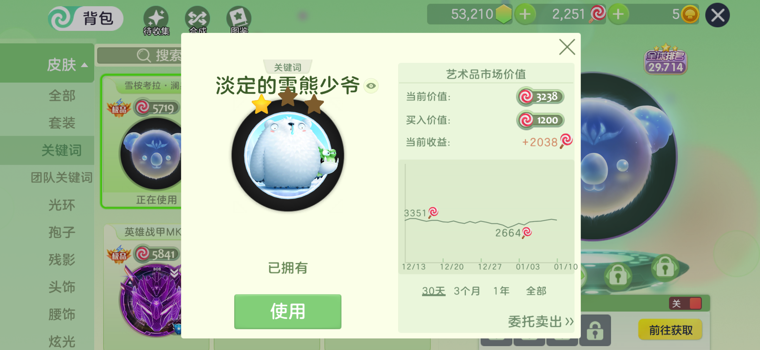 通过App,与卖家商议价格及保险,并向卖家索要账号最新截图,确认后下单购买。