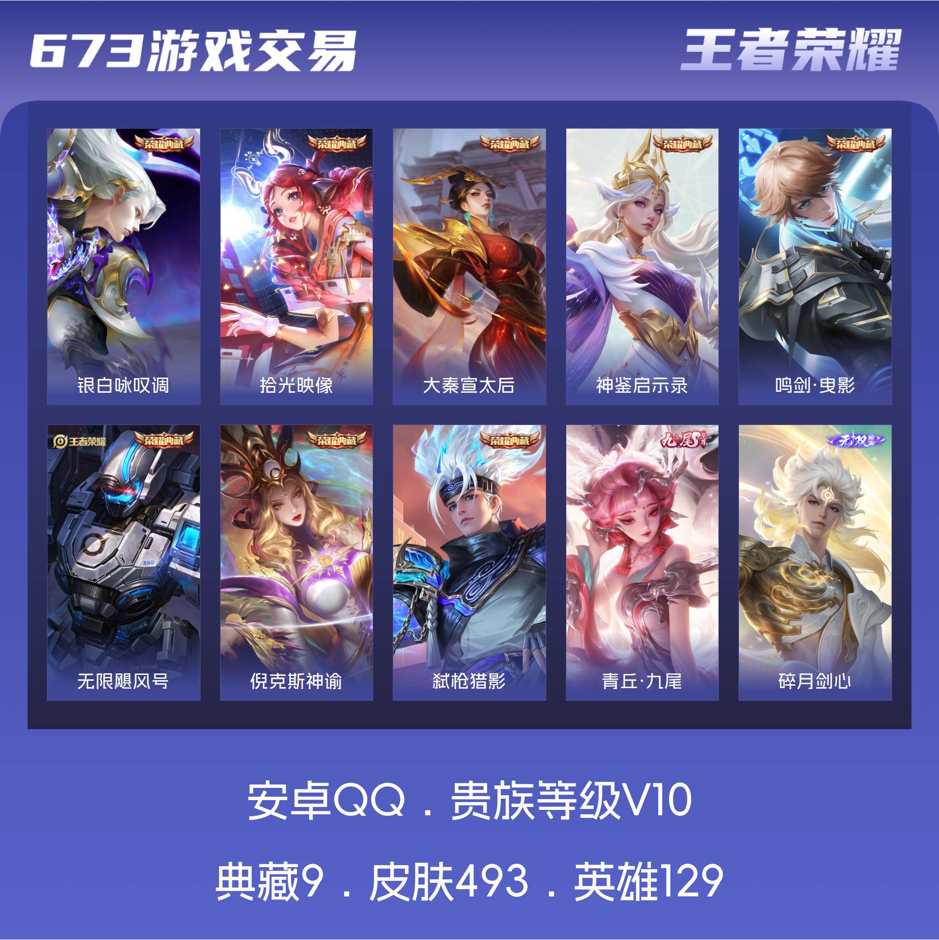 安卓QQ-可二次-V10-皮肤493 英雄129 最强王者 荣耀典藏9 无双皮肤2 珍品传说3 传说61 其他皮肤425-可小刀
