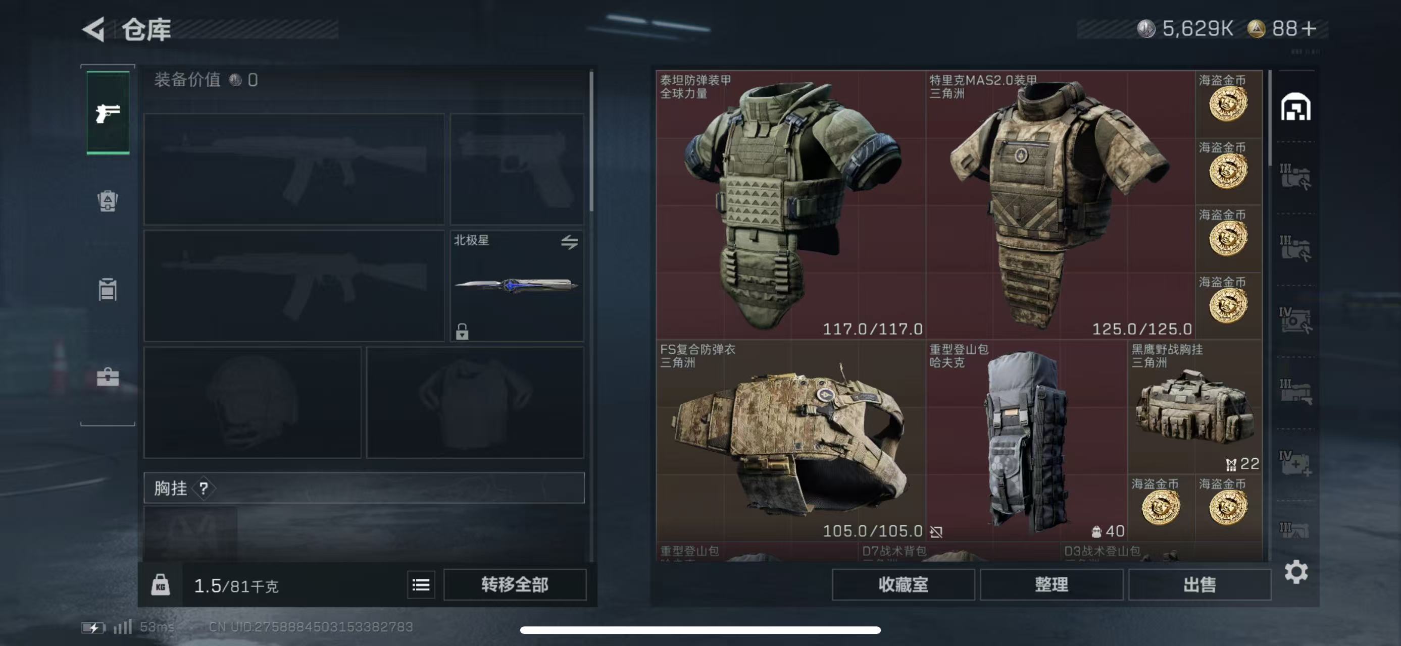 hssjz584 总资产119.81M,哈夫币 5629.59K,战场等级:37 上等兵,行动等级: