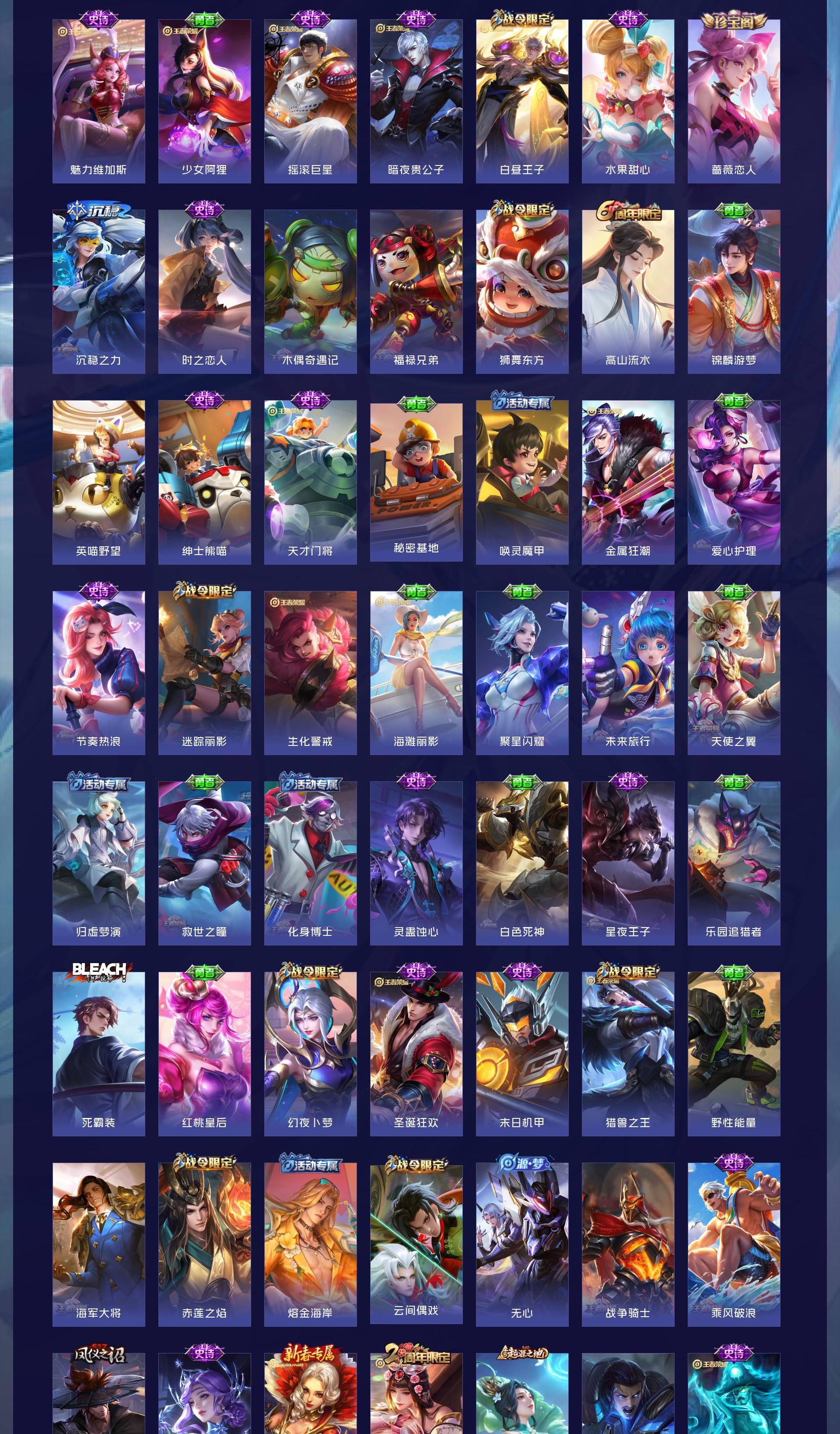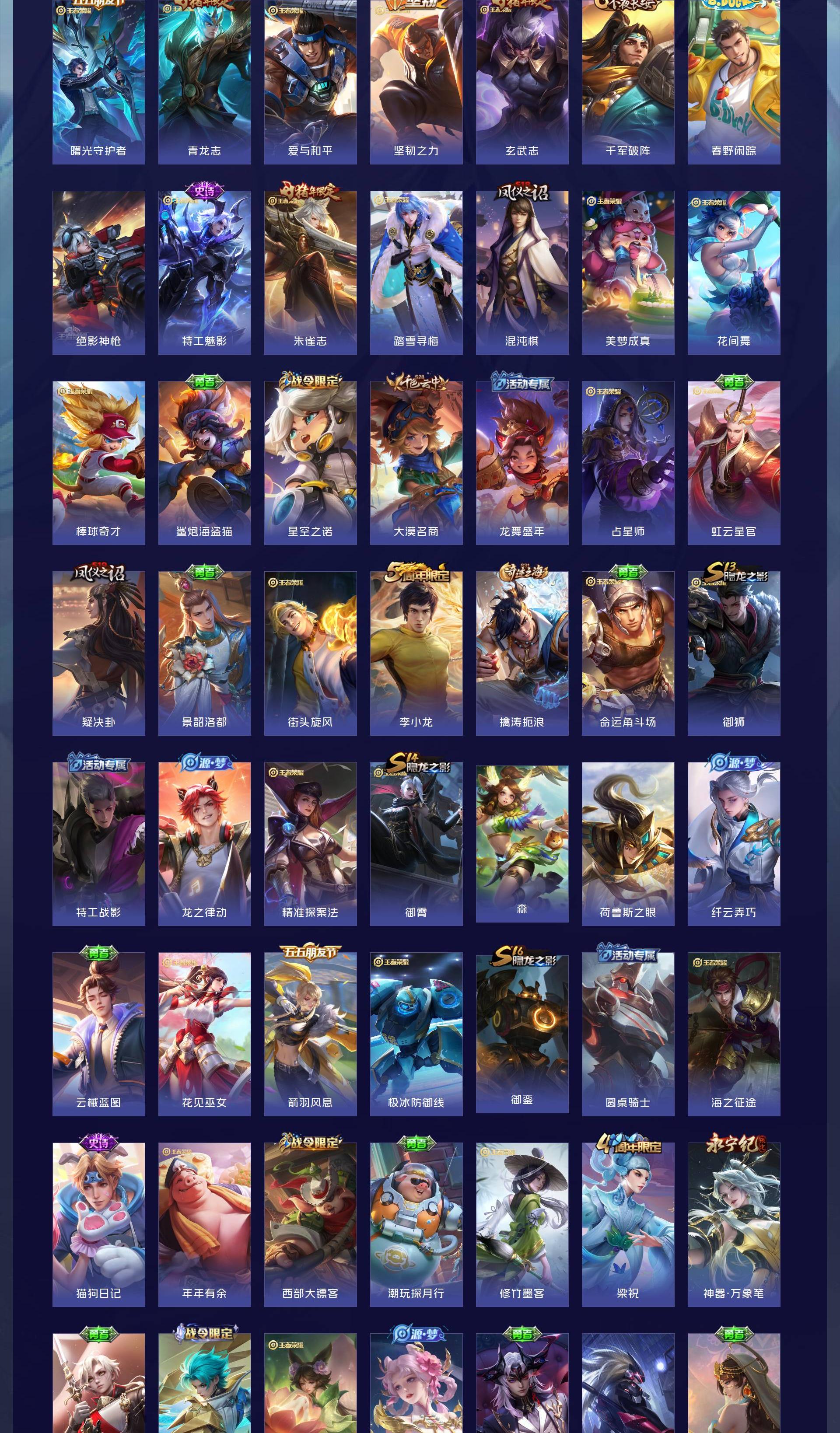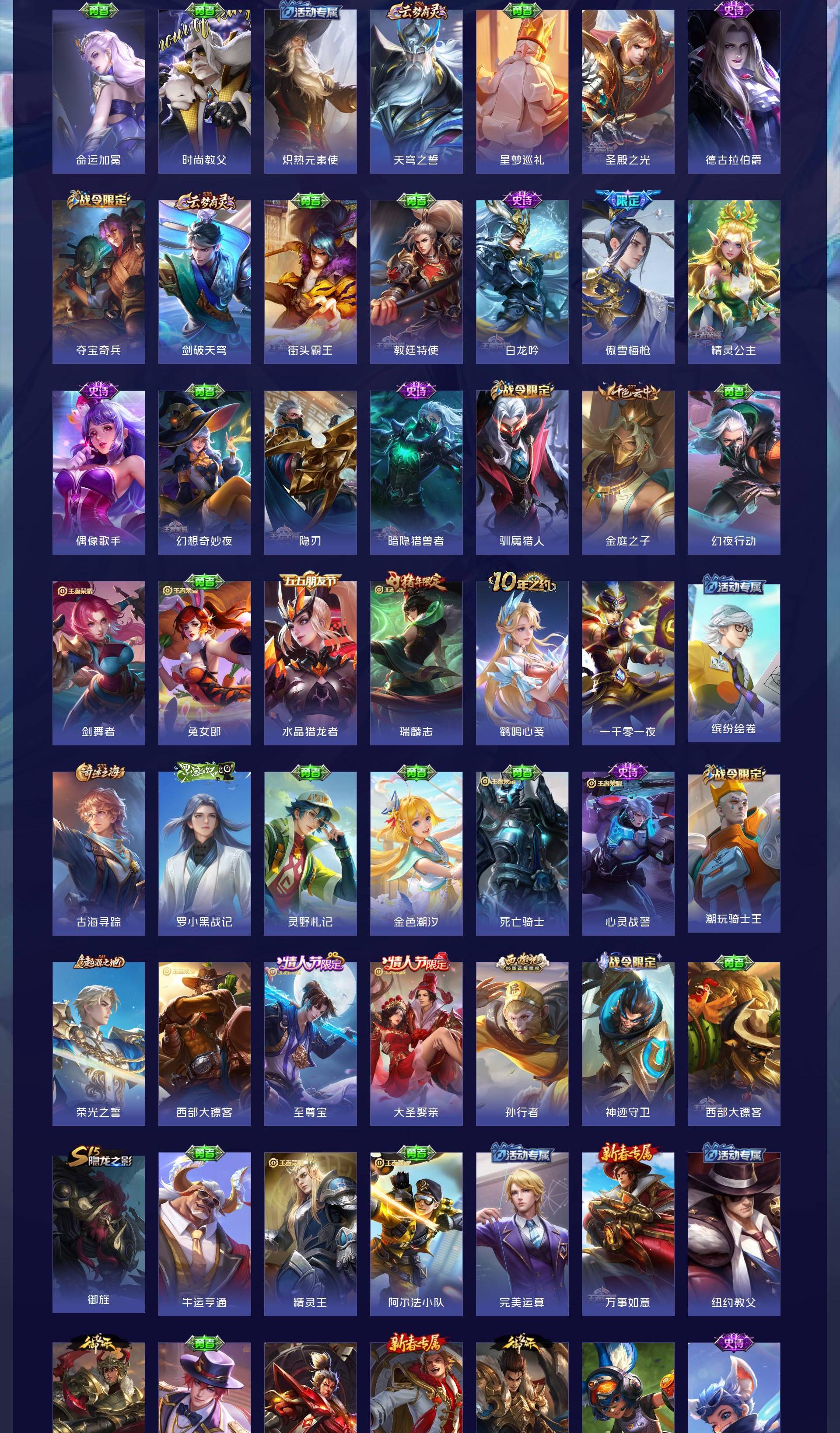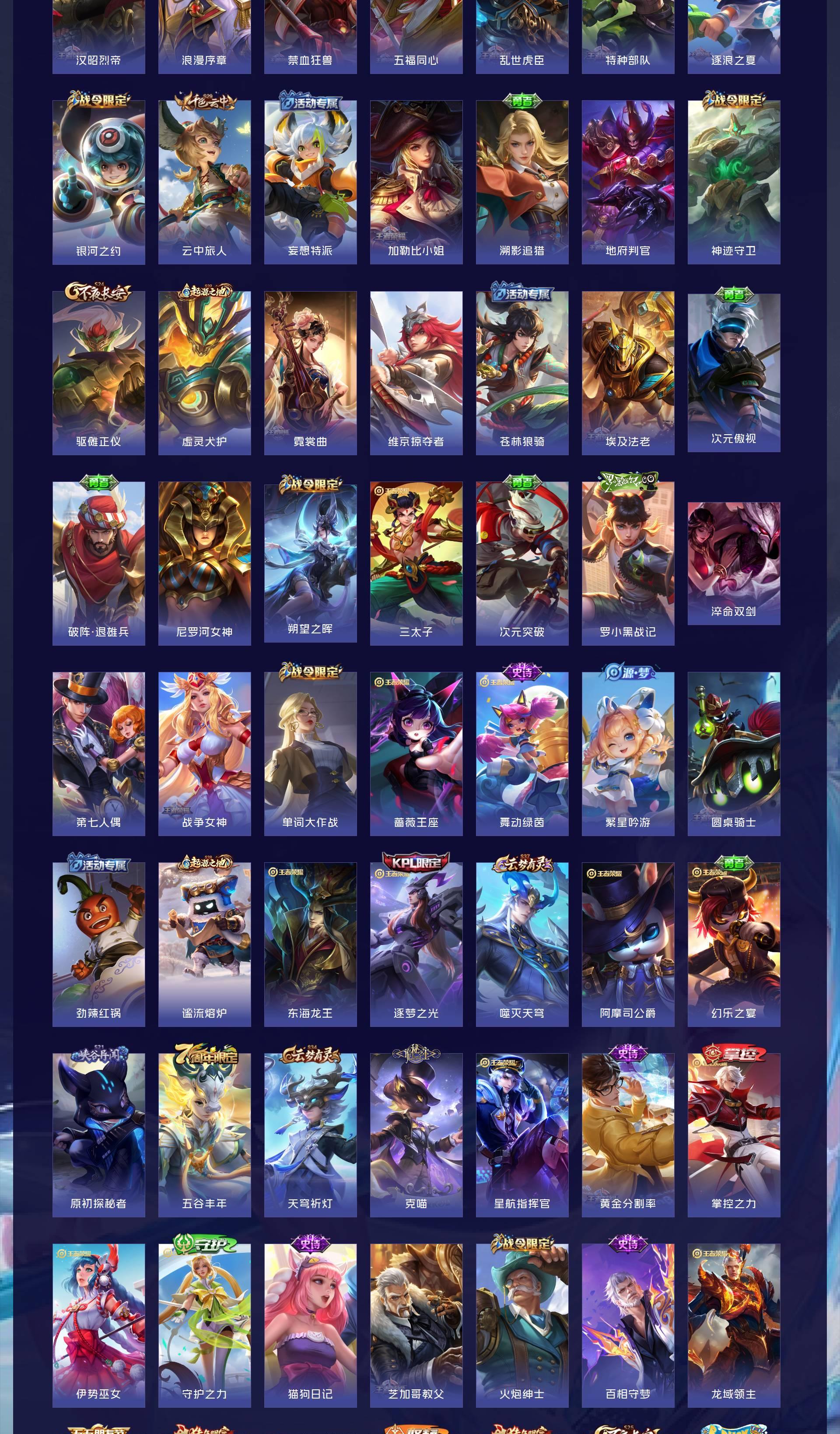 其它英雄也有全皮的具体上号查看