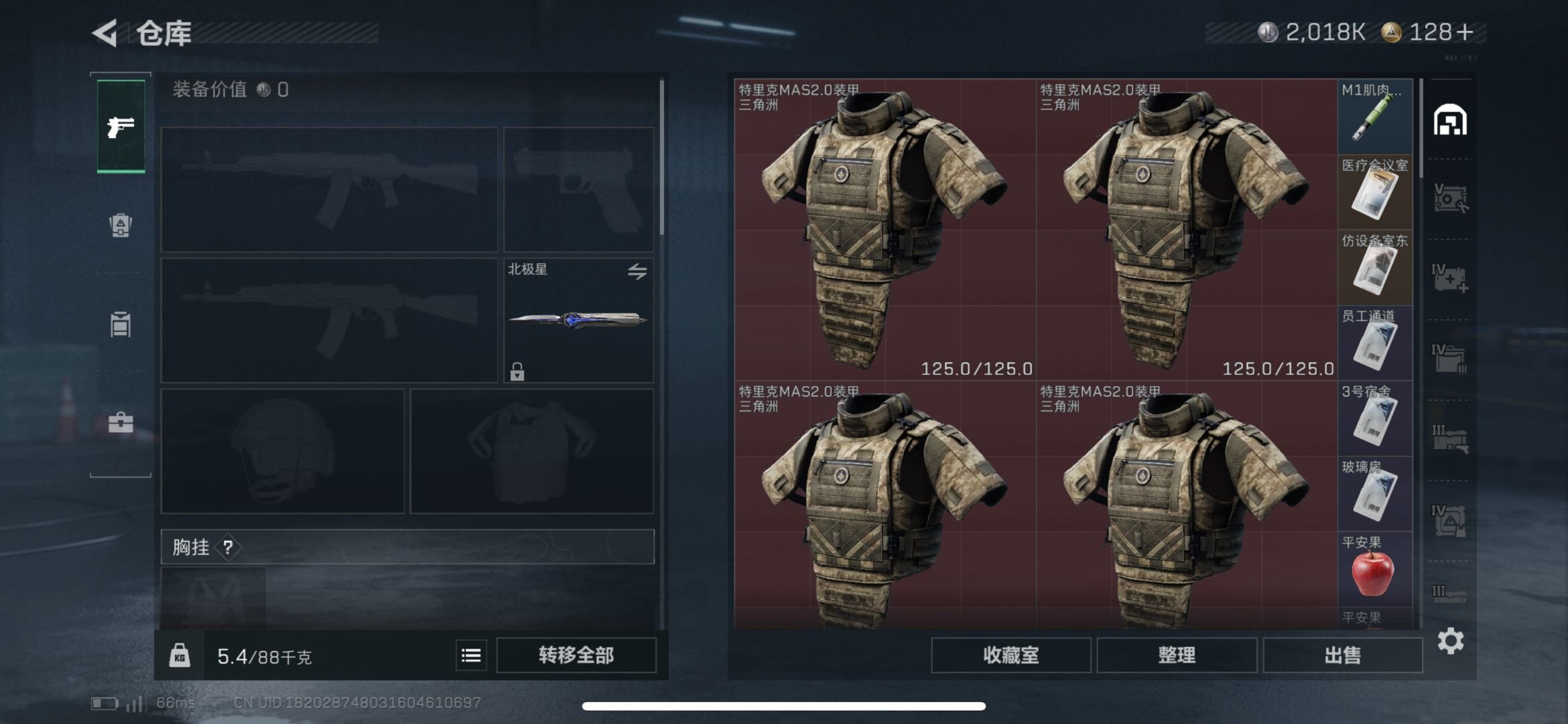 总资产174.84M,哈夫币 2018.94K,战场等级:14 列兵,行动等级:60 黑鹰,角色皮肤